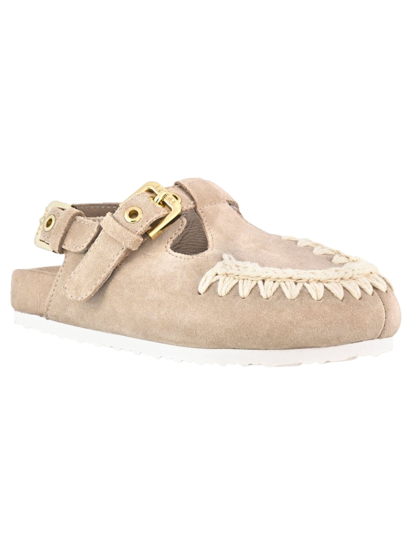 Mou Kids sandali Mary Jane in pelle scamosciata di colore beige, chiusura con fibbia, dettaglio cut-out, punta tonda, cuciture in lavorazione hand made all'uncinetto, suola in gomma EVA. Fodera: cotone 100%, pelle scamosciata di vitello 100%. Esterno: pelle scamosciata di vitello 100%. Suola: gomma 100%