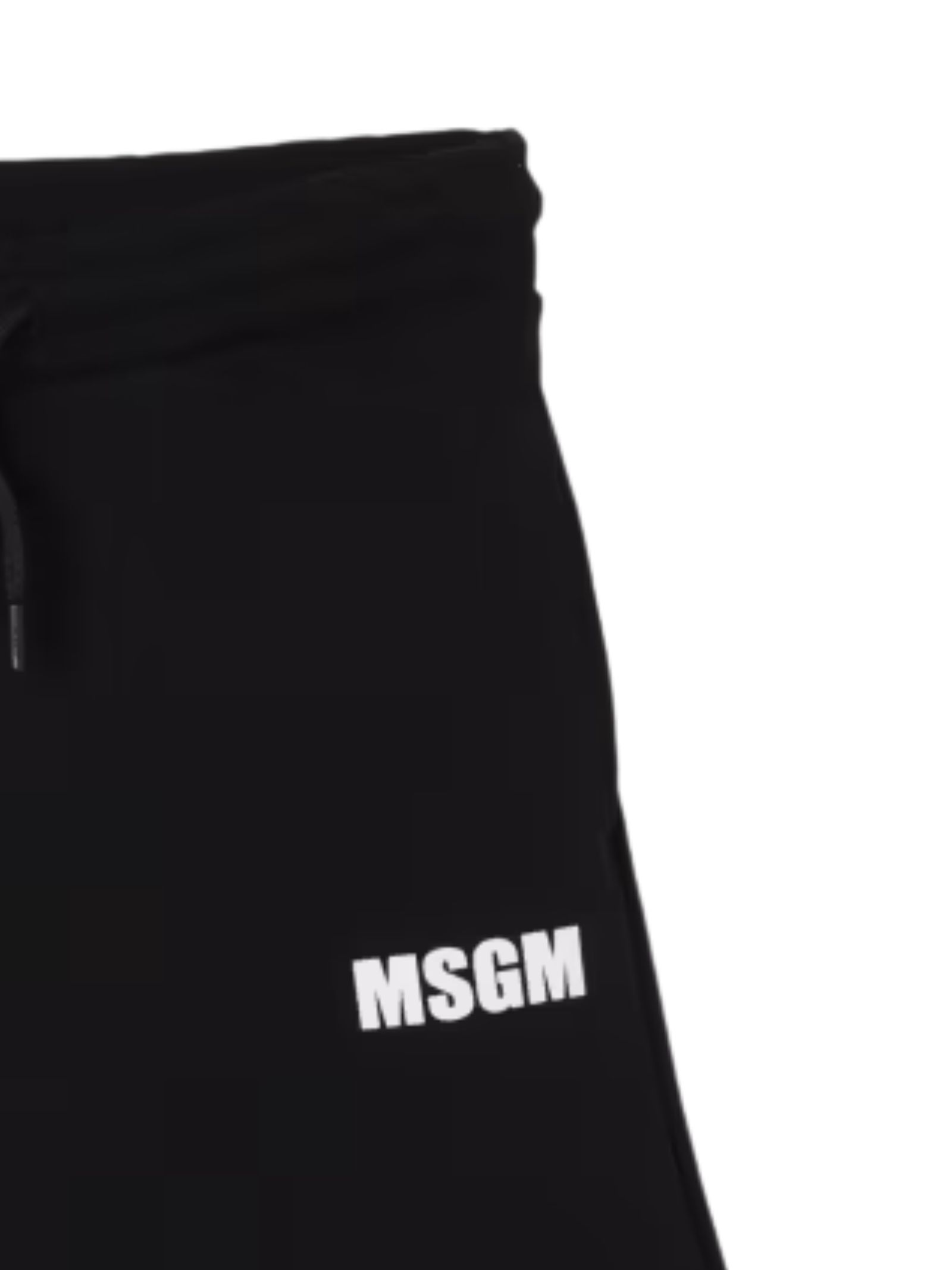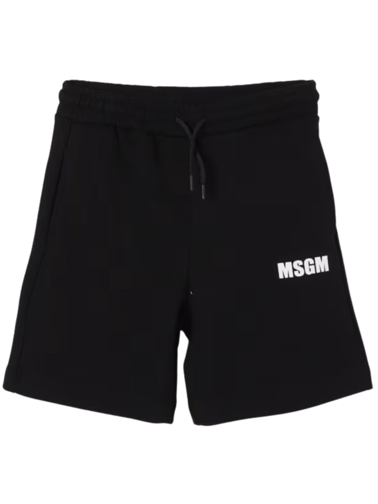 MSGM Kids bermuda di colore nero, modello con elastico in vita e coulisse, due tasche laterali, stampa logo a contrasto bianco, una tasca sul retro, vestibilità regolare. Composizione: 100% cotone