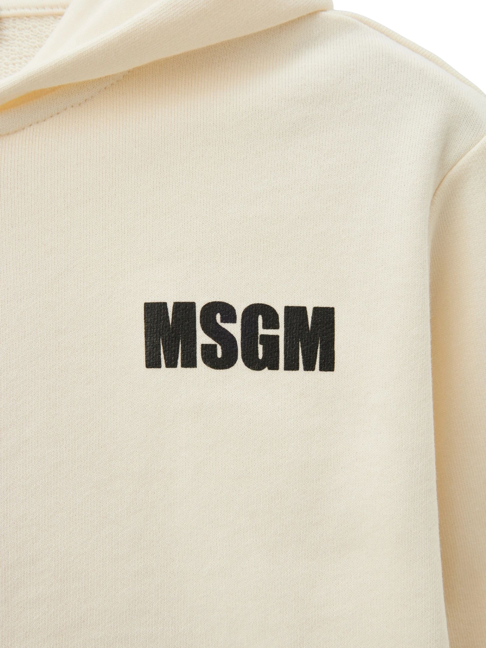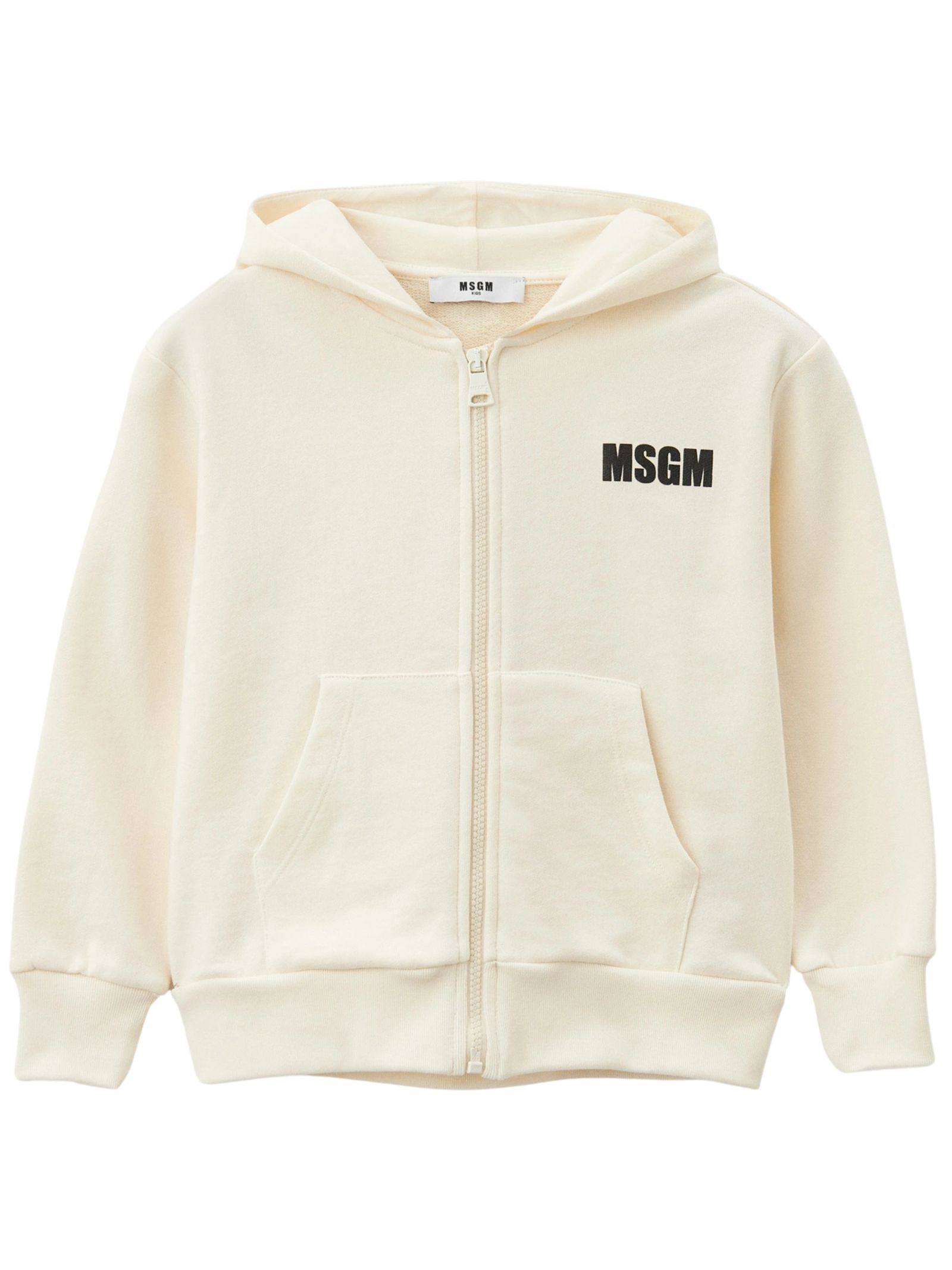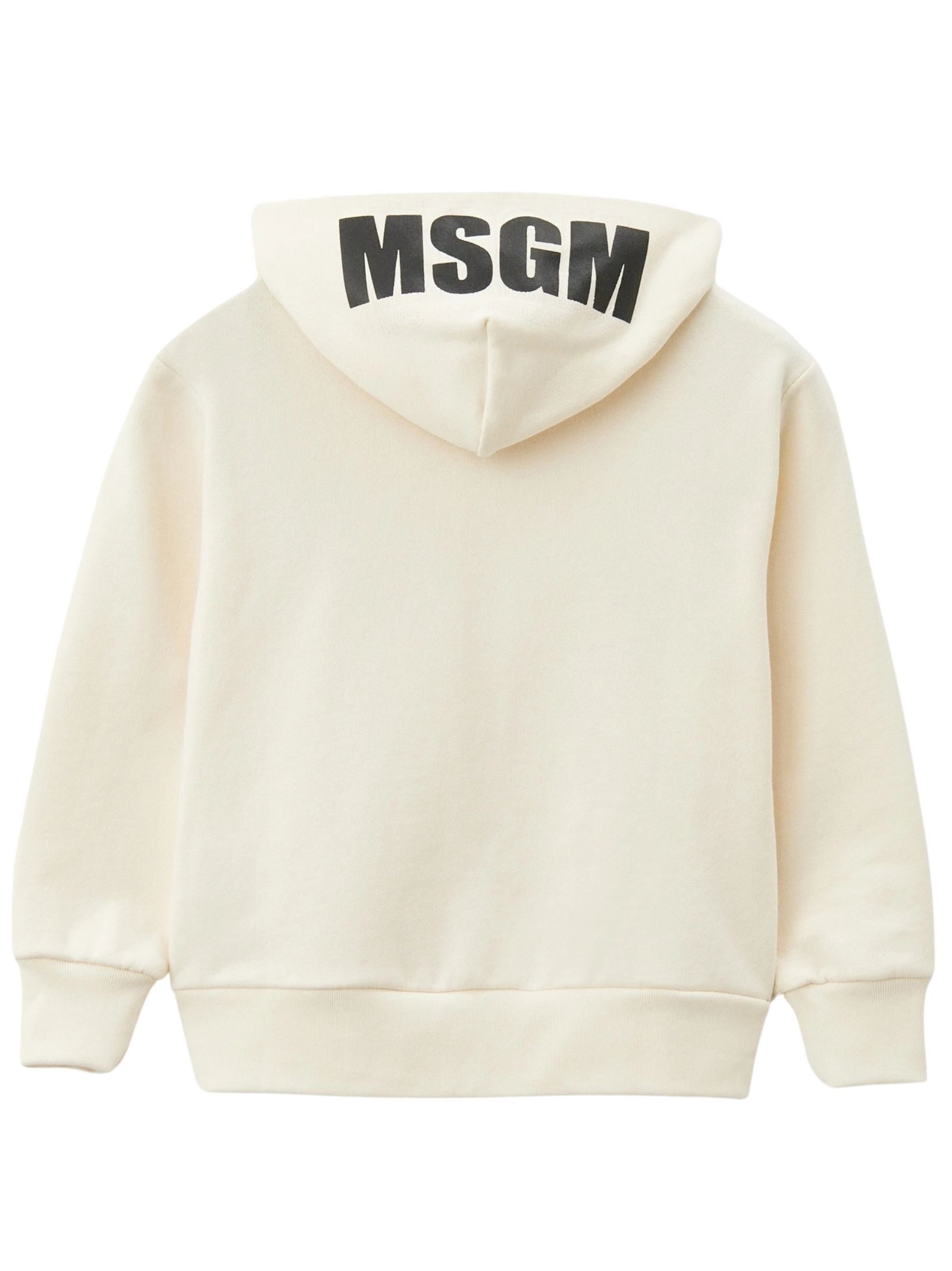 MSGM Kids felpa di colore panna, modello con cappuccio, maniche lunghe, zip centrale, due tasche laterali, stampa logo sul petto e sul cappuccio a contrasto nero, vestibilità regolare. Composizione: 100% cotone