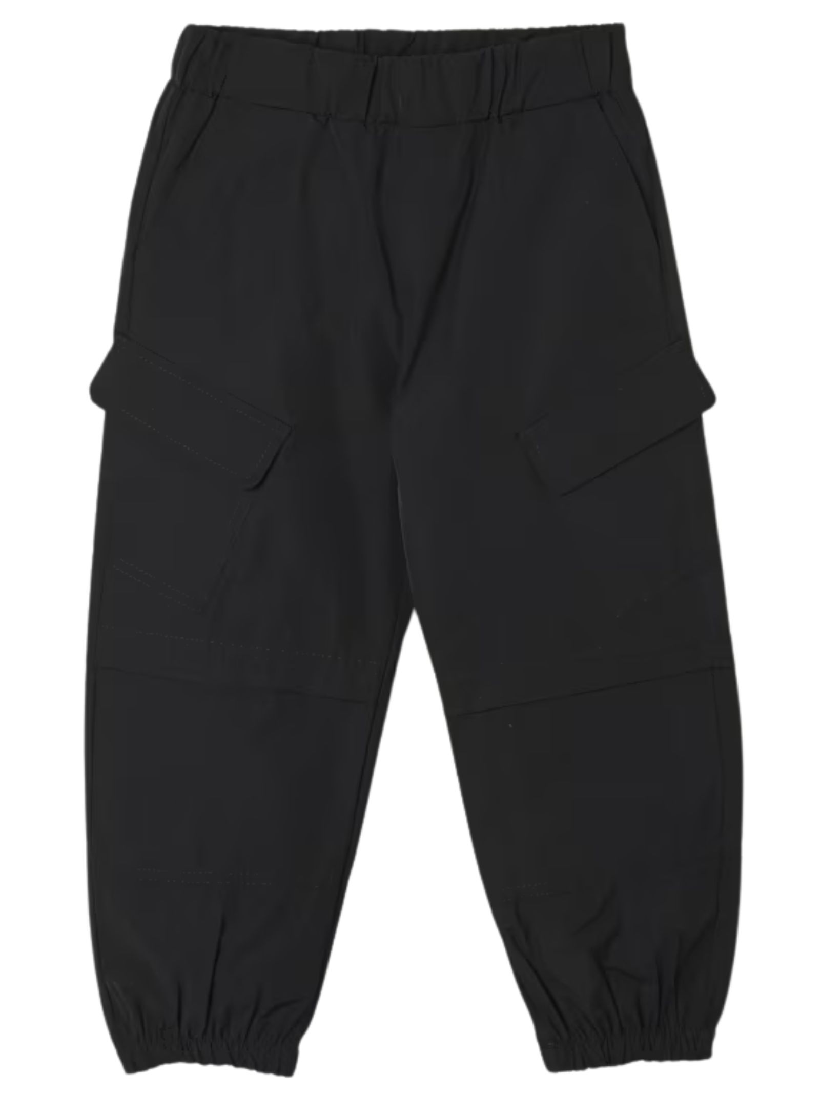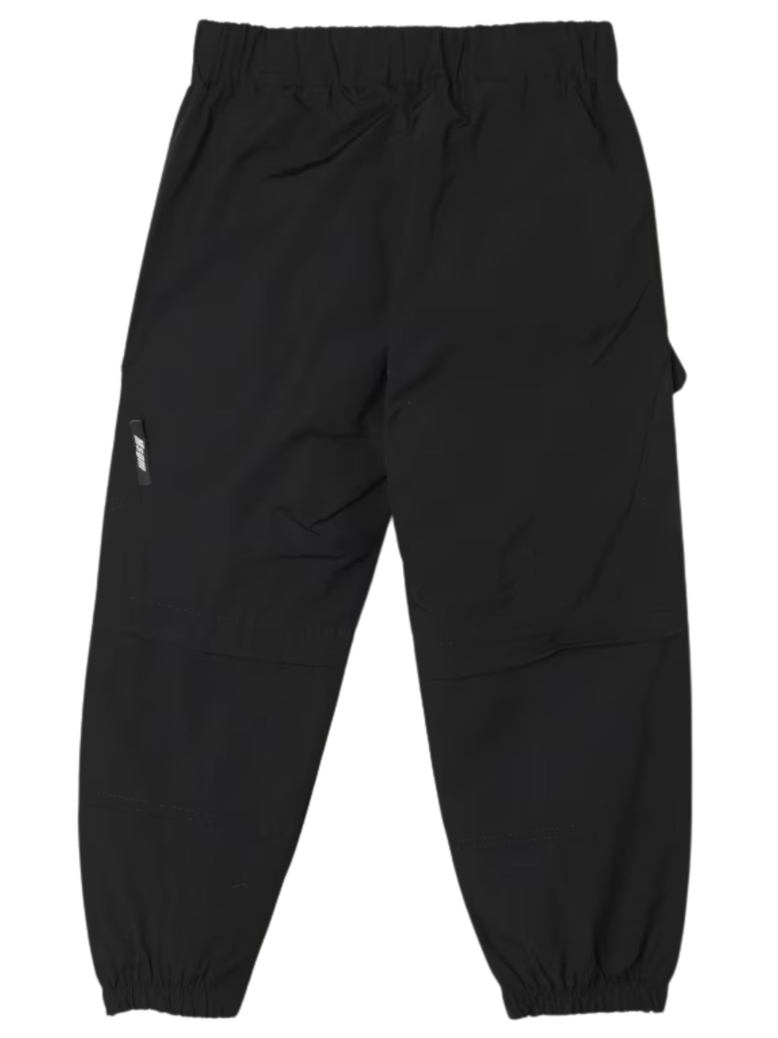 MSGM Kids pantalone di colore nero, modello con elastico in vita, due tasche laterali, due tasconi cargo applicati, patch con logo, caviglie elastiche, vestibilità regolare. Composizione: 54% Poliestere 46% Cotone. Made in Italy