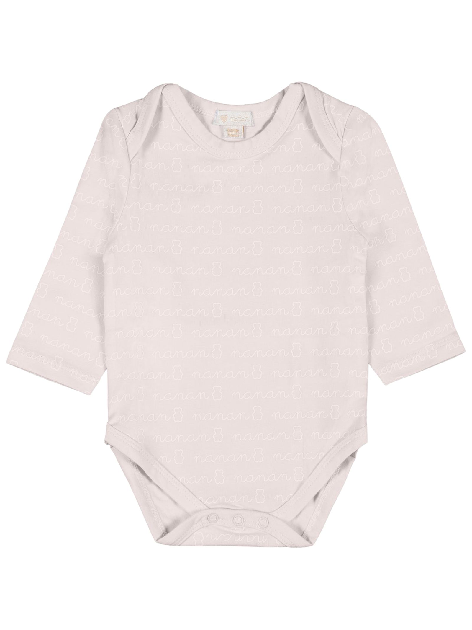 Nanan Kids body di colore rosa realizzato in cotone, design girocollo, dettaglio stampa logo a contrasto bianco all-over, manica lunga, apertura con bottoni sul cavallo. Composizione: 95% cotone 5% elastan