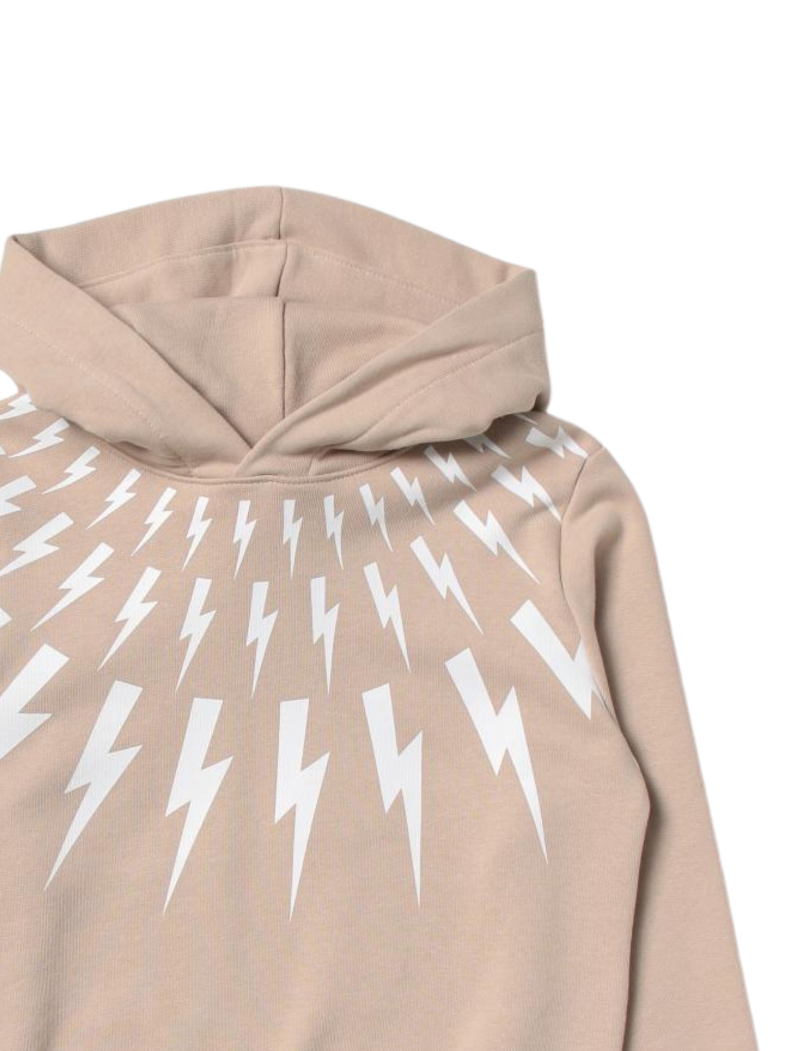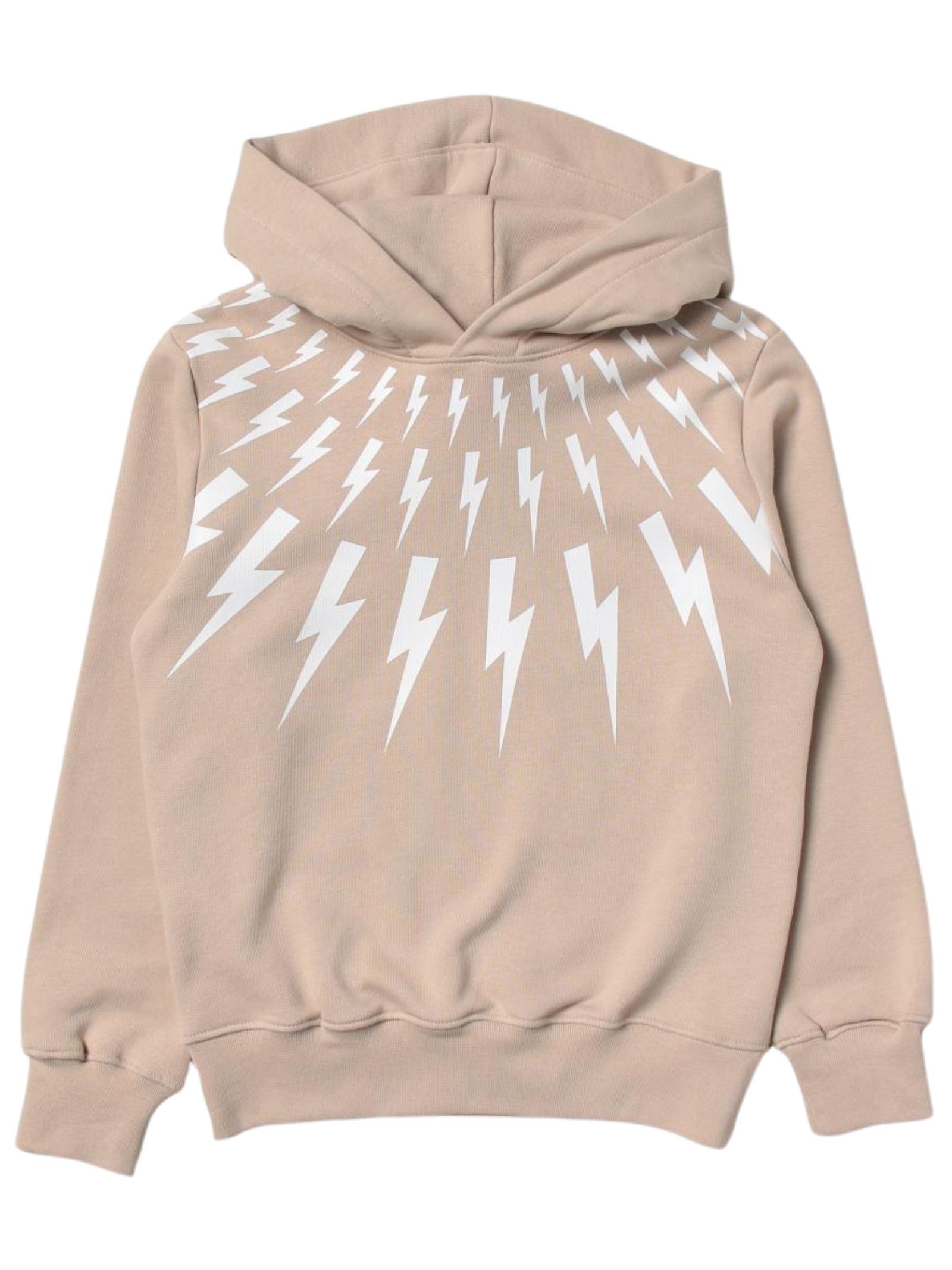 Neil Barret Kids felpa di colore beige decorata da stampa fulmini sul davanti in bianco, modello manica lunga, con cappuccio e mini stampa logo sul retro, vestibilità regolare, orlo dritto. Composizione: 100% cotone