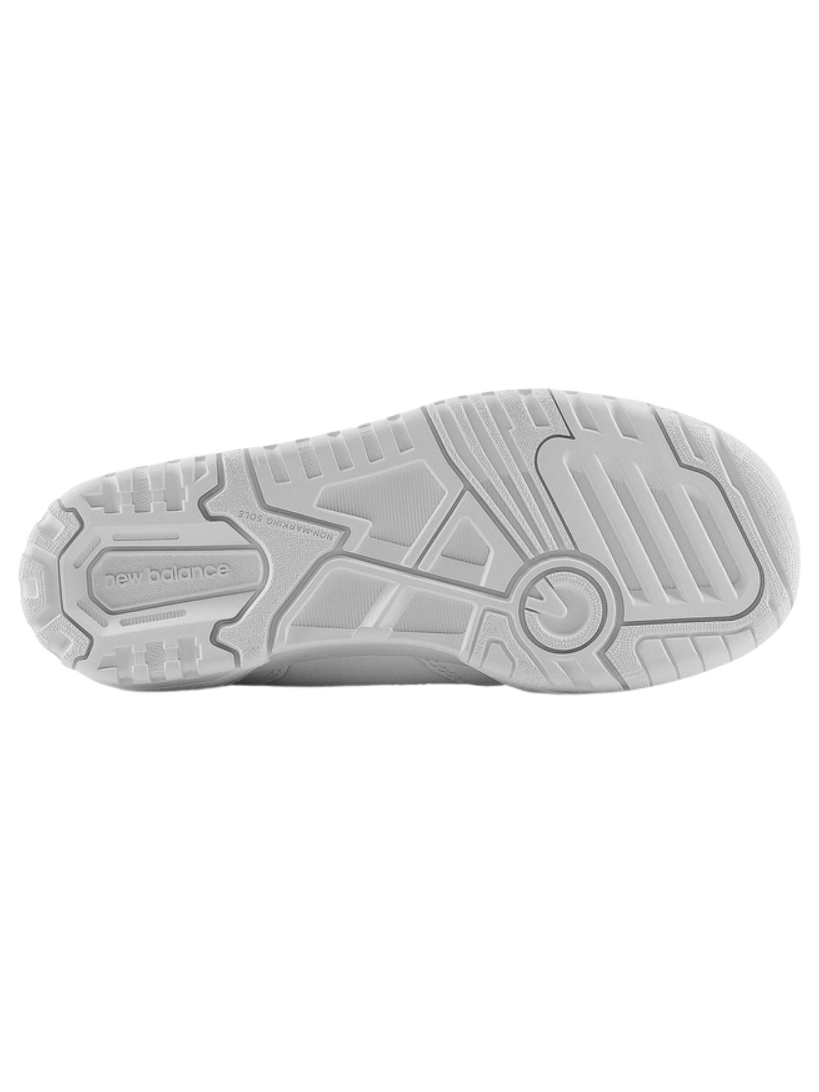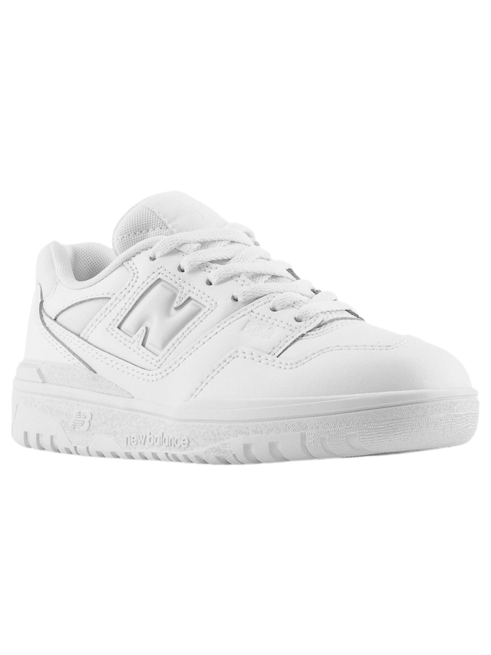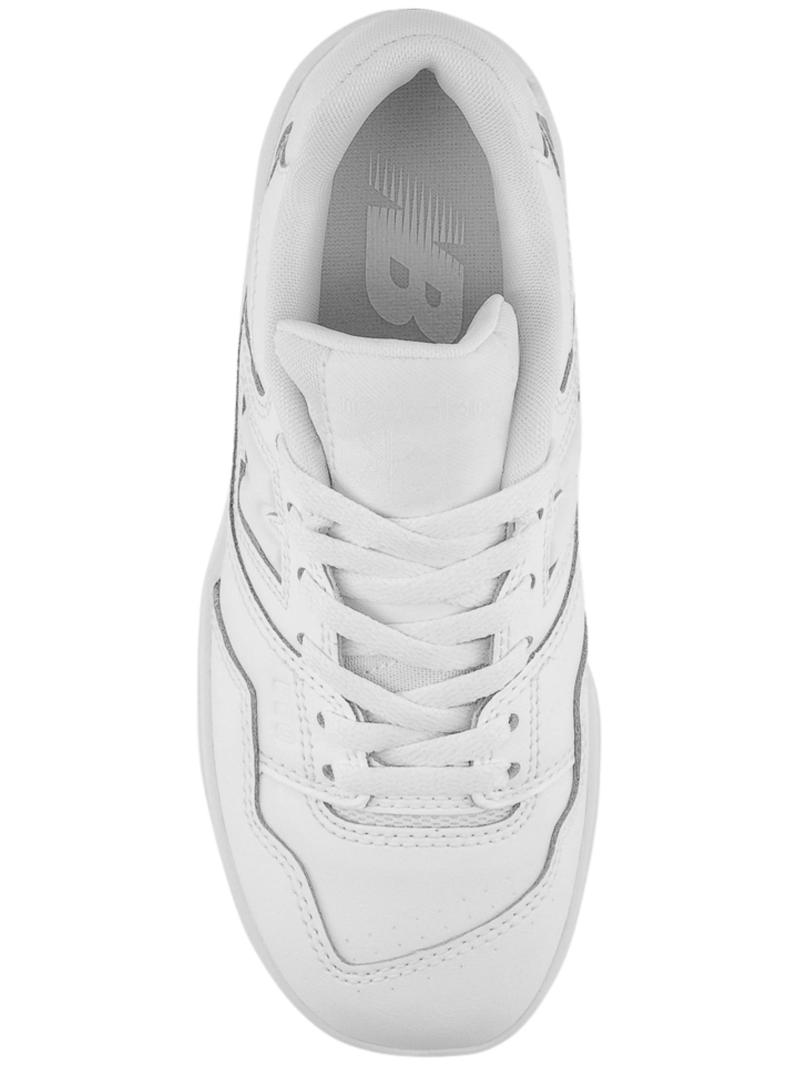 New Balance Kids scarpe in pelle di colore bianco, inserti in tela, modello con punta tonda, chiusura frontale con lacci, suola in gomma con insenature.