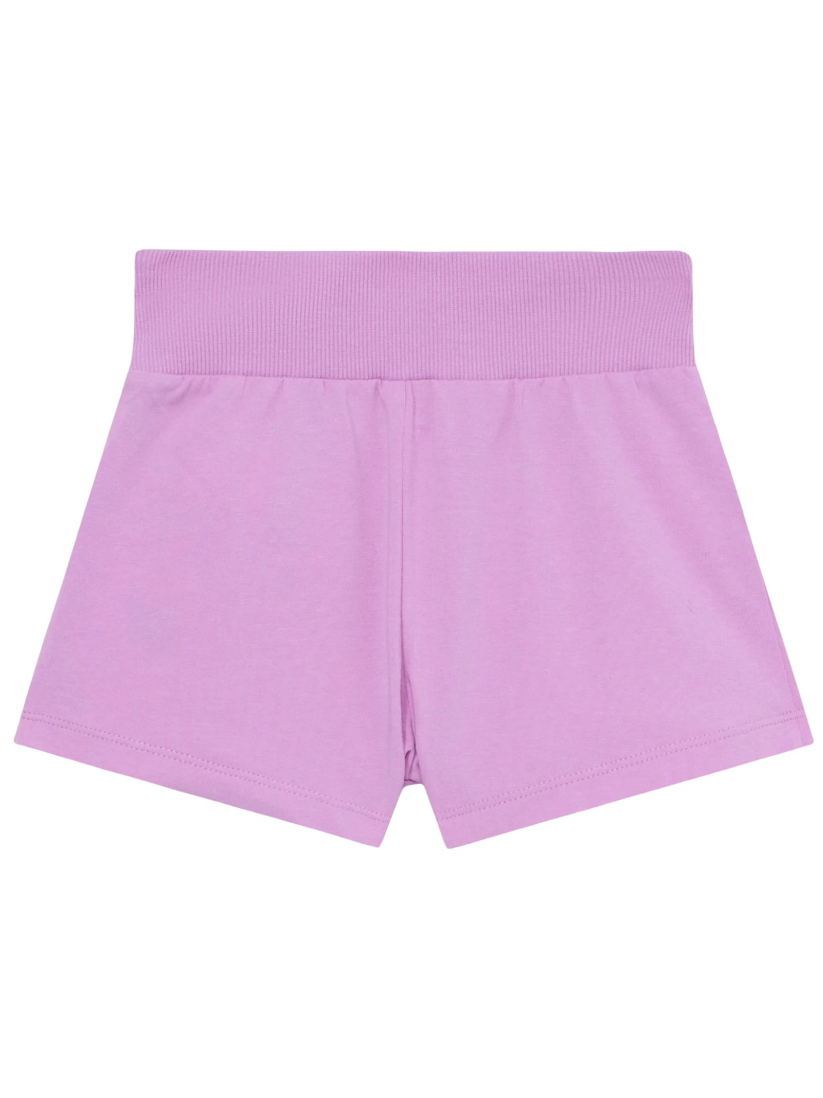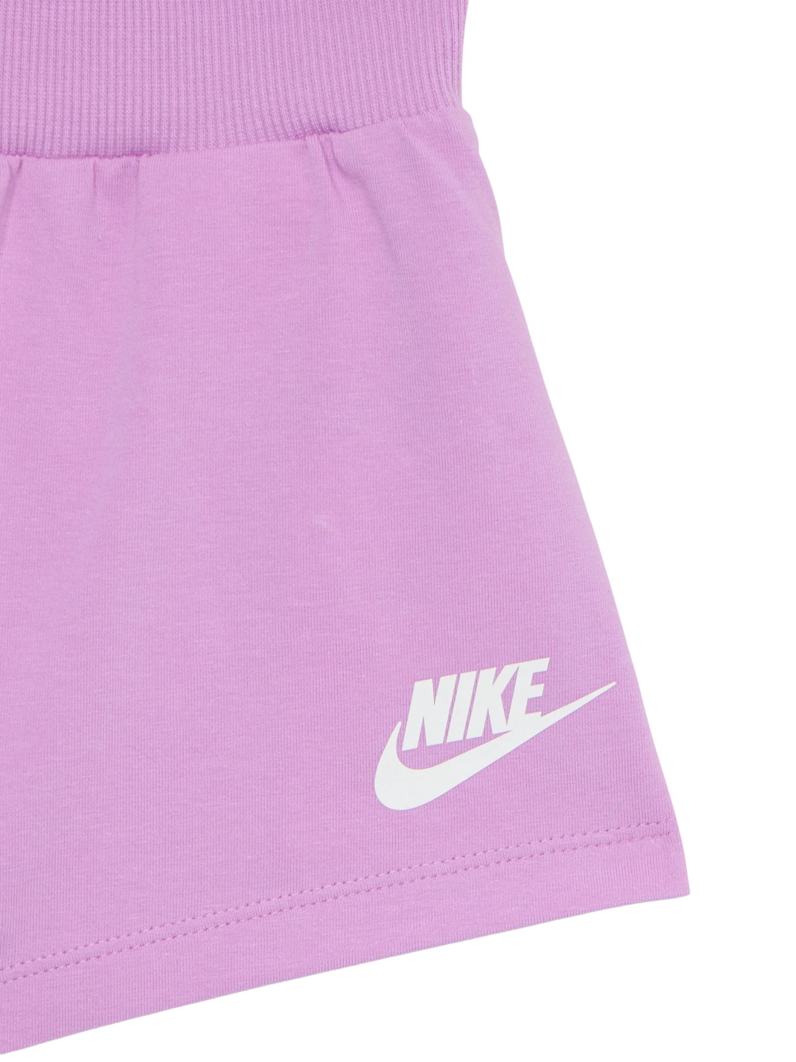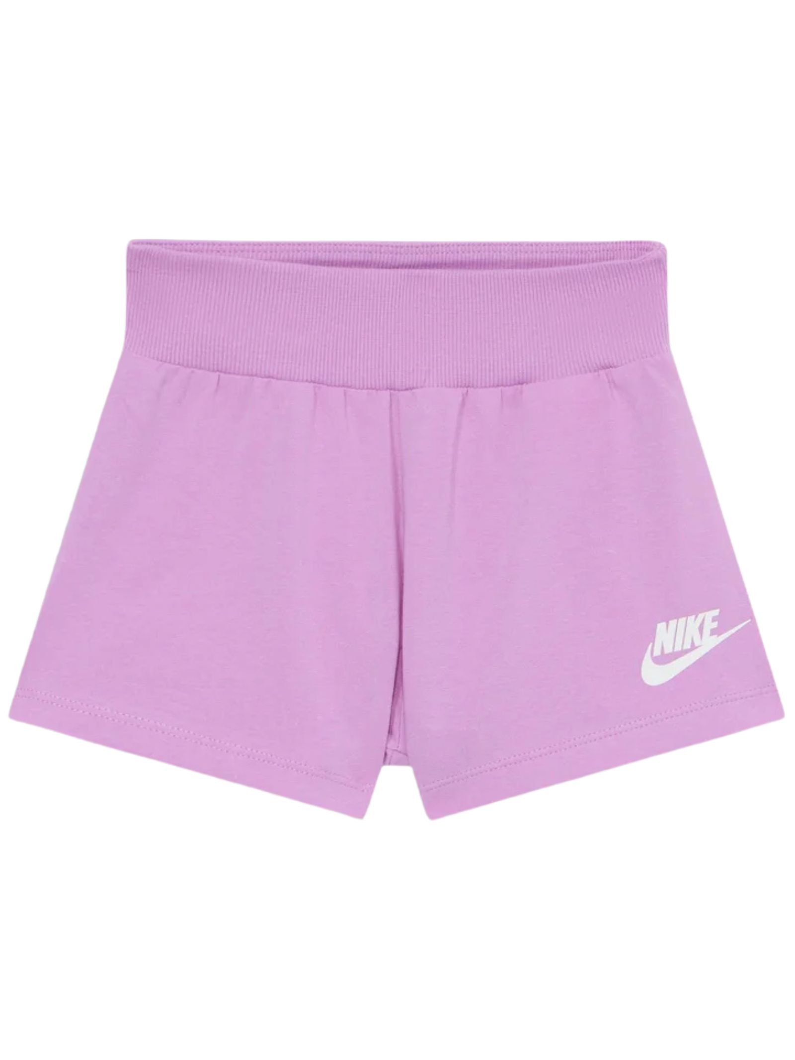 Nike Kids shorts di colore lilla, modello con elastico in vita, stampa logo a contrasto bianco, vestibilità regolare. Composizione: 95% cotone 5% elastan