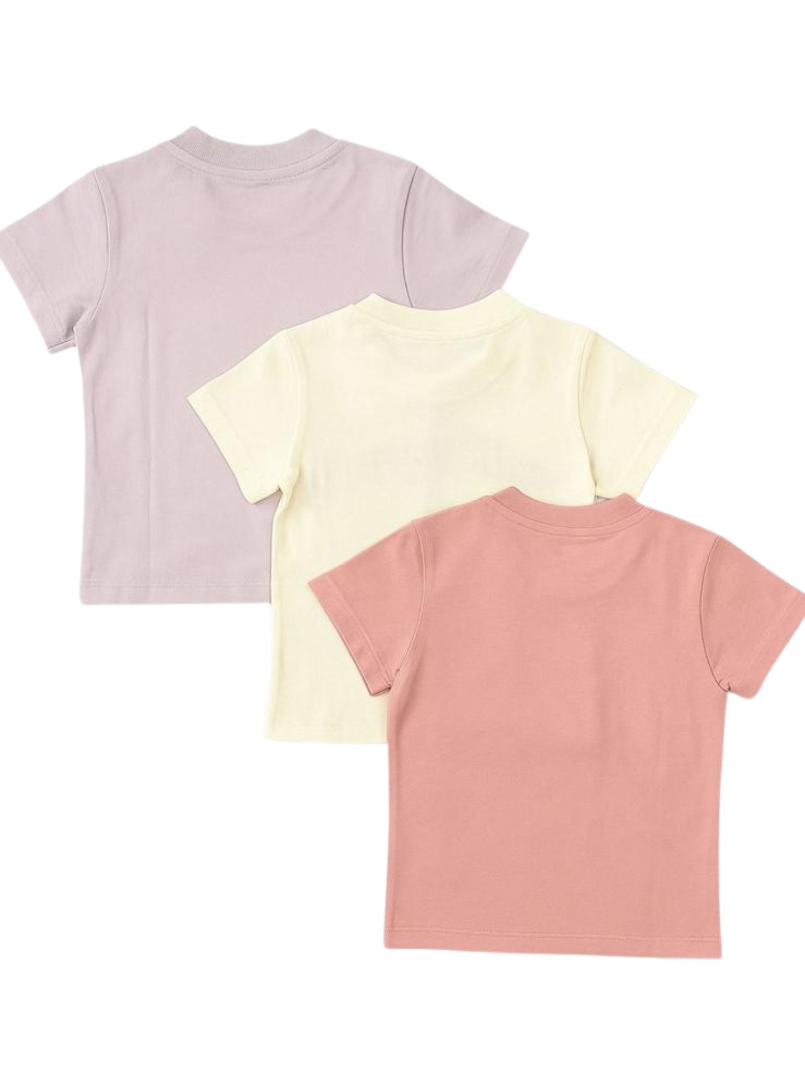 Palm Angels Kids tris di t-shirt di colore rosa, lilla, panna, design girocollo, mezza manica, stampa logo a contrasto, vestibilità regolare, bottoni automatici sulla spalla. Composizione: 100% cotone