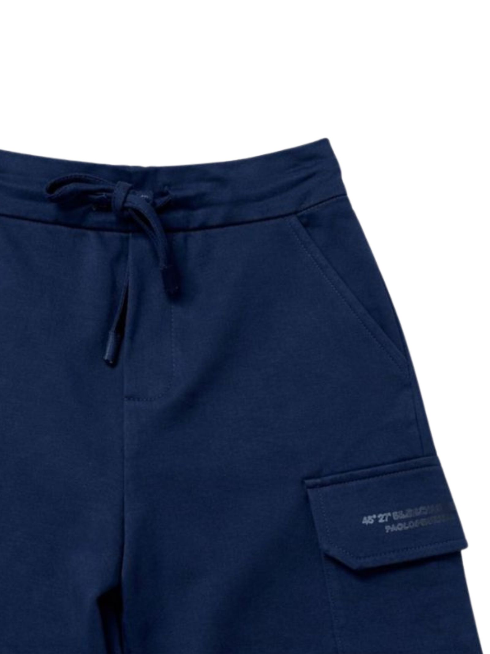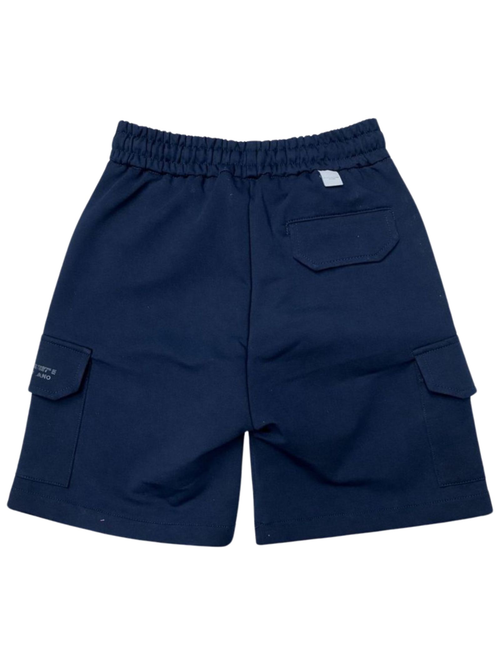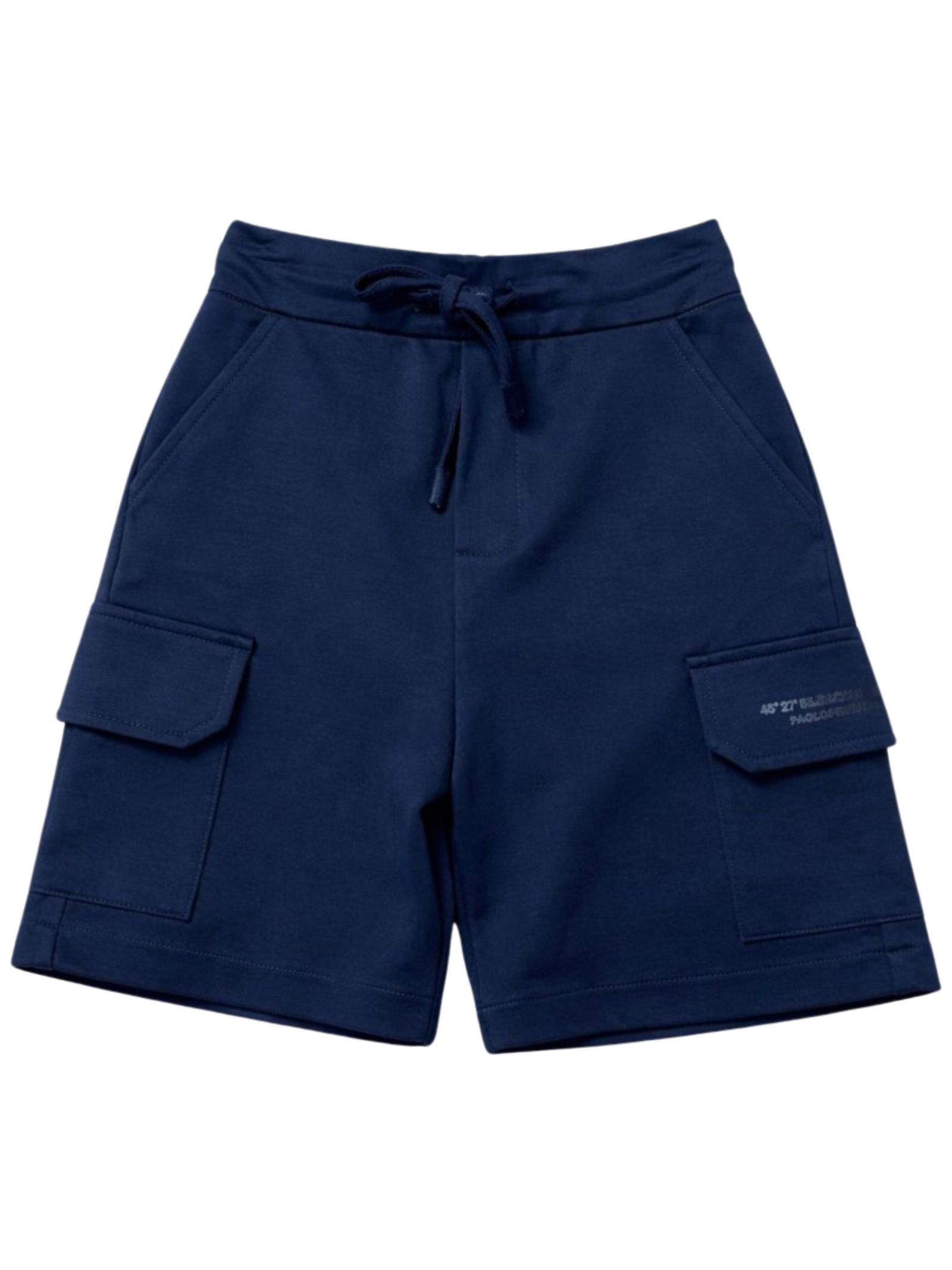 Paolo Pecora Kids bermuda di colore blu, modello con vita elastica e coulisse, due tasche laterali, due tasche cargo, uma tasca sul retro, stampa logo, vestibilità regolare. Composizione: 70% Cotone 24% poliestere 6% elastan. Made in Italy
