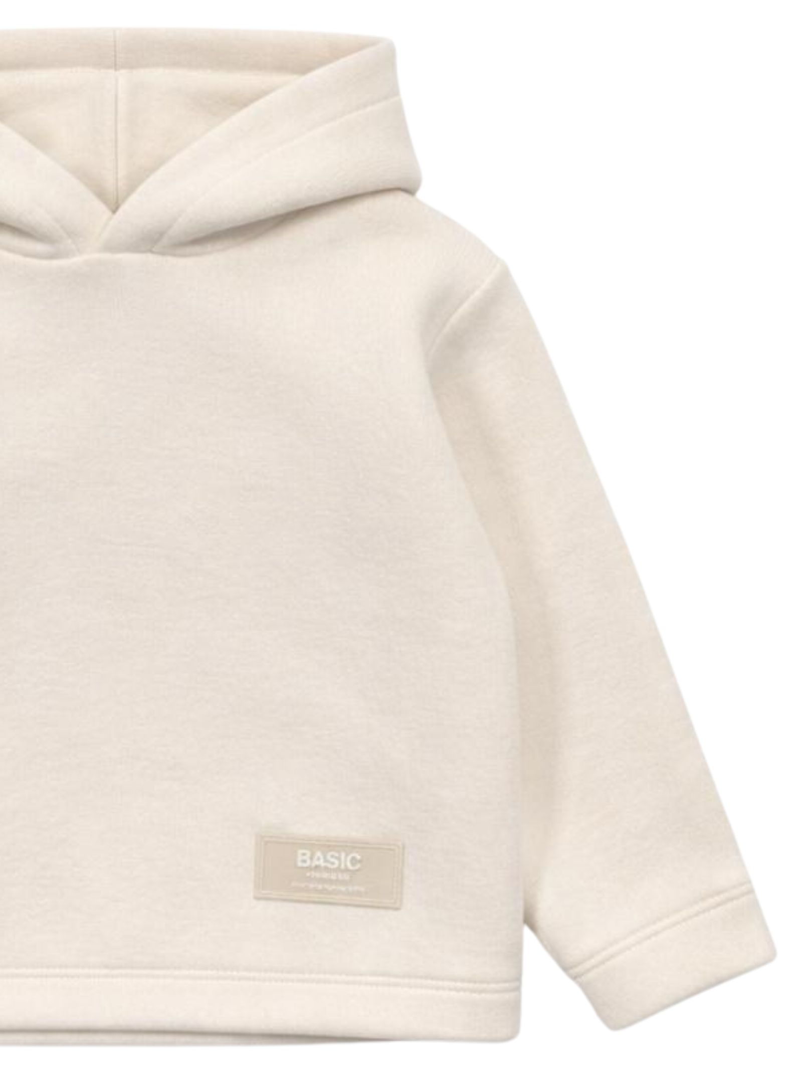 Paolo Pecora Kids felpa di colore panna, realizzata in morbida maglia, modello con cappuccio, manica lunga, patch con logo applicato, vestibilità regolare, orlo dritto. Composizione: 80% Poliestere 15% viscosa 5% elastan. Made in Italy
