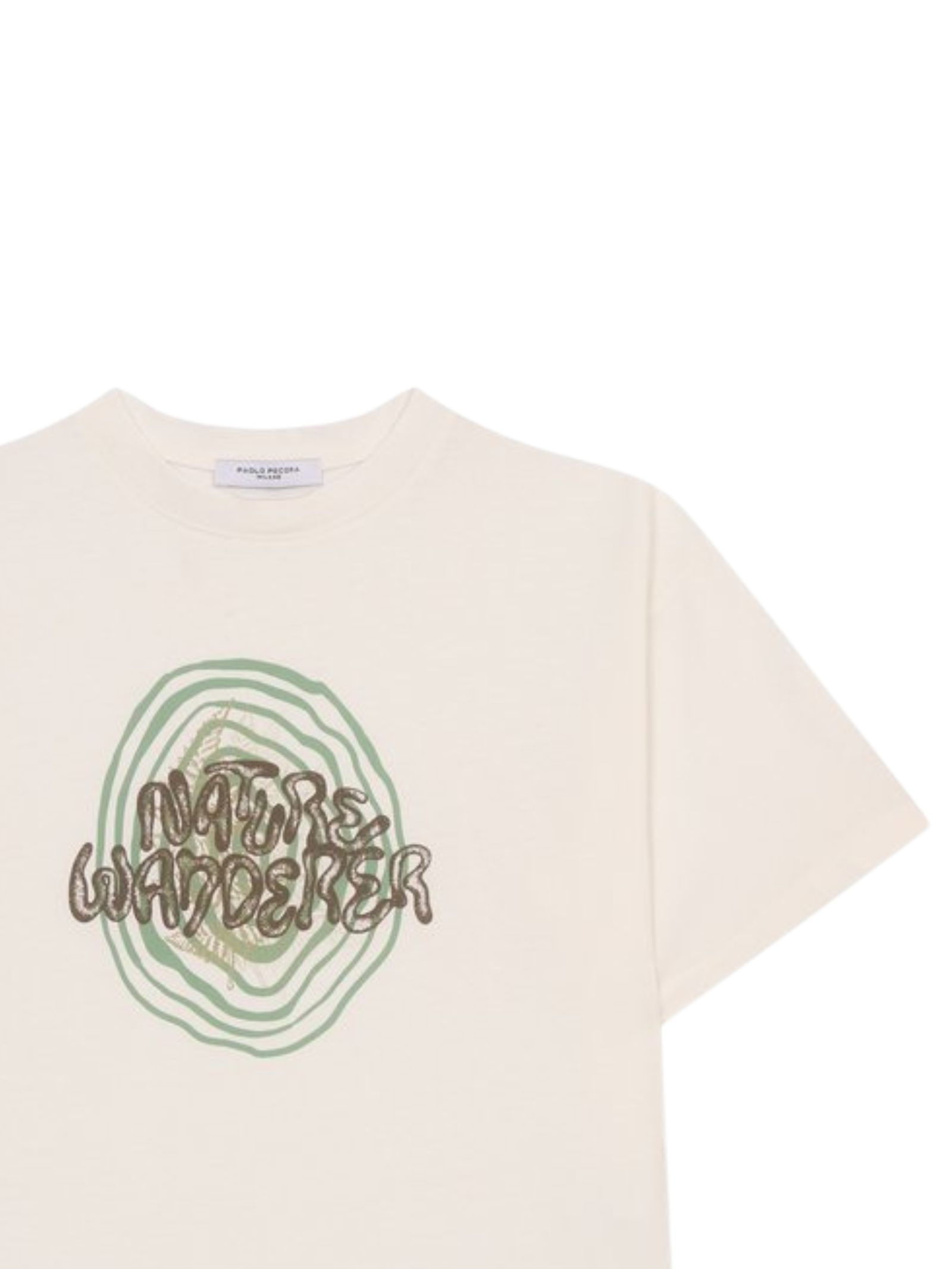 Paolo Pecora Kids t-shirt di colore bianco, modello girocollo, mezze maniche, stampa logo a contrasto multicolor, orlo dritto, vestibilità regolare. Composizione: 100% cotone. Made in Italy