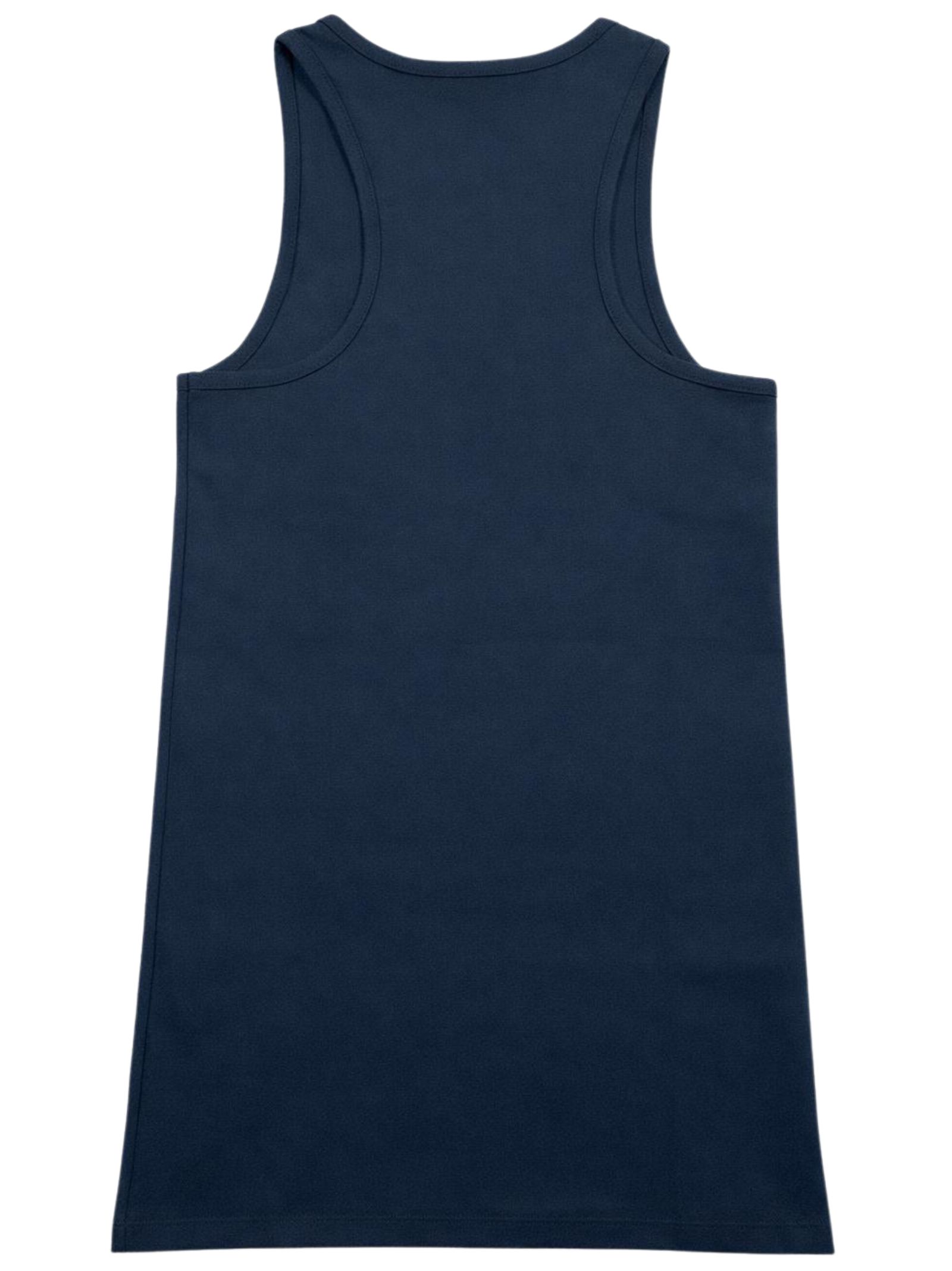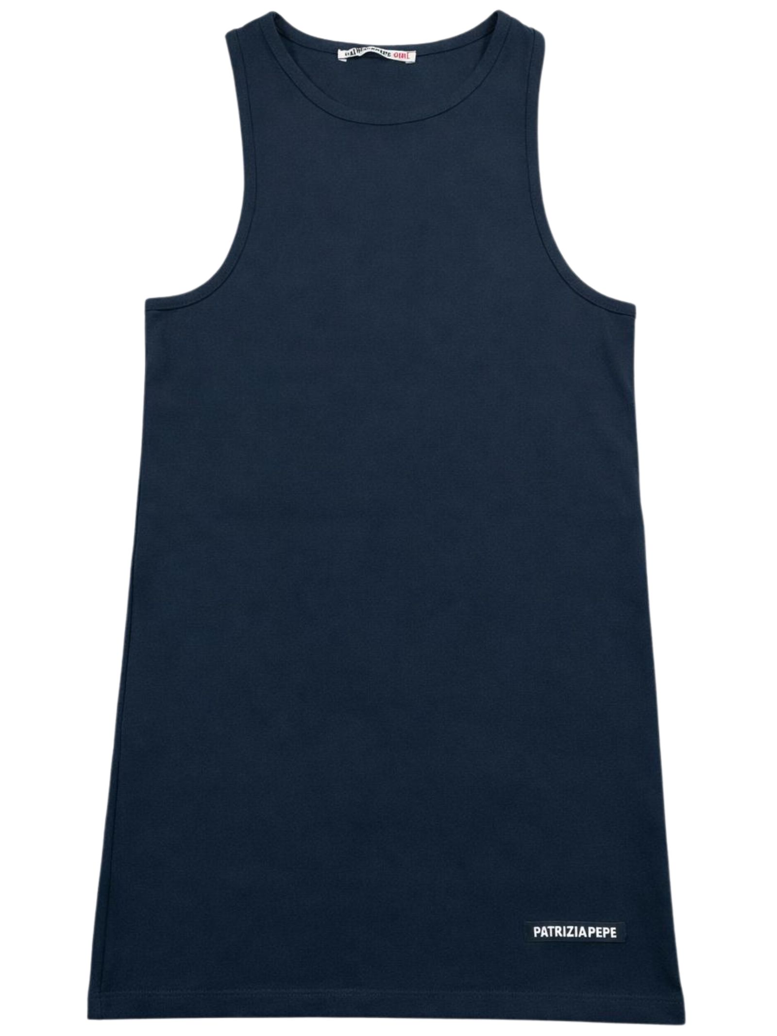 Patrizia Pepe Kids abito di colore blu, modello girocollo, smanicato, applicazione patch con logo, design svasato, vestibilità regolare. Composizione: 100% cotone. Made in Italy