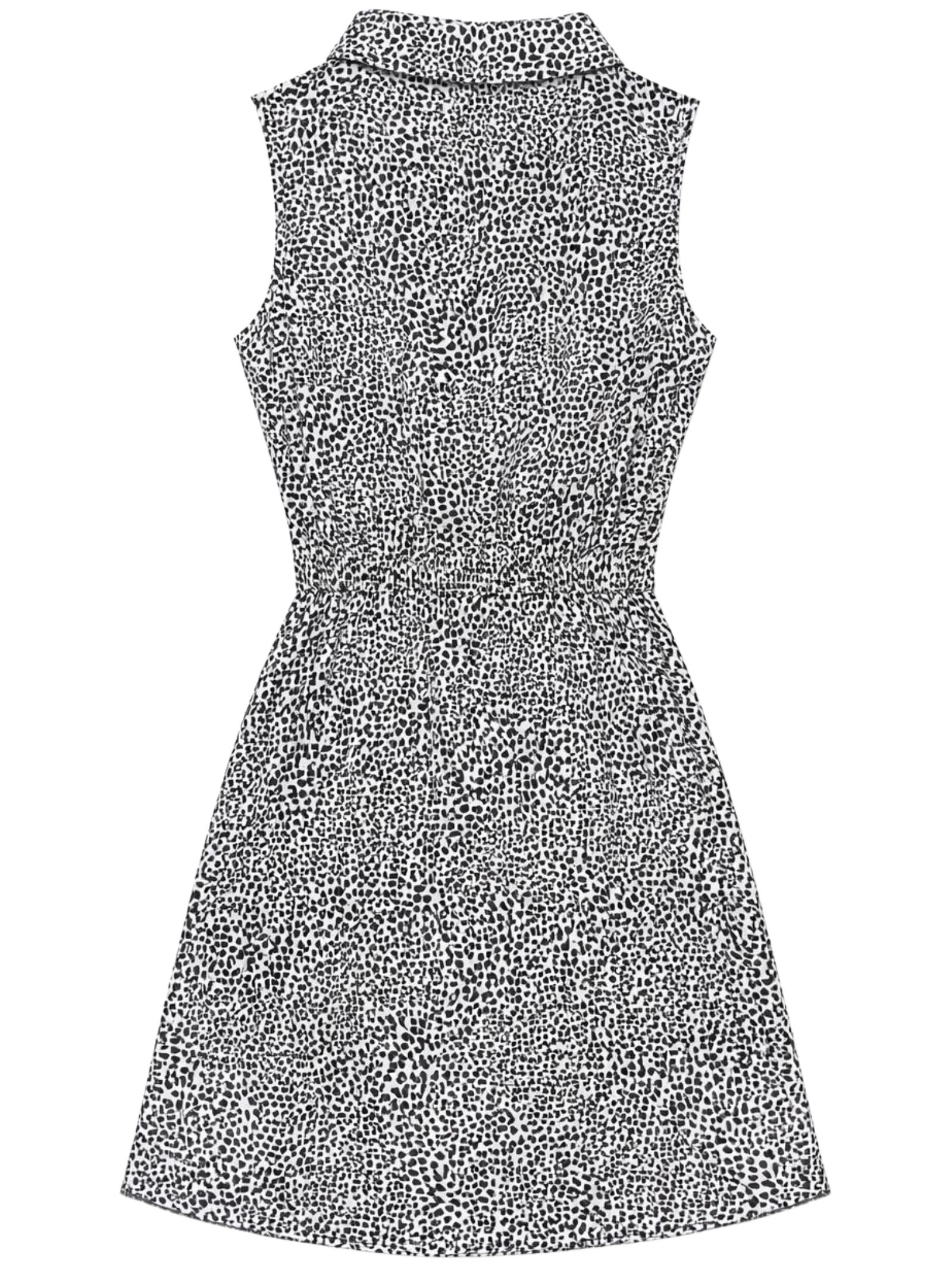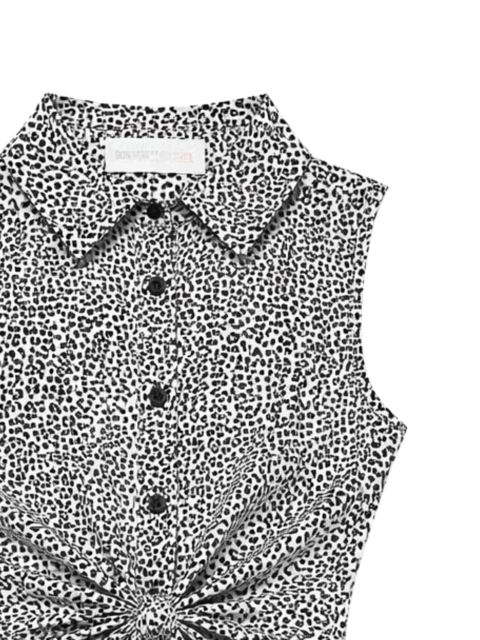 Patrizia Pepe Kids abito in fantasia all-over di colore nero/bianco, modello smanicato, nodo centrale, dettaglio cut-out sul davanti, design svasato. Composizione: 100% viscosa. Made in Italy