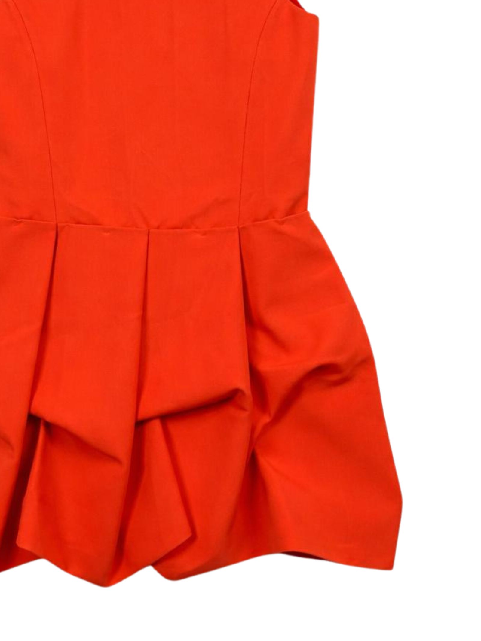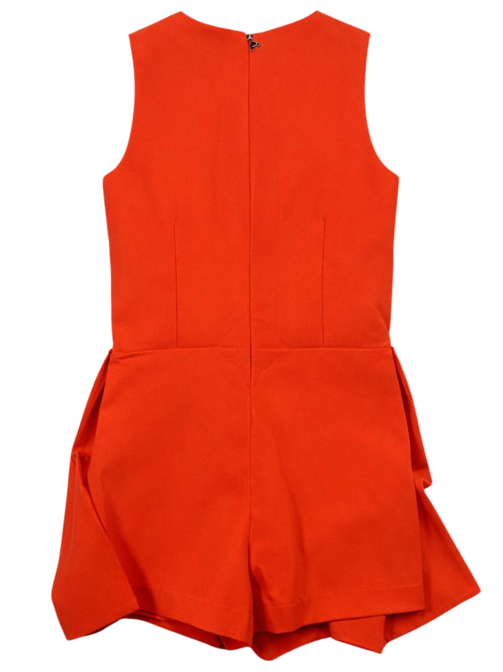Patrizia Pepe Kids abito design tuta di colore rosso corallo, modello smanicato, girocollo, lato inferiore shorts con effetto rouches sul davanti, chiusura posteriore zip con applicazione logo in metallo, vestibilità regolare. Composizione: 95% poliestere 5% elastan. Fodera: 100% poliestere. Made in Italy