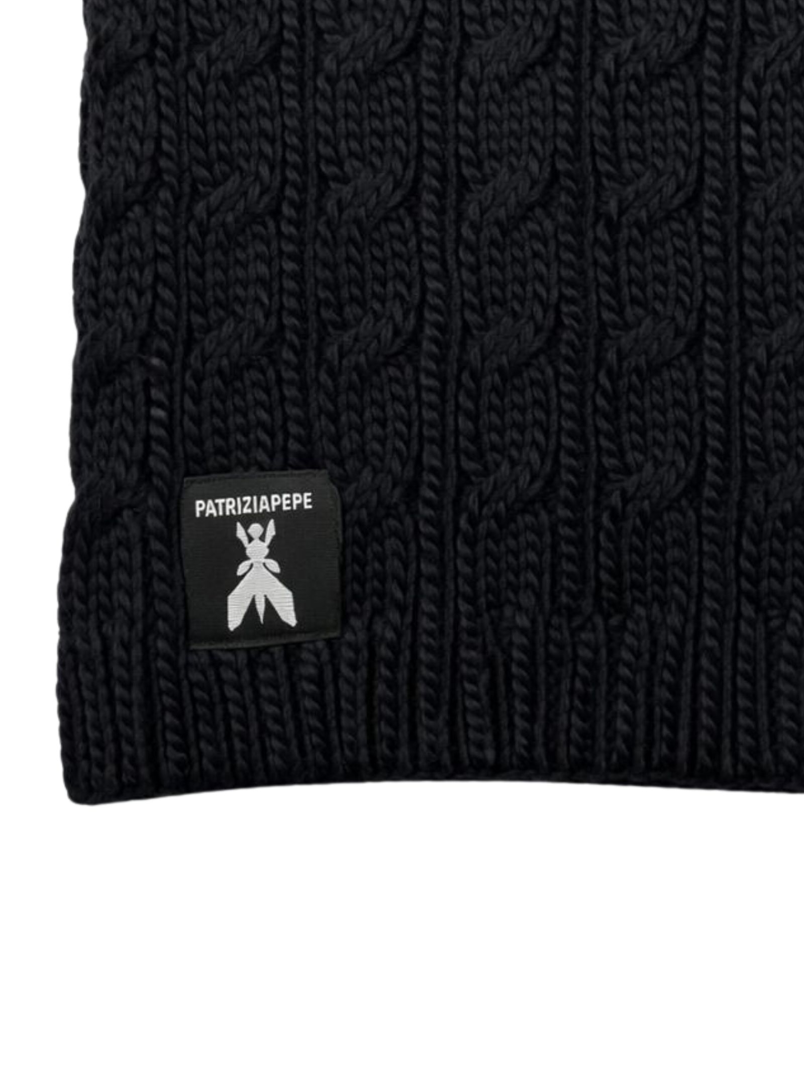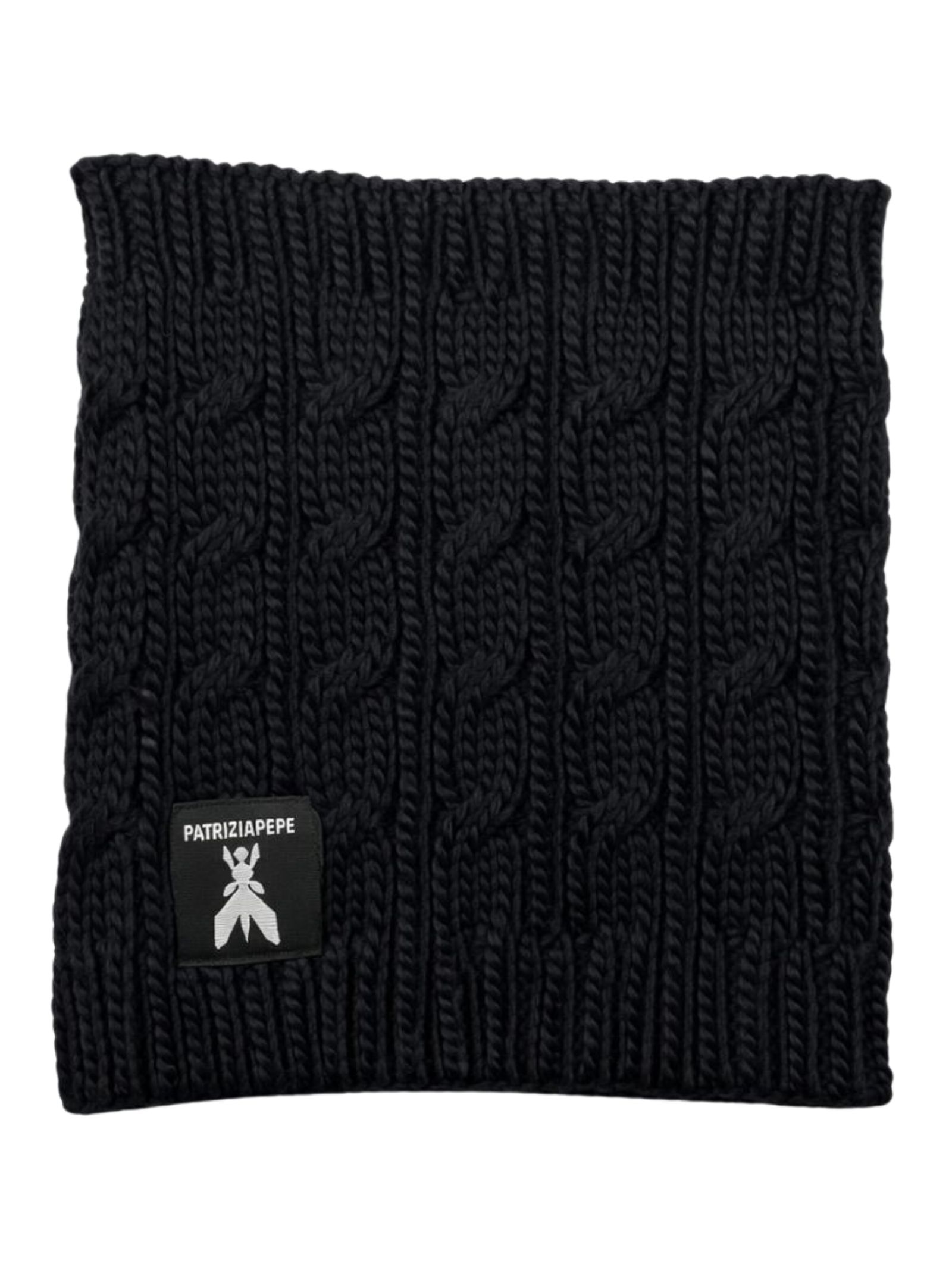Patrizia Pepe Kids collo di colore nero, realizzato in morbida maglia intrecciata, dettaglio patch con logo a contrasto. Composizione: 100% acrilica