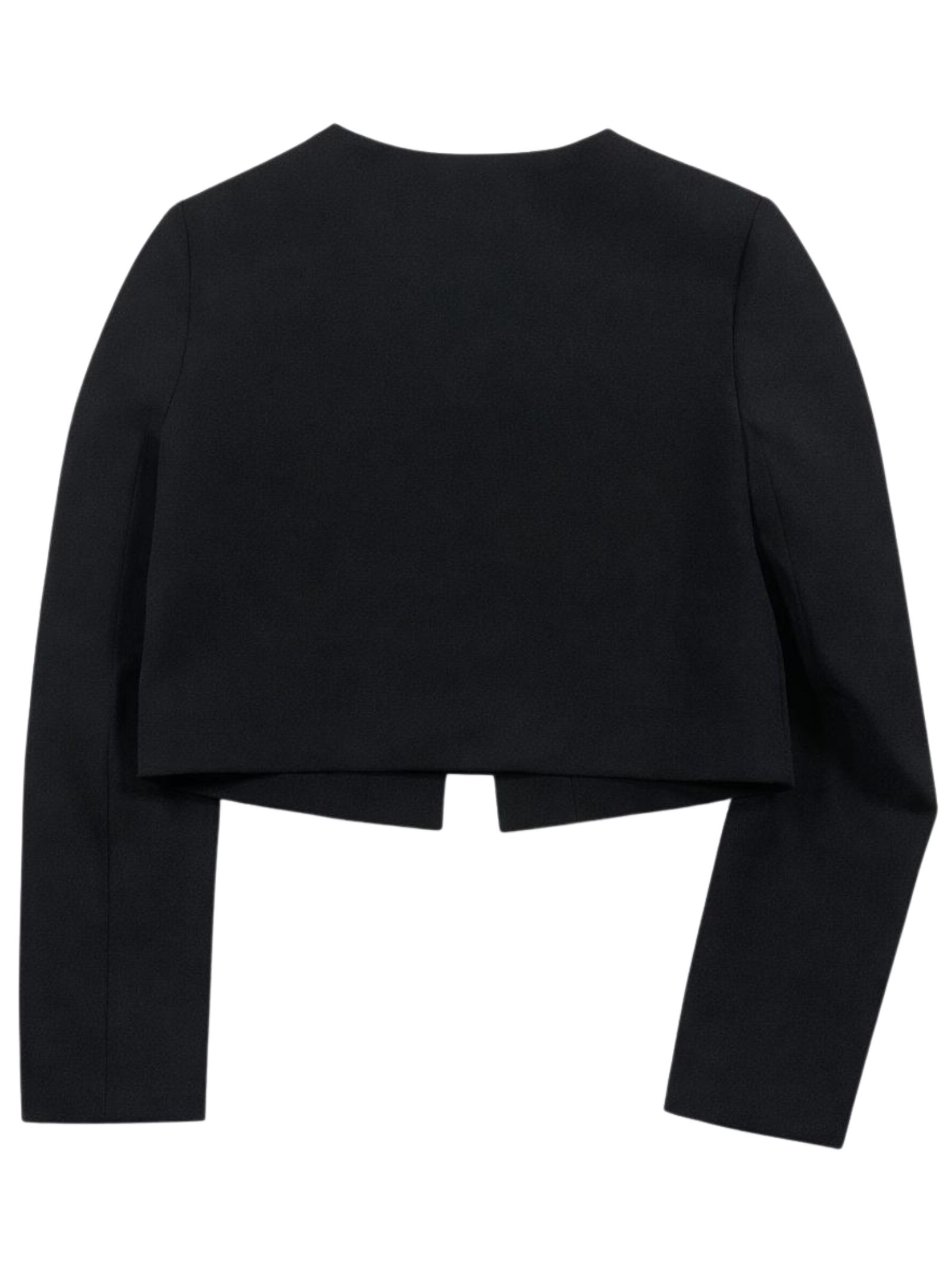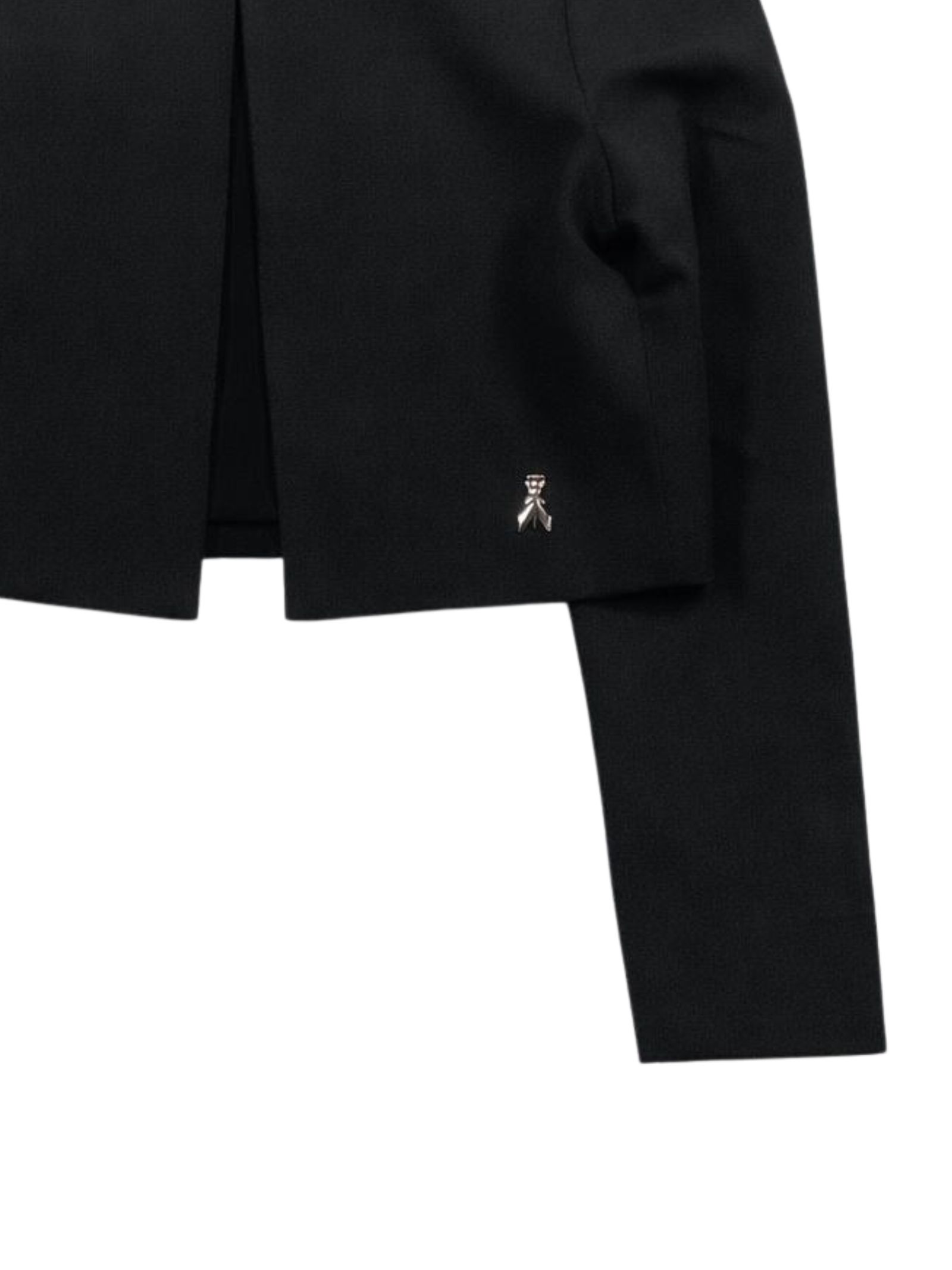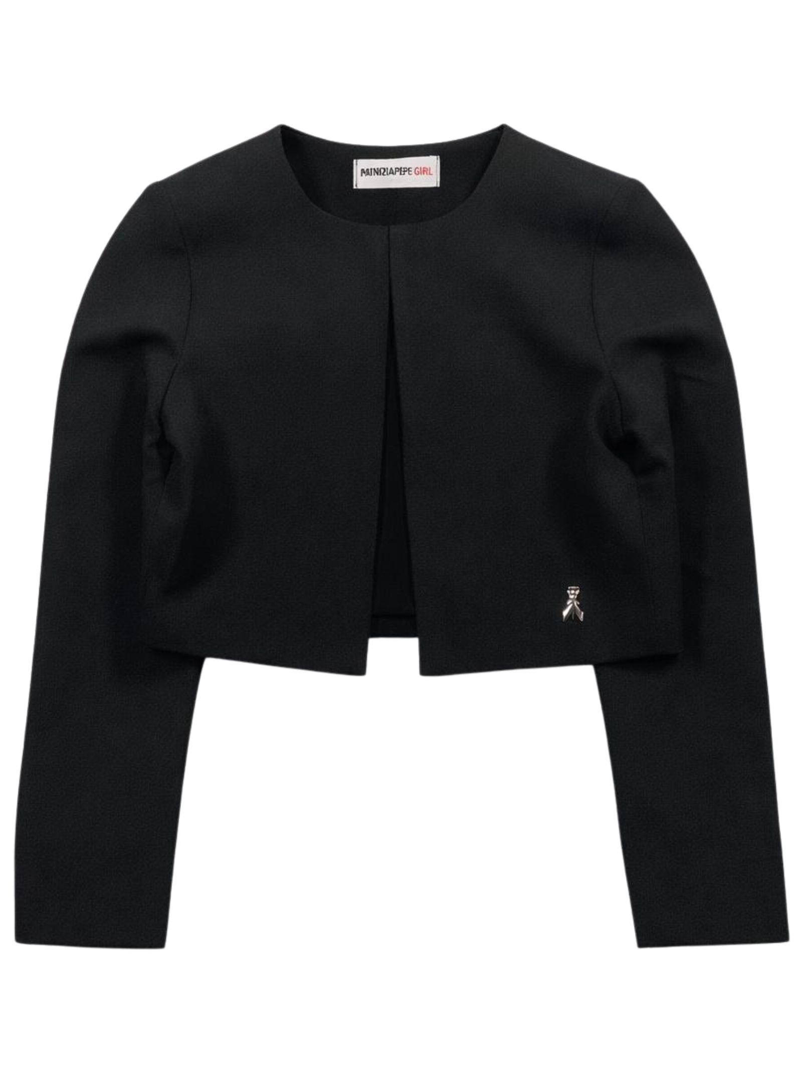 Patrizia Pepe Kids giacca di colore nero, modello corto, girocollo, design con un bottone al collo, applicazione logo in metallo, vestibilità regolare. Composizione: 95% poliestere 5% elastan. Fodera: 100% poliestere. Made in Italy