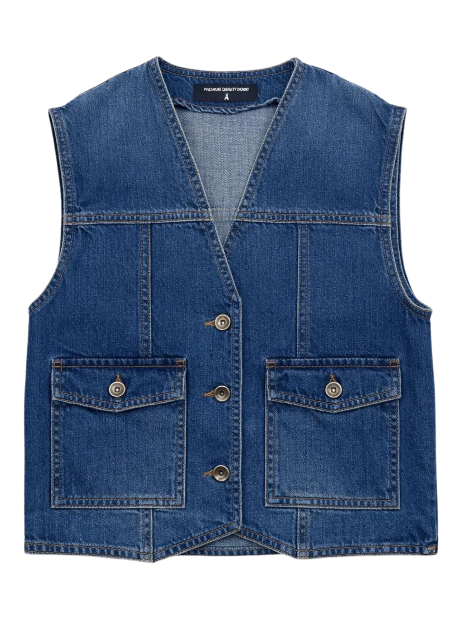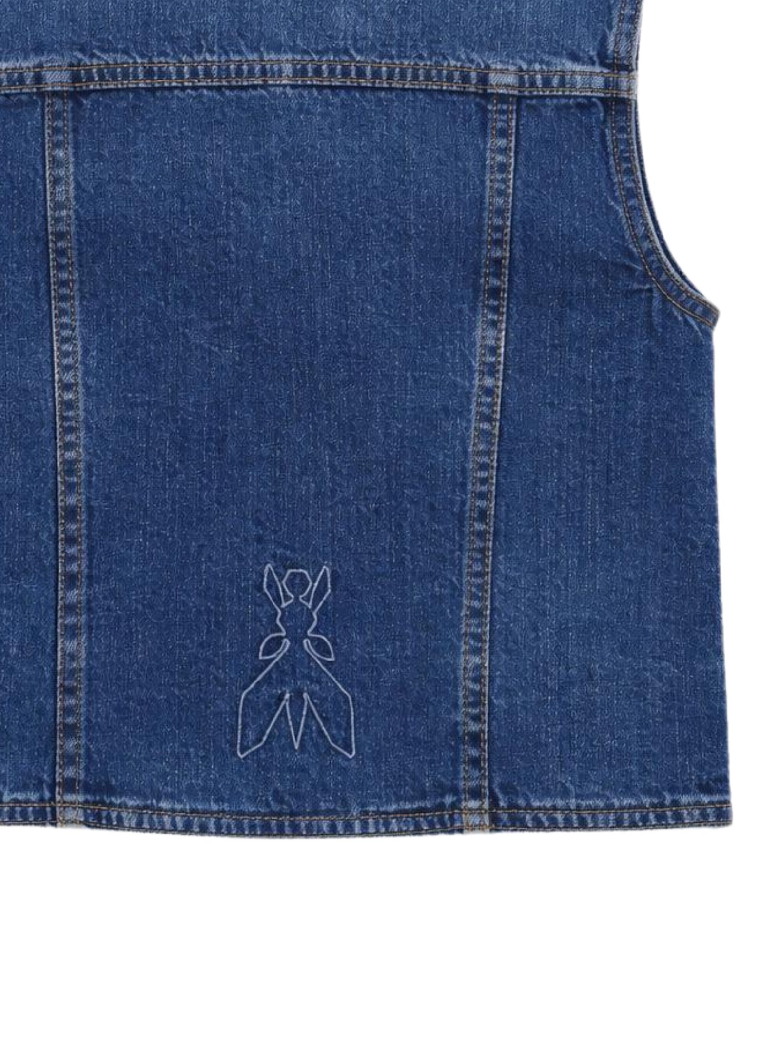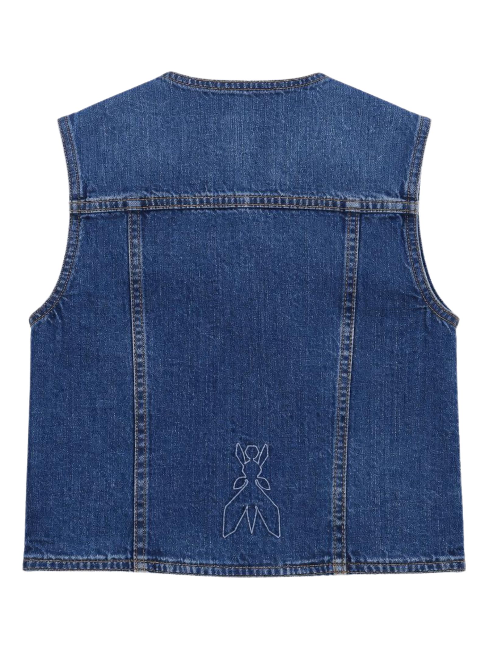 Patrizia Pepe Kids gilet in jeans dal lavaggio scuro, due tasconi frontali con patta e bottone, ricamo logo sul retro, vestibilità regolare. Composizione: 100% cotone. Made in Italy
