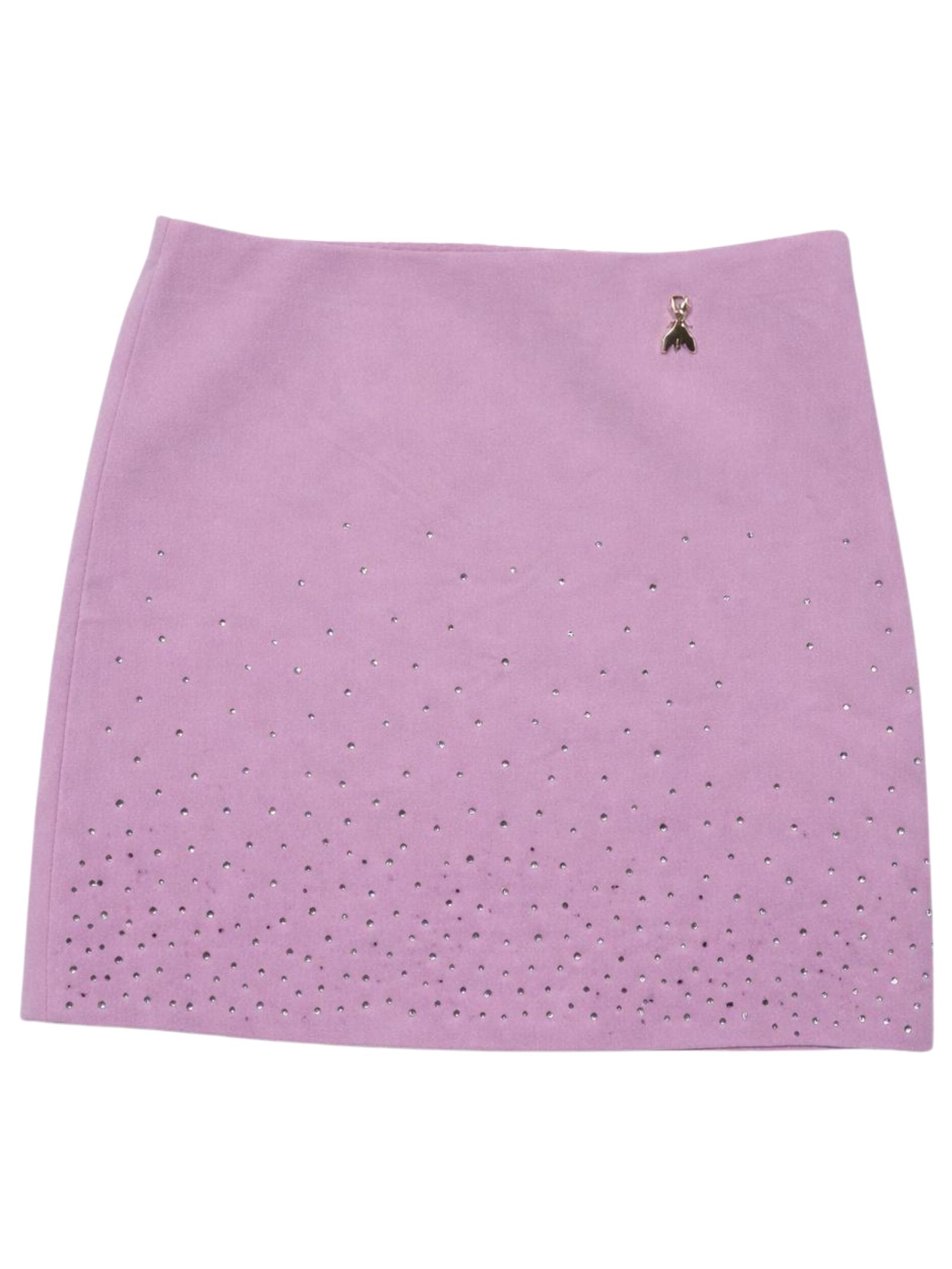 Patrizia Pepe Kids gonna di colore lilla, modello con vita regolare, caratterizzata da applicazione strass a contrasto, zip laterale, applicazione logo in metallo, vestibilità regolare. Composizione: 95% poliestere 5% elastan. Made in Italy