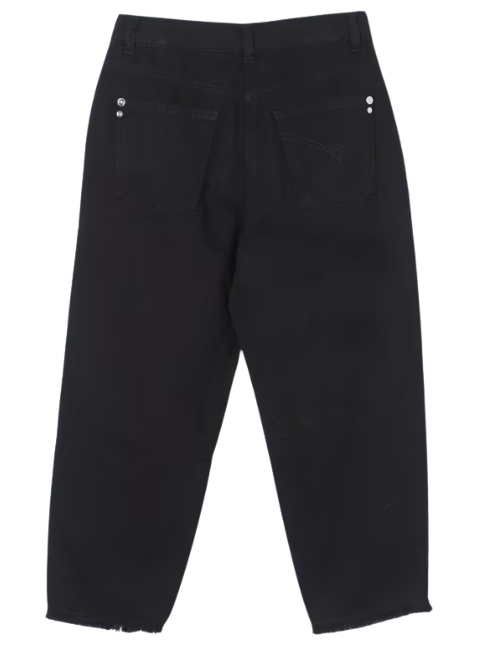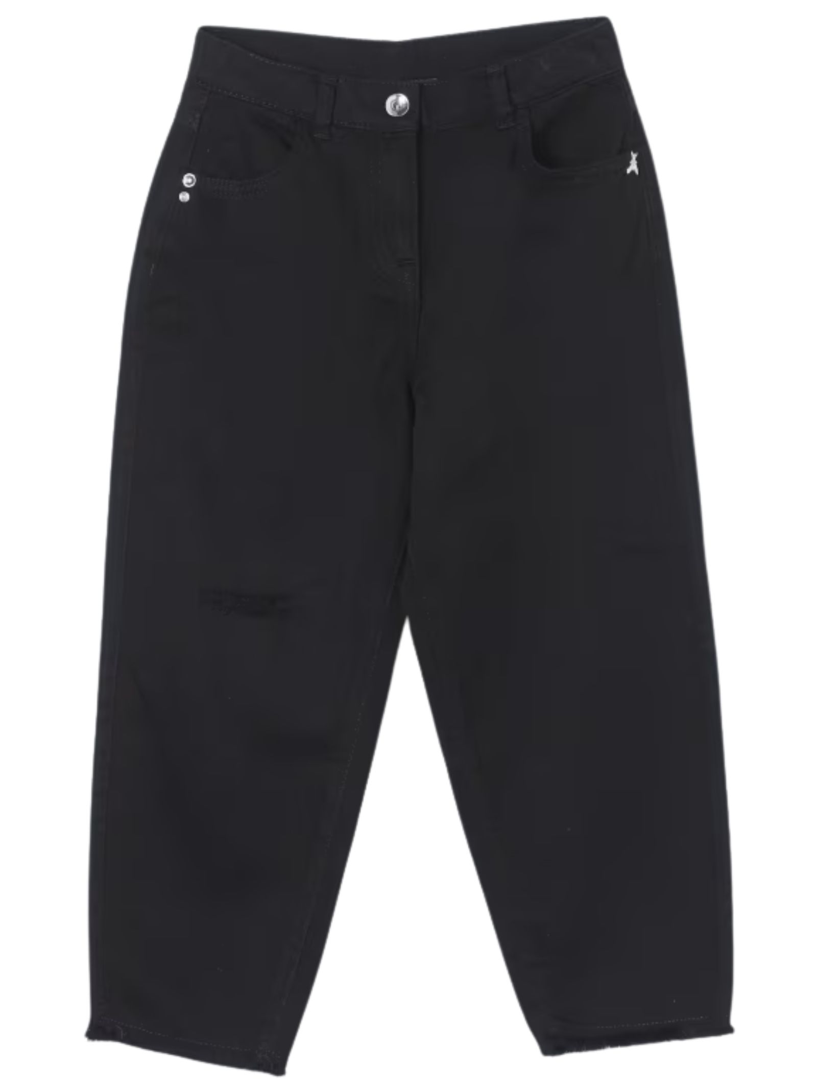Patrizia Pepe Kids jeans dal lavaggio nero, vita regolabile all'interno, chiusura con bottone e zip, modello con 4 tasche, orli sfrangiati, logo frontale, design gamba ampia. Composizione: 100% cotone