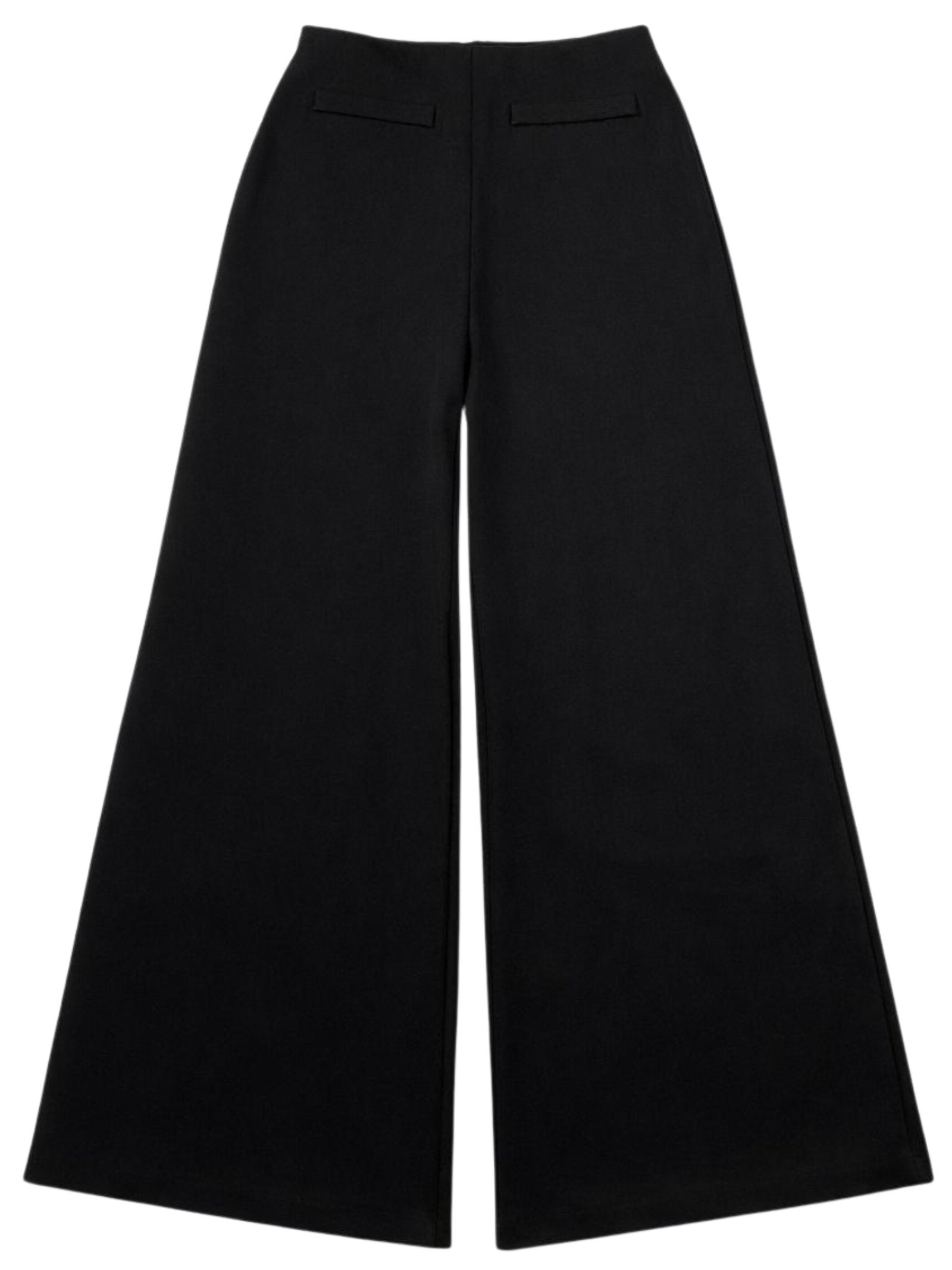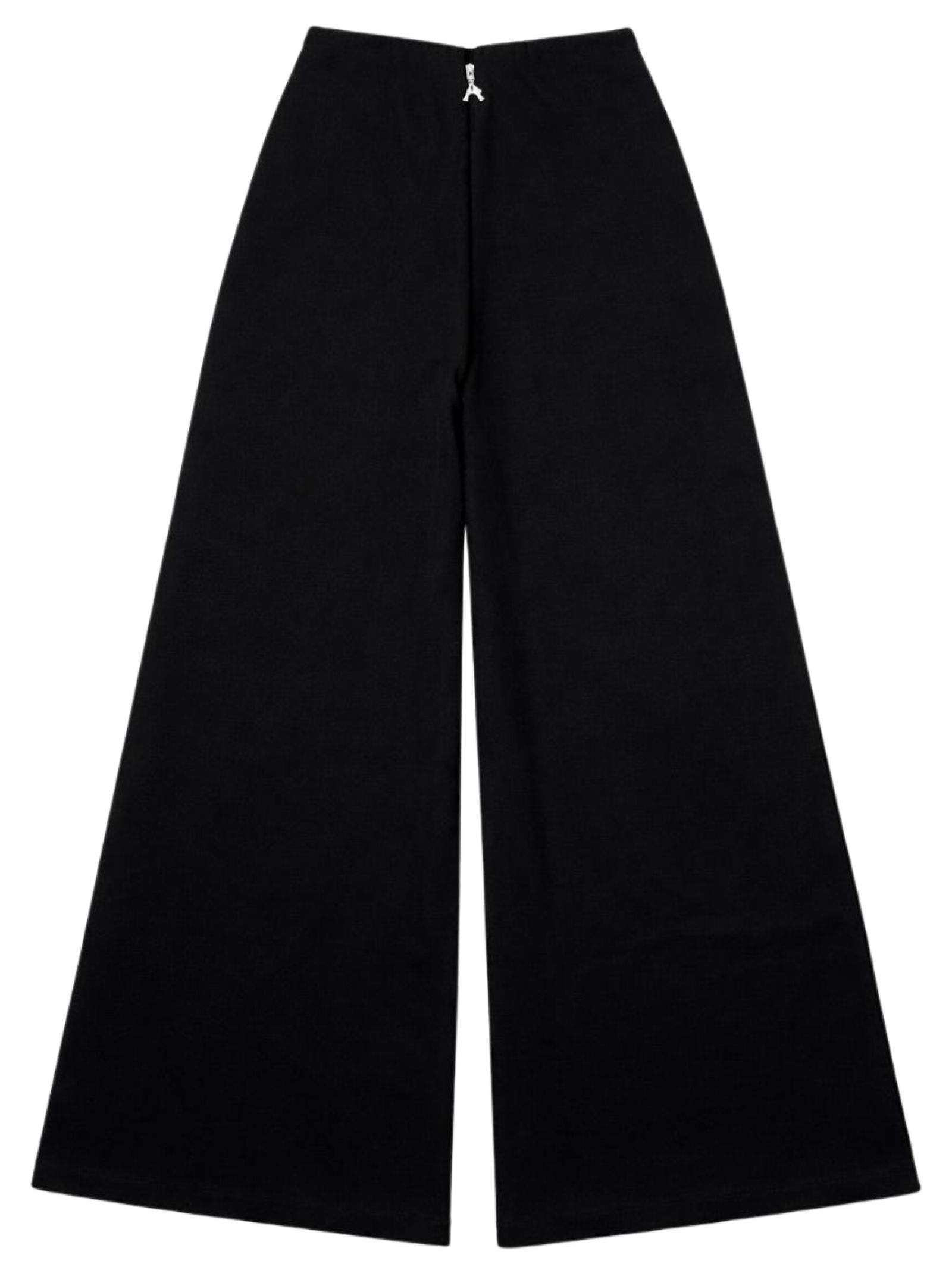 Patrizia Pepe Kids pantalone di colore nero, modello con elastico in vita, zip centrale con logo, taglio svasato, vestibilità ampia. Composizione: 65% viscosa 30% nylon 5% elastan. Made in Italy