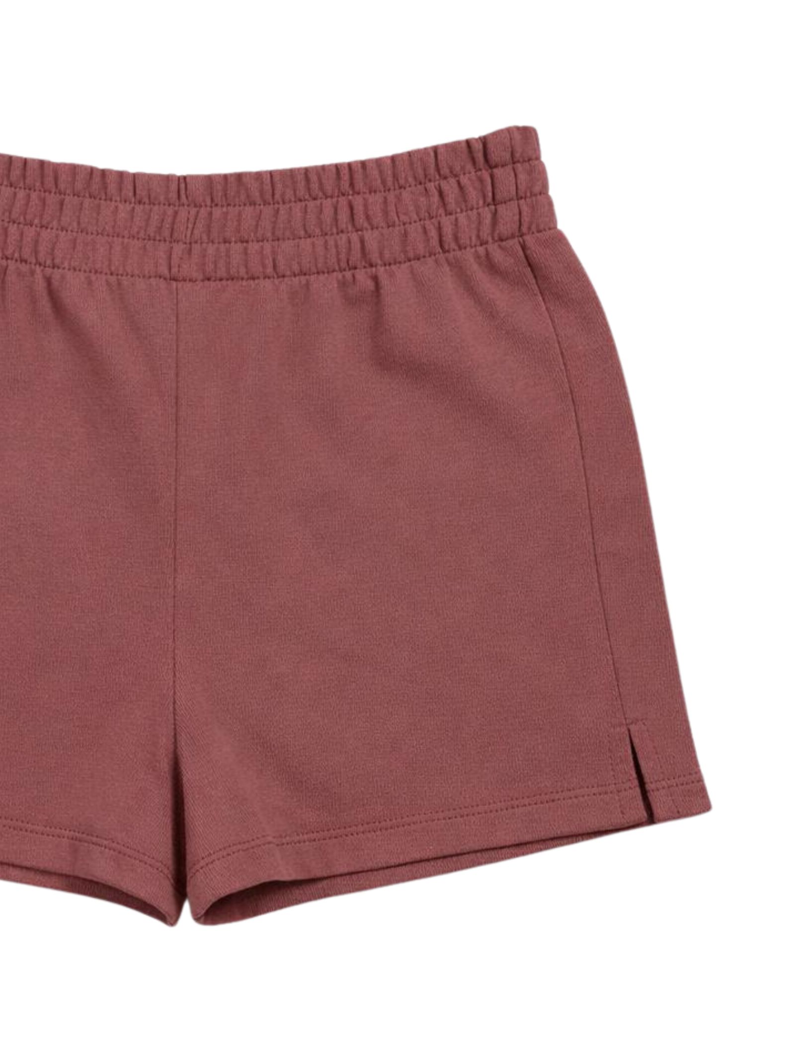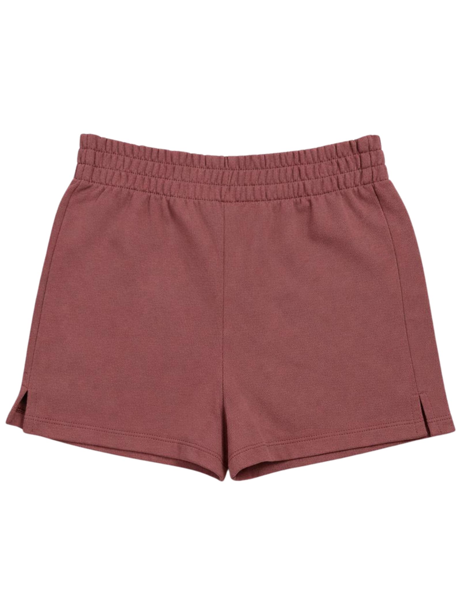Patrizia Pepe Kids shorts di colore rosa antico, vita con elastico, design corto, spacchetti laterali, vestibilità regolare. Composizione: 100% cotone. Made in Italy