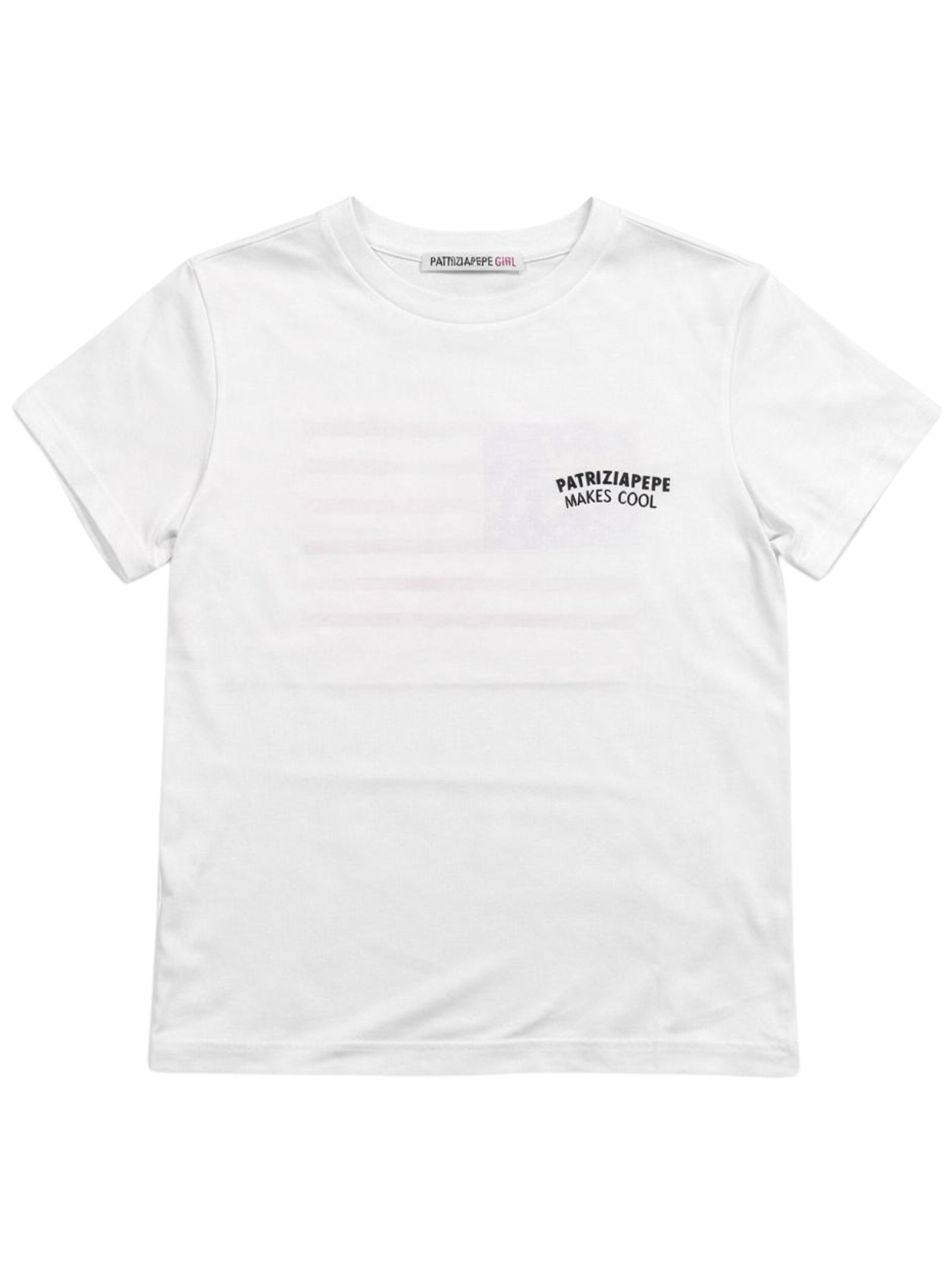 Patrizia Pepe Kids t-shirt di colore bianco, modello girocollo, mezza manica, stampa su entrambi i lati con logo a contrasto, vestibilità regolare. Composizione: 100% cotone