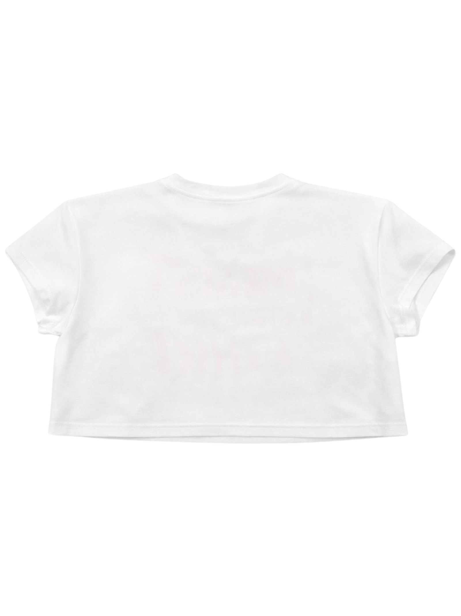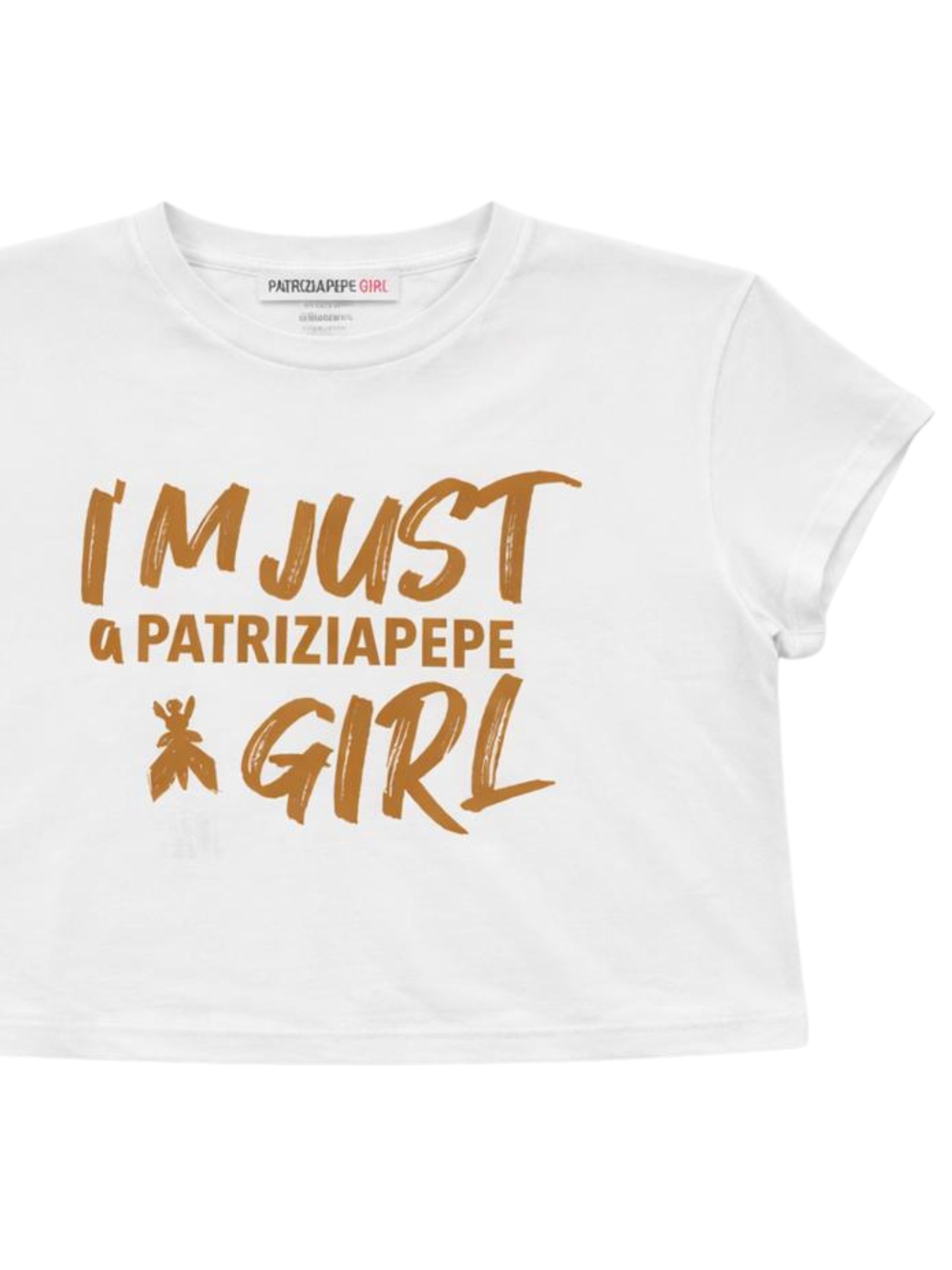 Patrizia Pepe Kids t-shirt di colore bianco, modello corto, girocollo, mezza manica, caratterizzata da stampa centrale con logo a contrasto beige, vestibilità regolare. Composizione: 95% Cotone 5% Elastan. Made in Italy