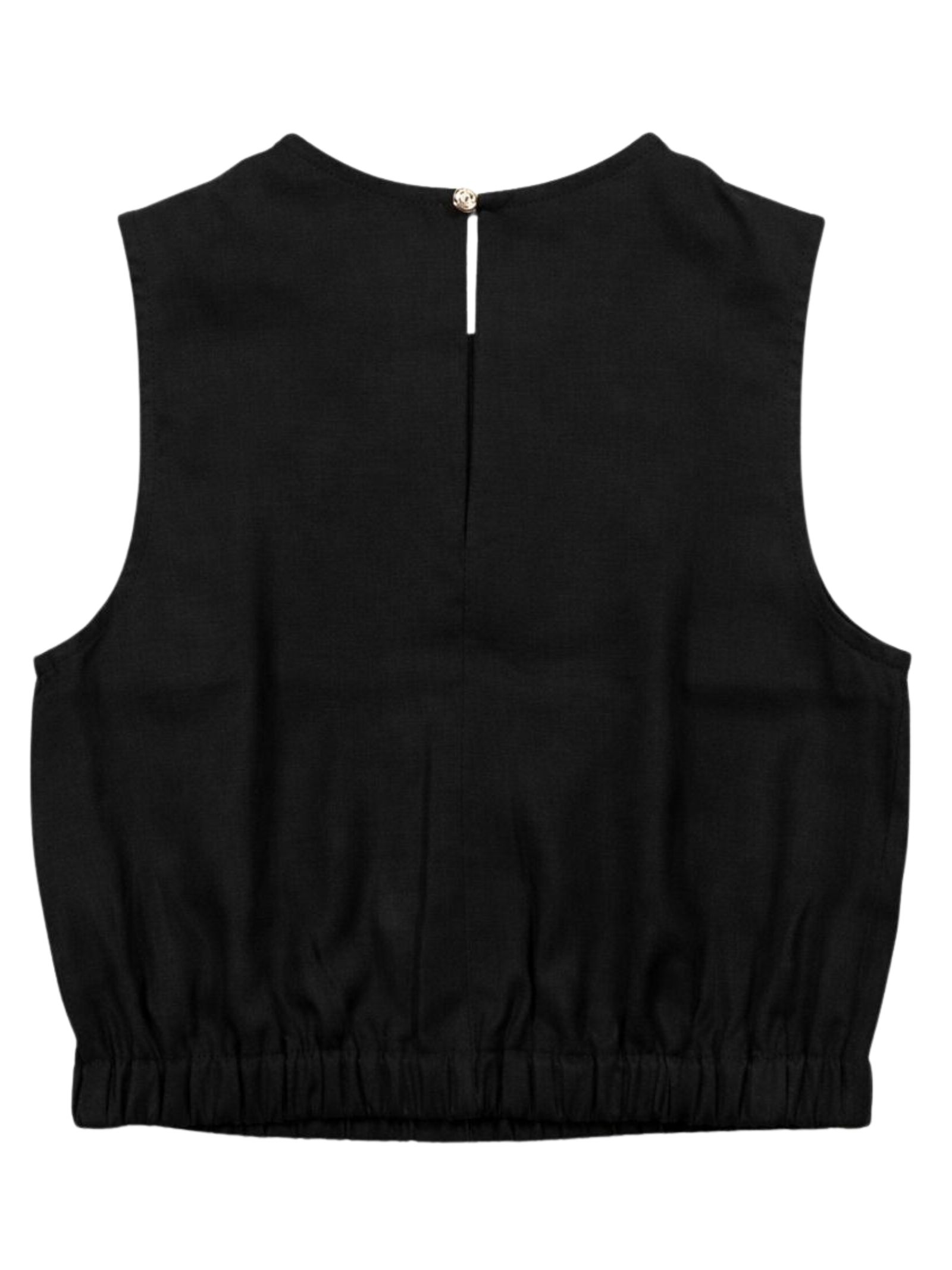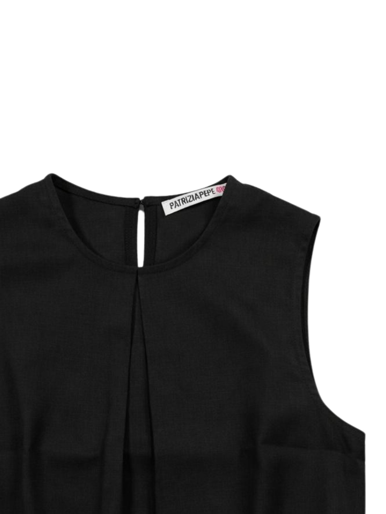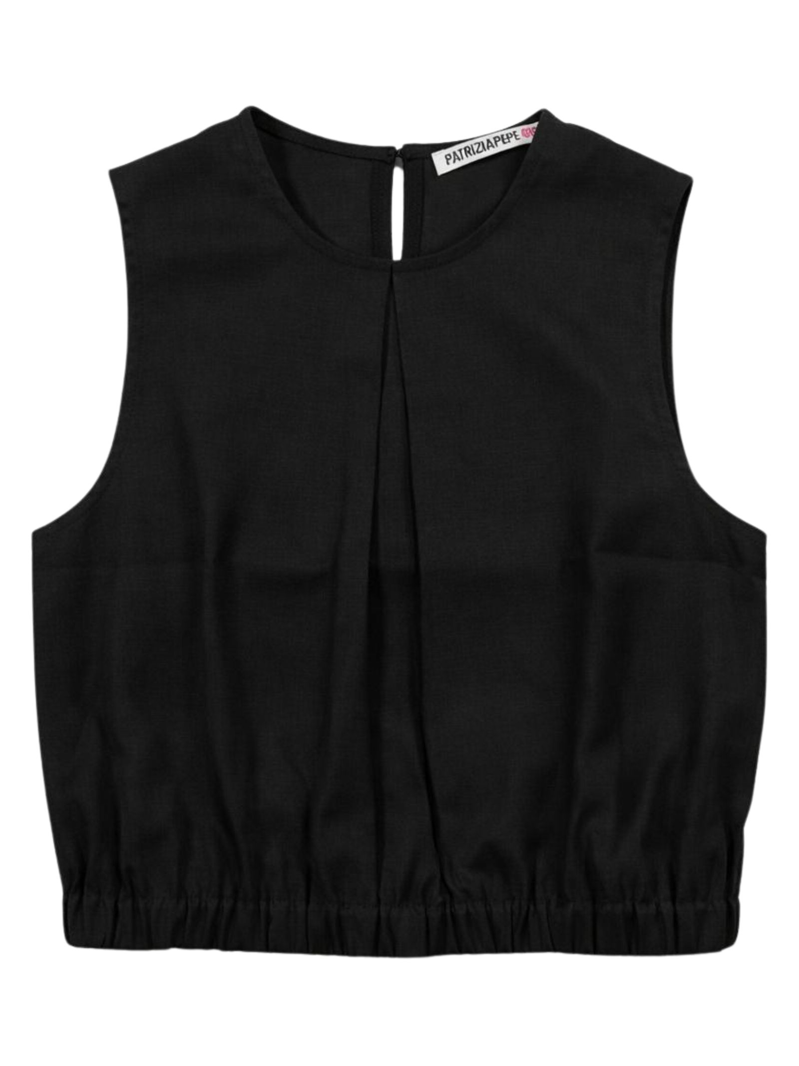 Patrizia Pepe Kids top di colore nero, design corto, smanicato, bottone sul retro, orlo con elastico, vestibilità regolare. Composizione: 55% viscosa 45% lino