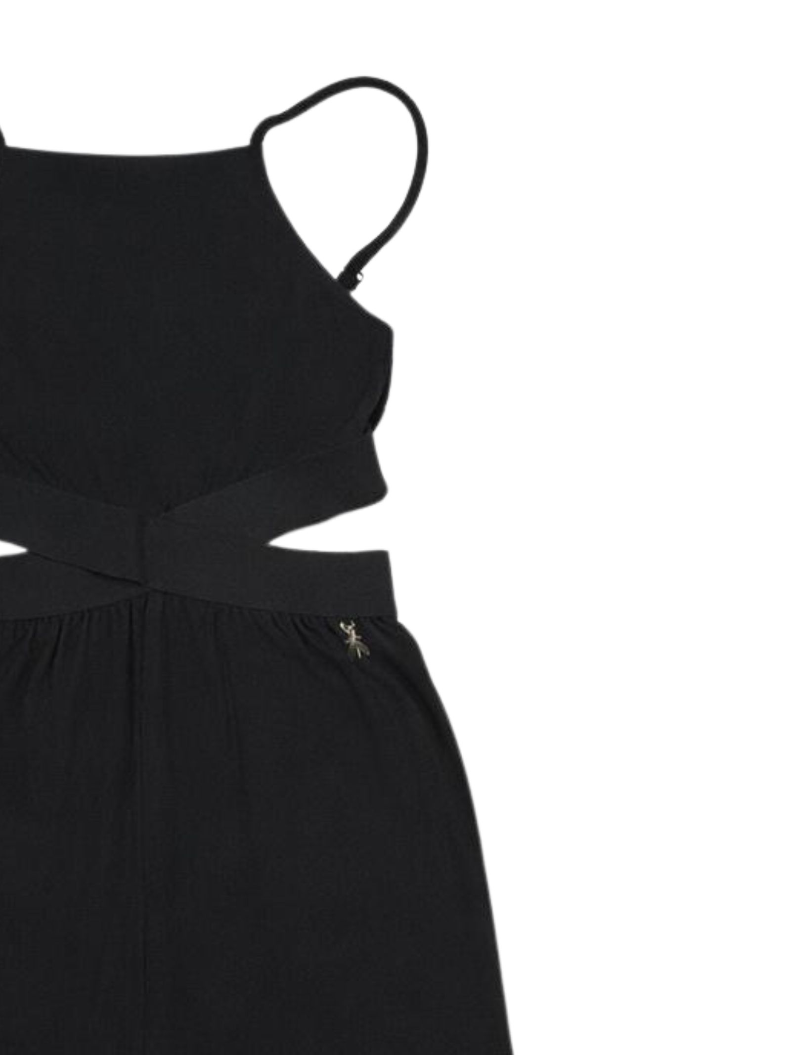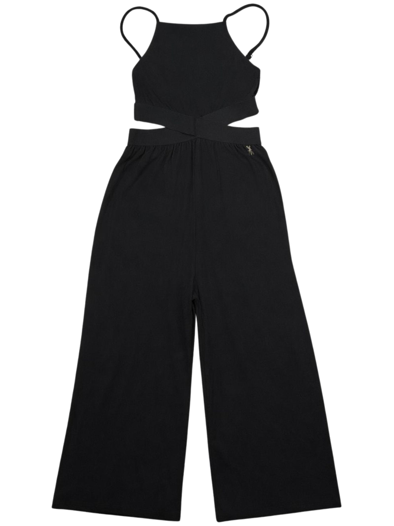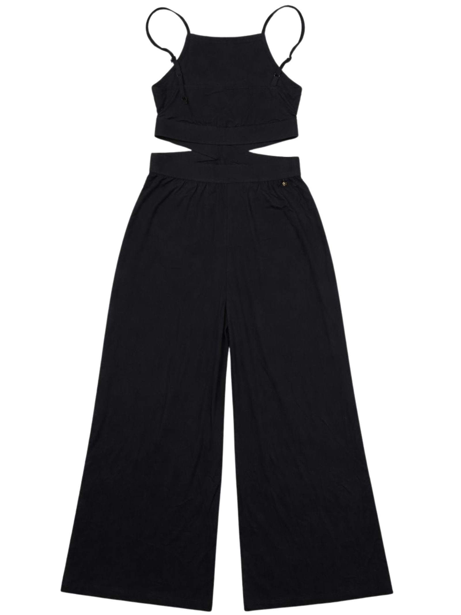 Patrizia Pepe Kids abito design tuta di colore nero, modello con top, dettaglio cut-out, bretelle, schiena scoperta, vestibilità aderente con gamba ampia. Composizione: 95% Viscosa 5% Elastan