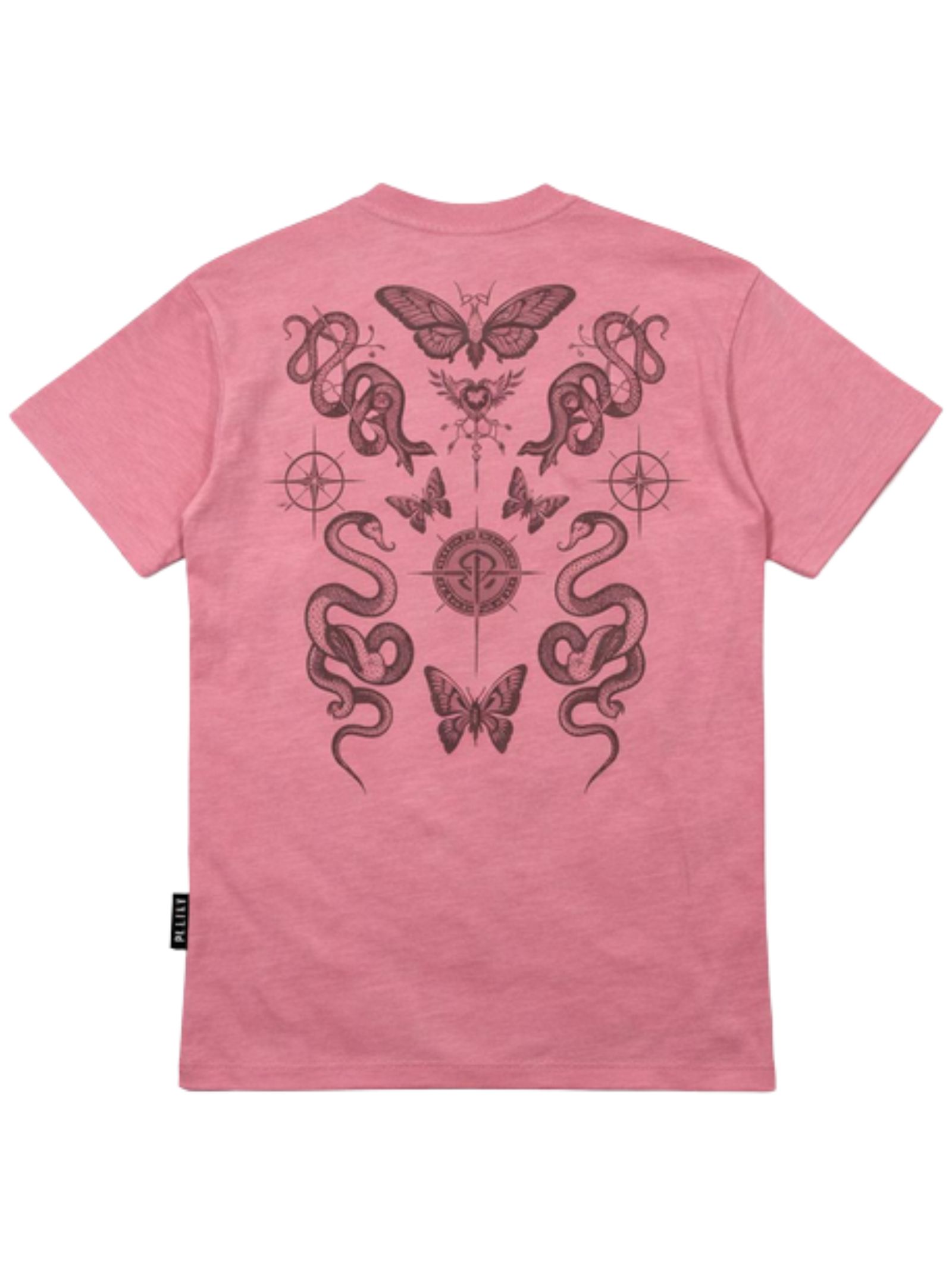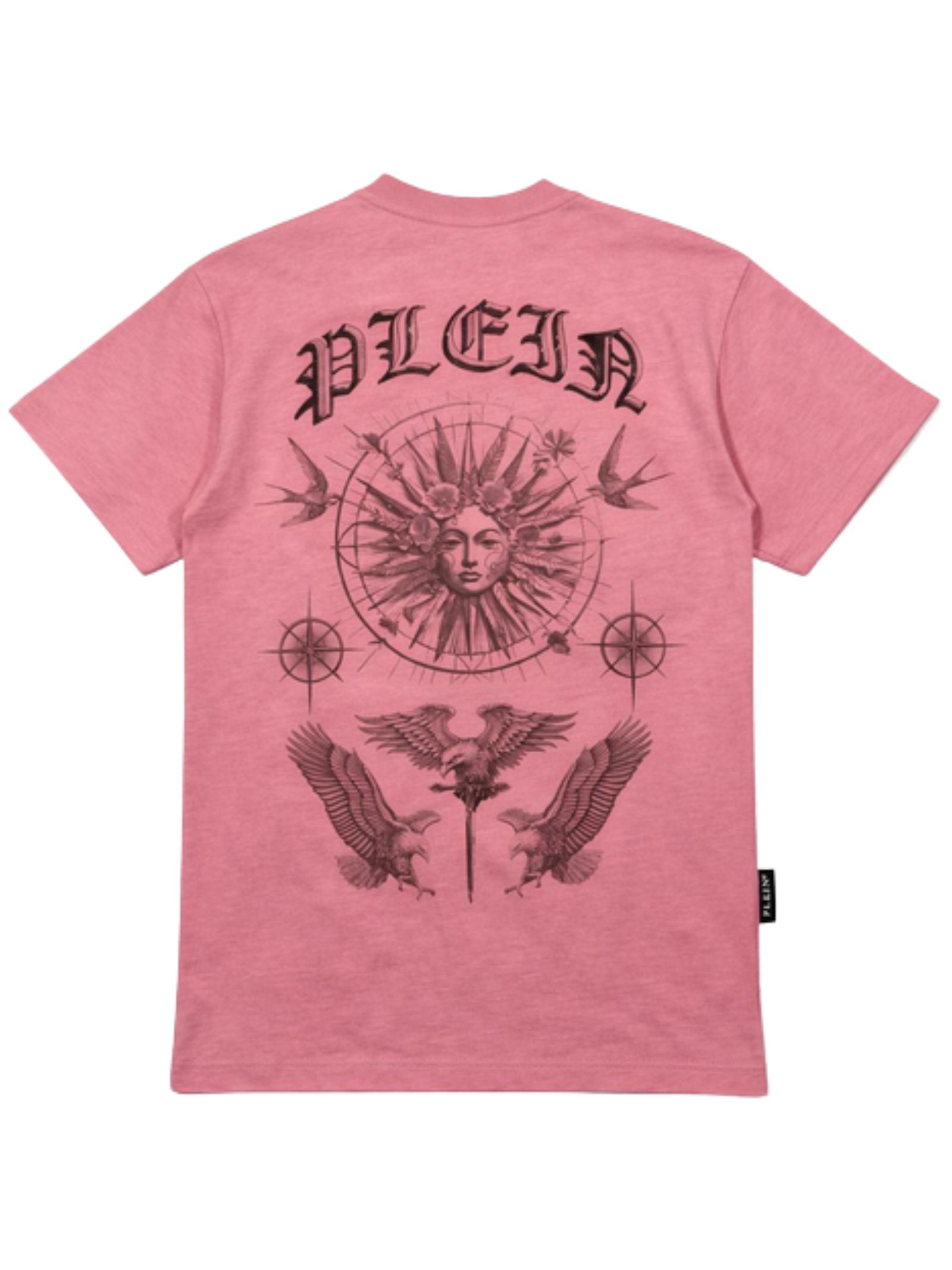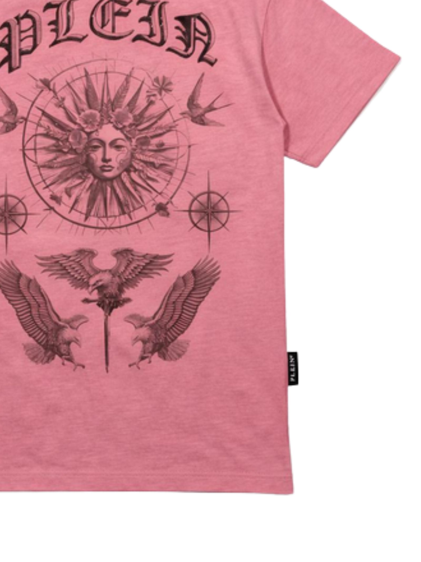 Philipp Plein Kids abito di colore rosa, stampa a contrasto sul fronte con logo in strass, modello girocollo, mezza manica, orlo dritto, vestibilità regolare. Composizione: 100% cotone. Made in Italy
