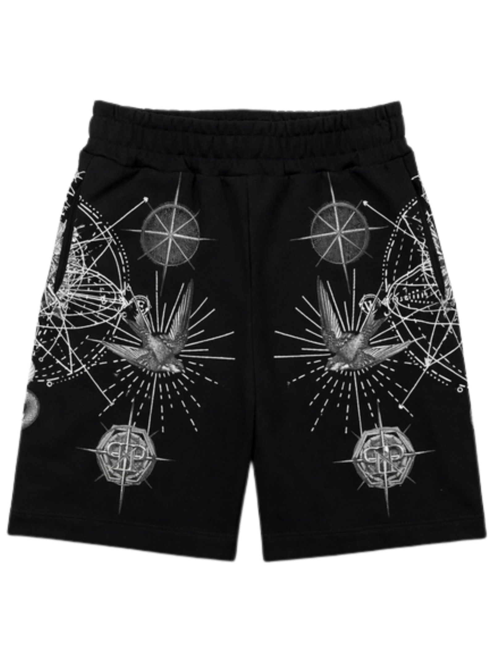 Philipp Plein Kids bermuda di colore nero, stampa a contrasto su tutta la superficie, modello con elastico in vita, due tasche laterali, vestibilità regolare. Composizione: 100% cotone. Made in Italy