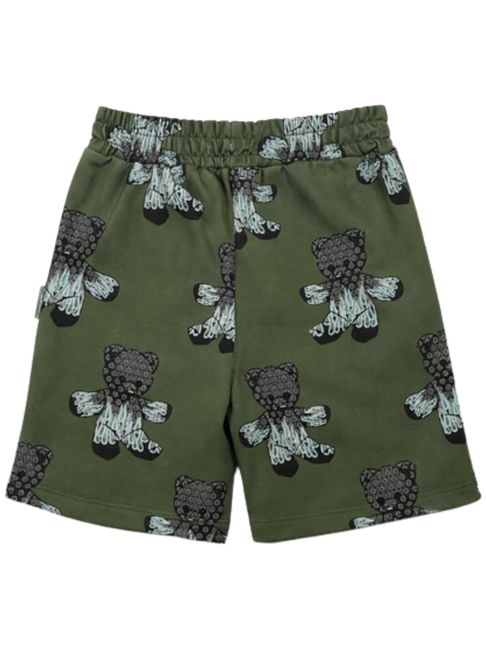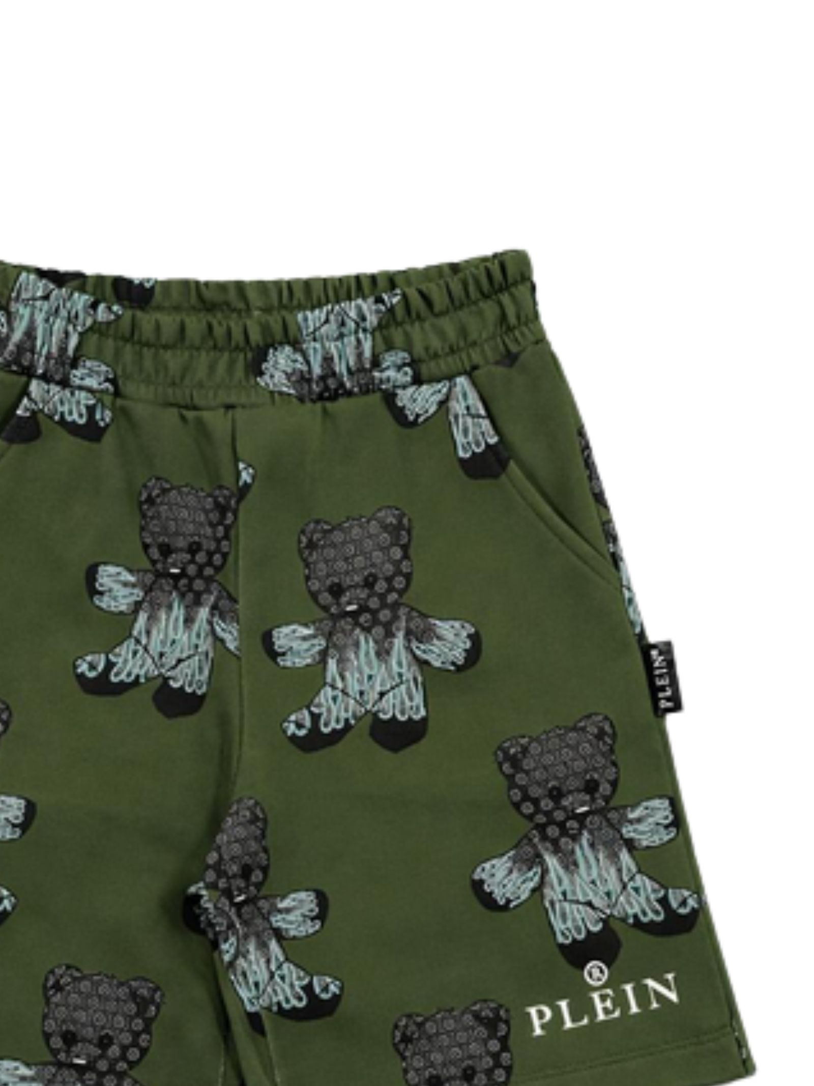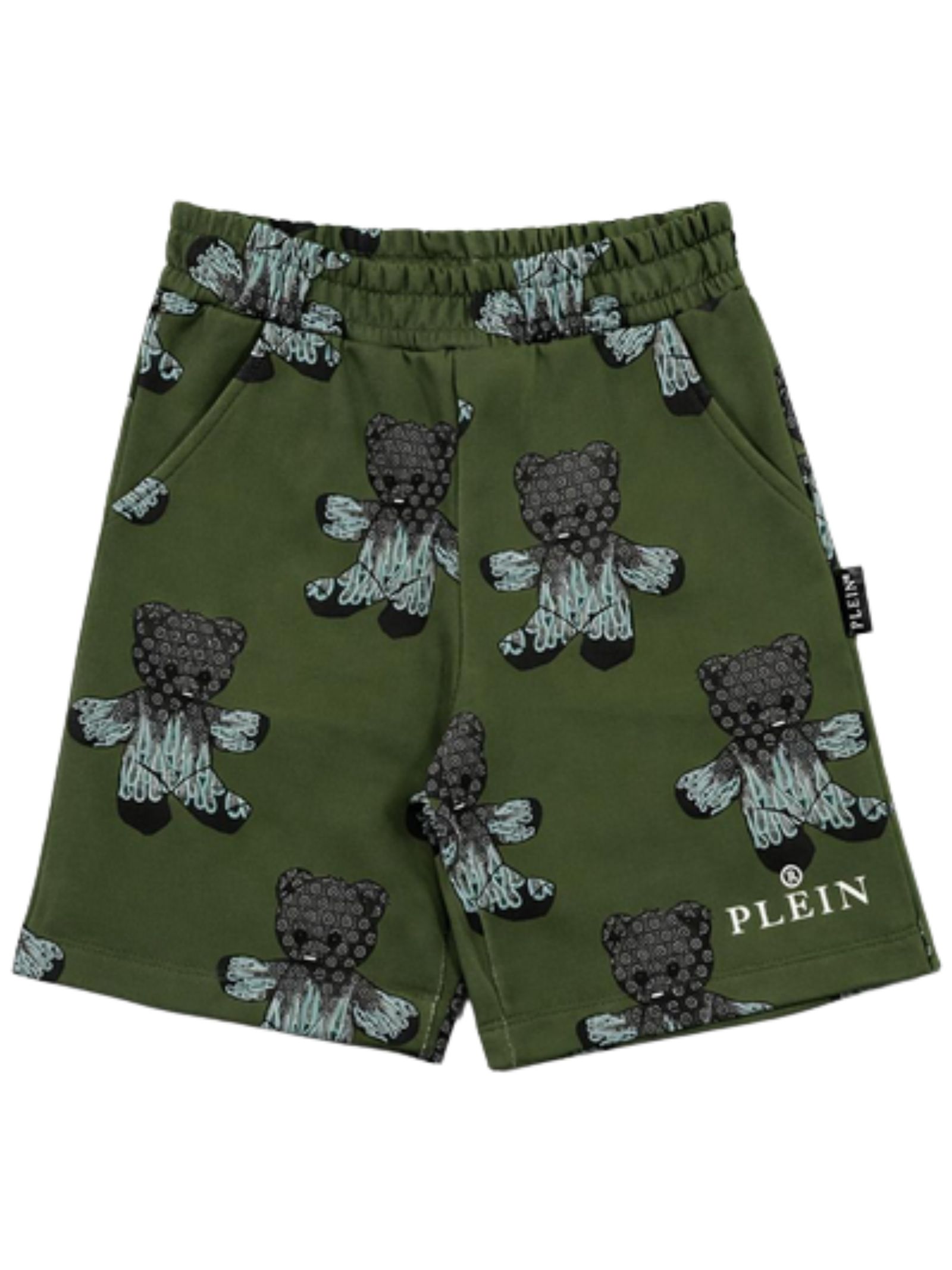 Philipp Plein Kids bermuda di colore verde, stampa a contrasto all-over, modello con elastico in vita, due tasche laterali, vestibilità regolare. Composizione: 100% cotone. Made in Italy