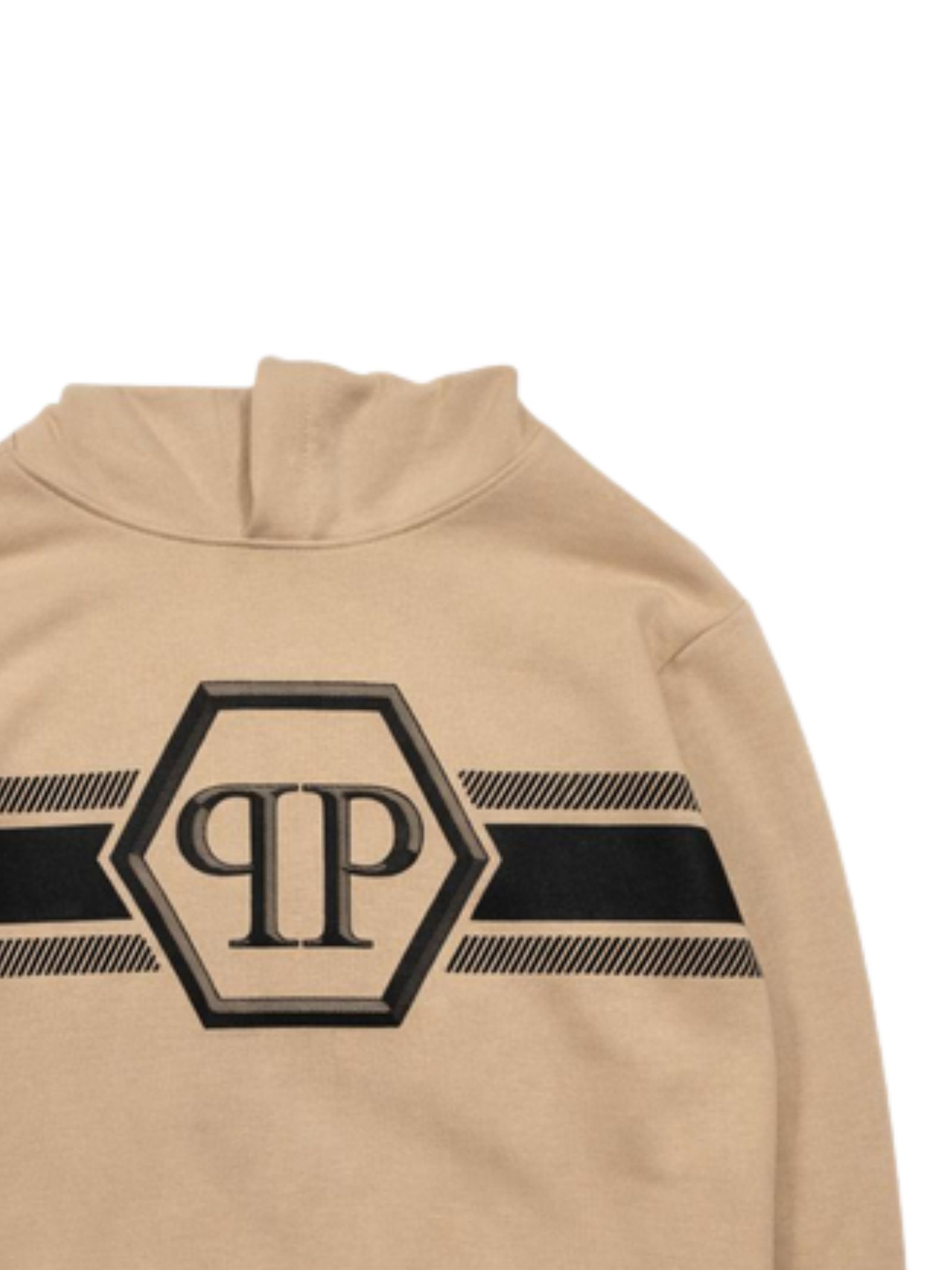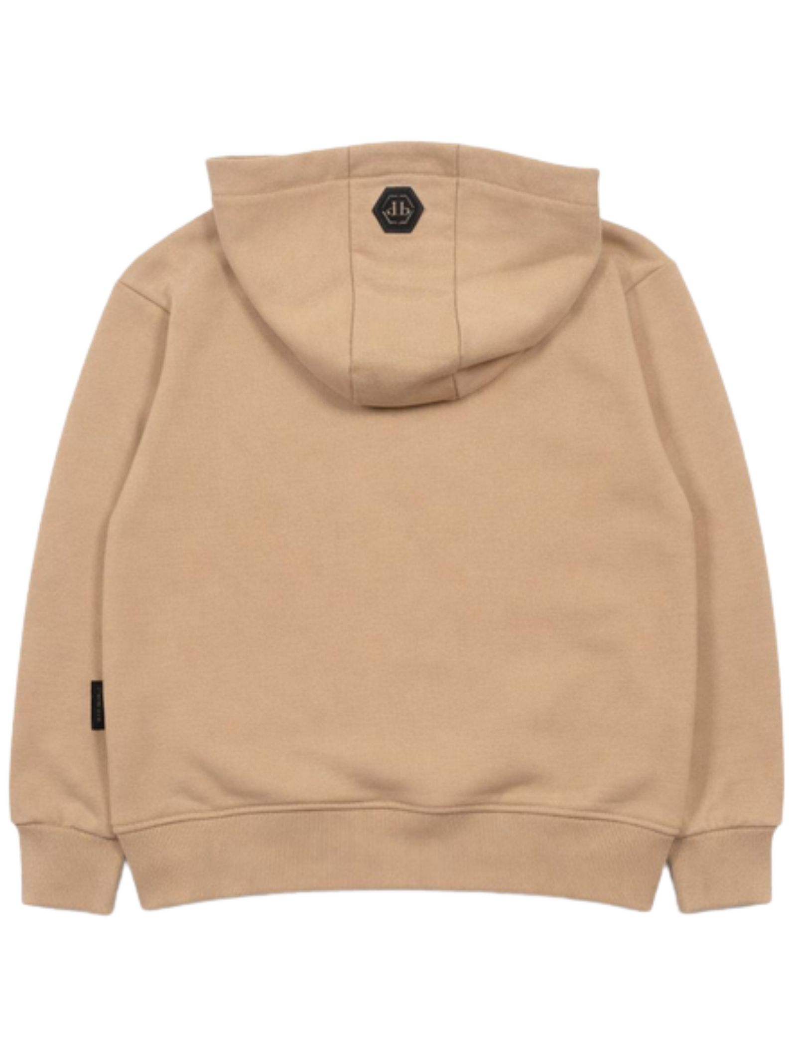 Philipp Plein Kids felpa di colore beige, modello con cappuccio, maniche lunghe, stampa logo a contrasto sul fronte, dettaglio patch con logo sul cappuccio, vestibilità regolare, orli a costine, fondo dritto. Composizione: 100% cotone