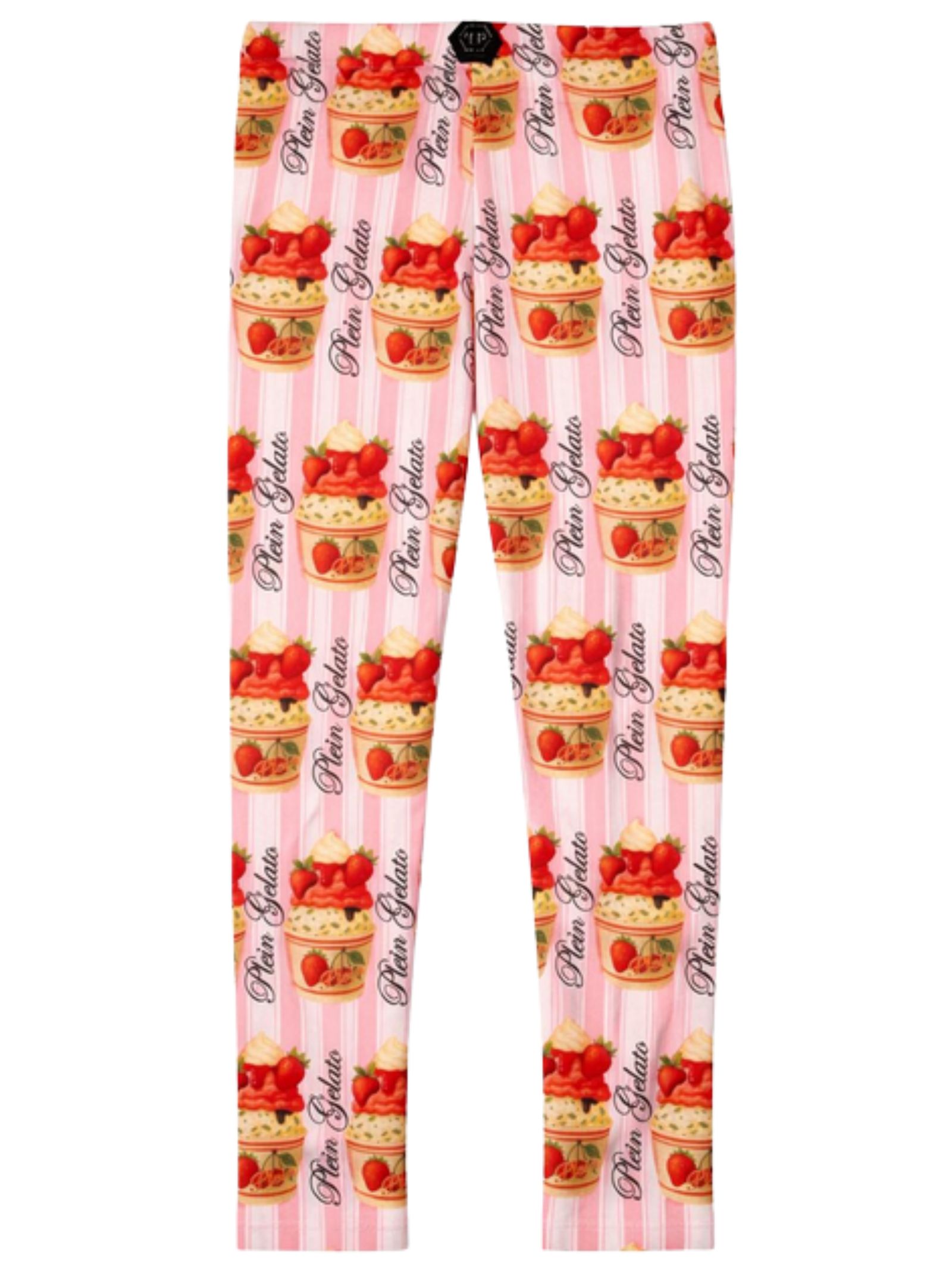 Philipp Plein Kids leggins di colore rosa in fantasia multicolor su tutta la superficie, design aderente, modello con elastico in vita, patch con logo a contrasto sul retro. Composizione: 96% cotone 4% elastan. Made in Italy