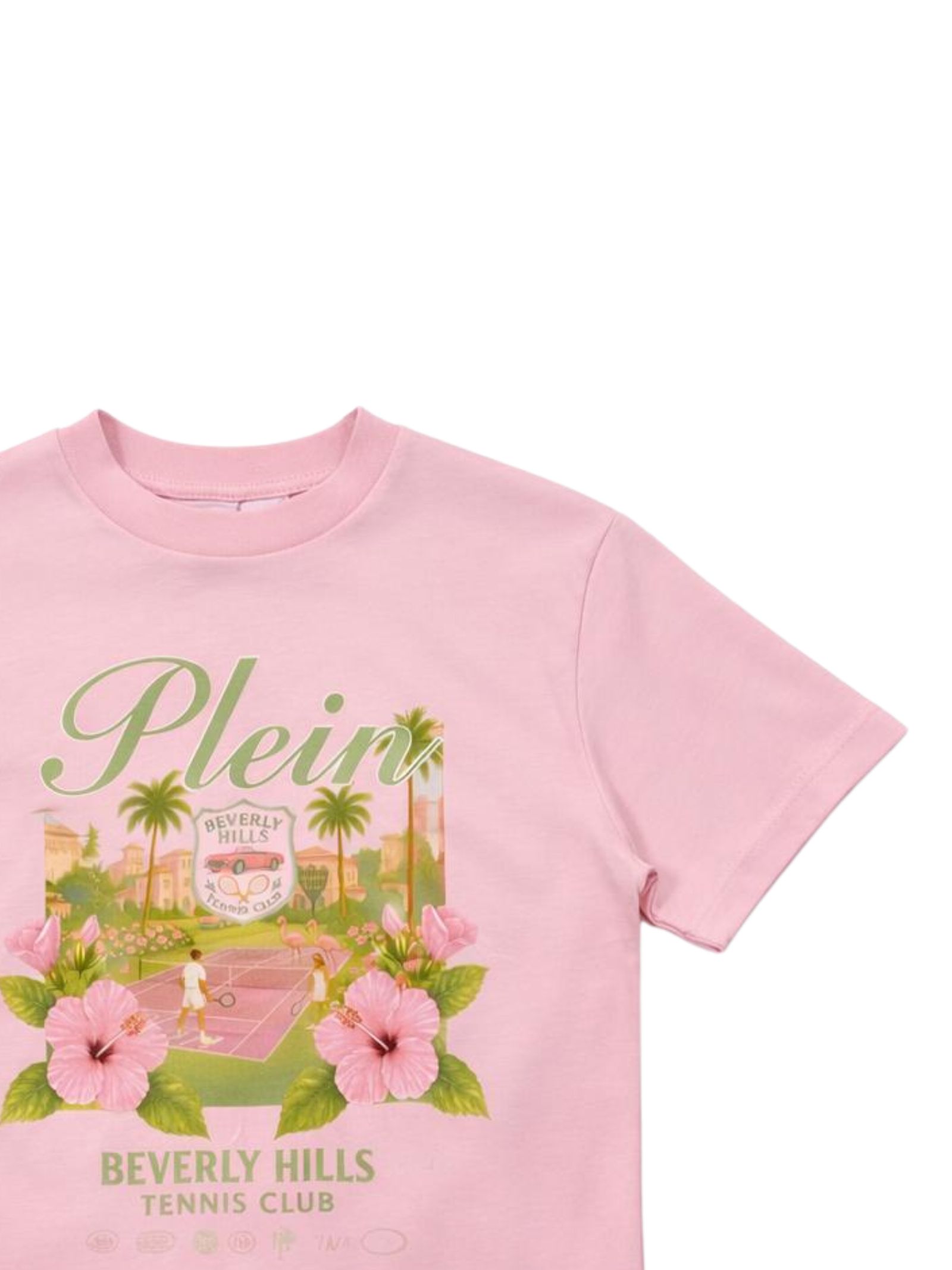 Philipp Plein Kids t-shirt di colore rosa, stampa a contrasto multicolor sul fronte con logo, modello girocollo, mezza manica, orlo dritto, vestibilità regolare. Composizione: 100% cotone. Made in Italy