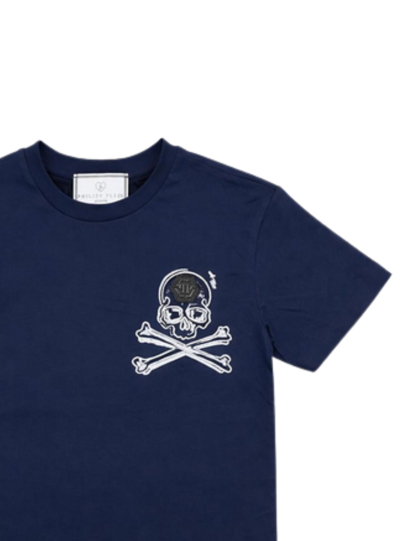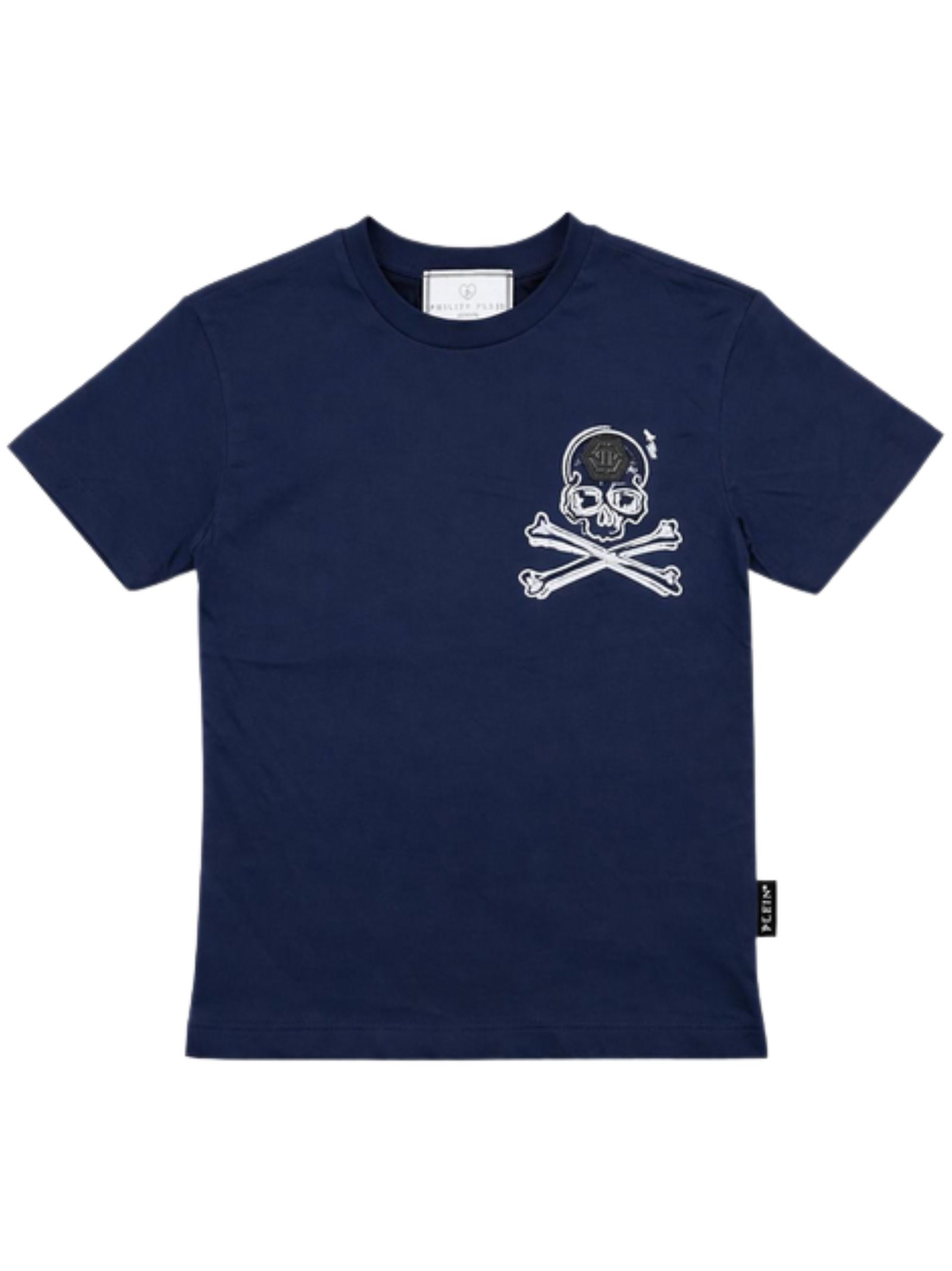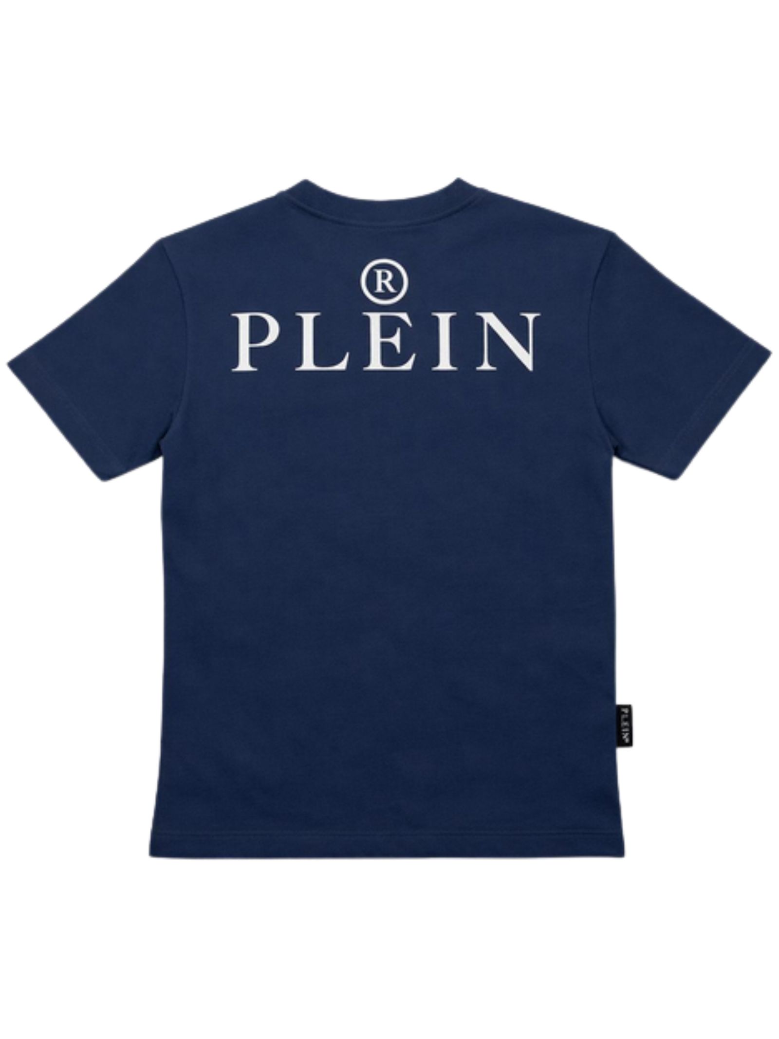 Philipp Plein Kids t-shirt di colore blu, dettagli a contrasto bianco, modello girocollo, mezza manica, orlo dritto, vestibilità regolare. Composizione: 100% cotone. Made in Italy