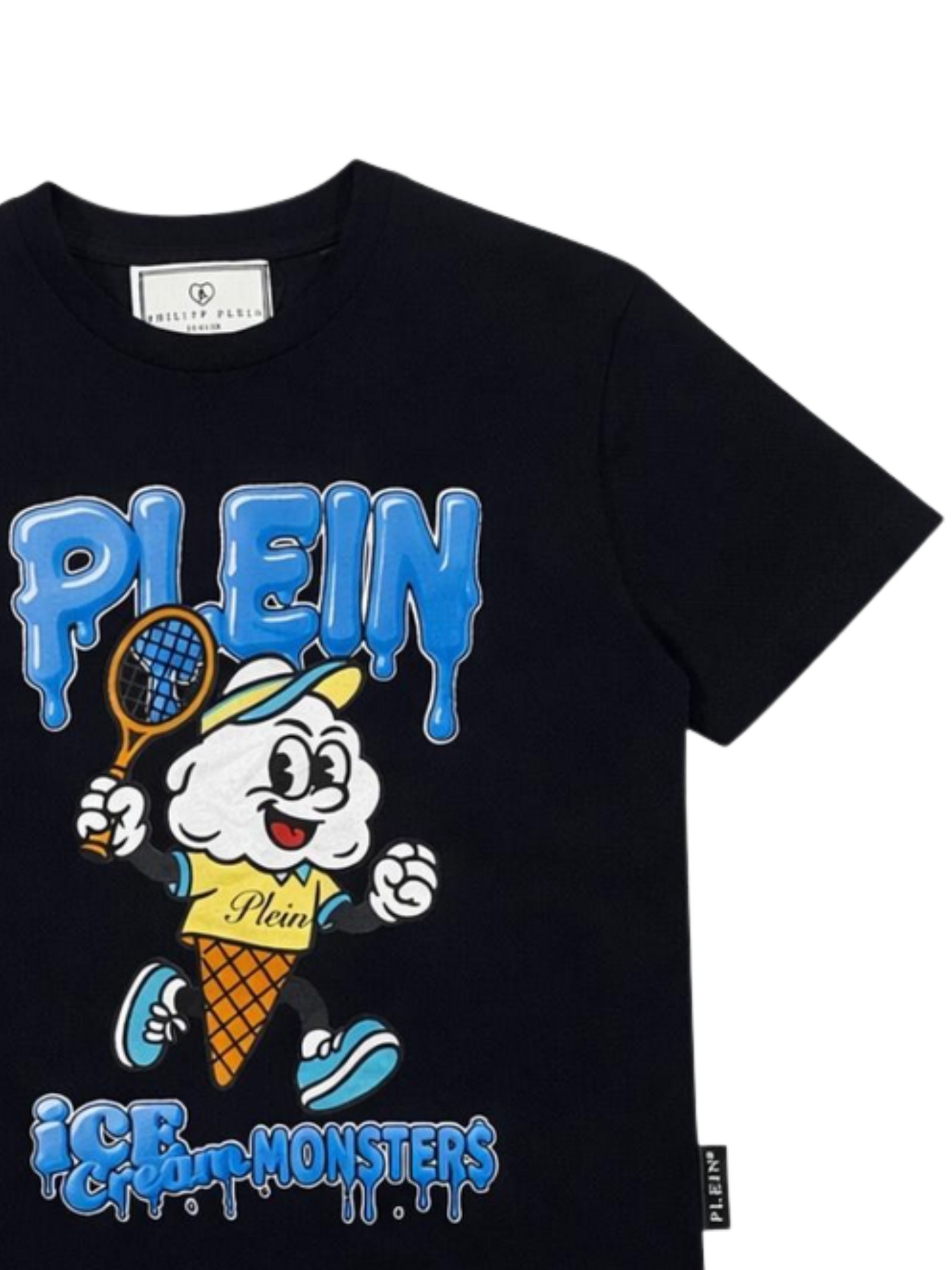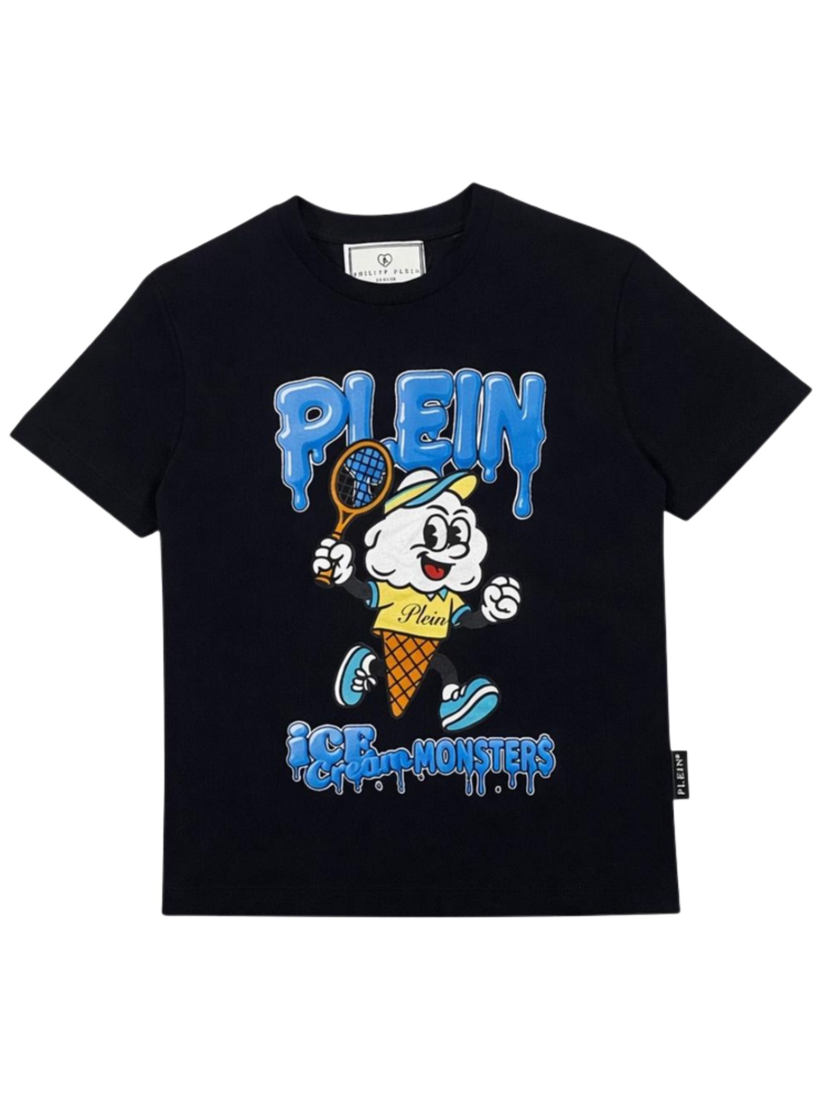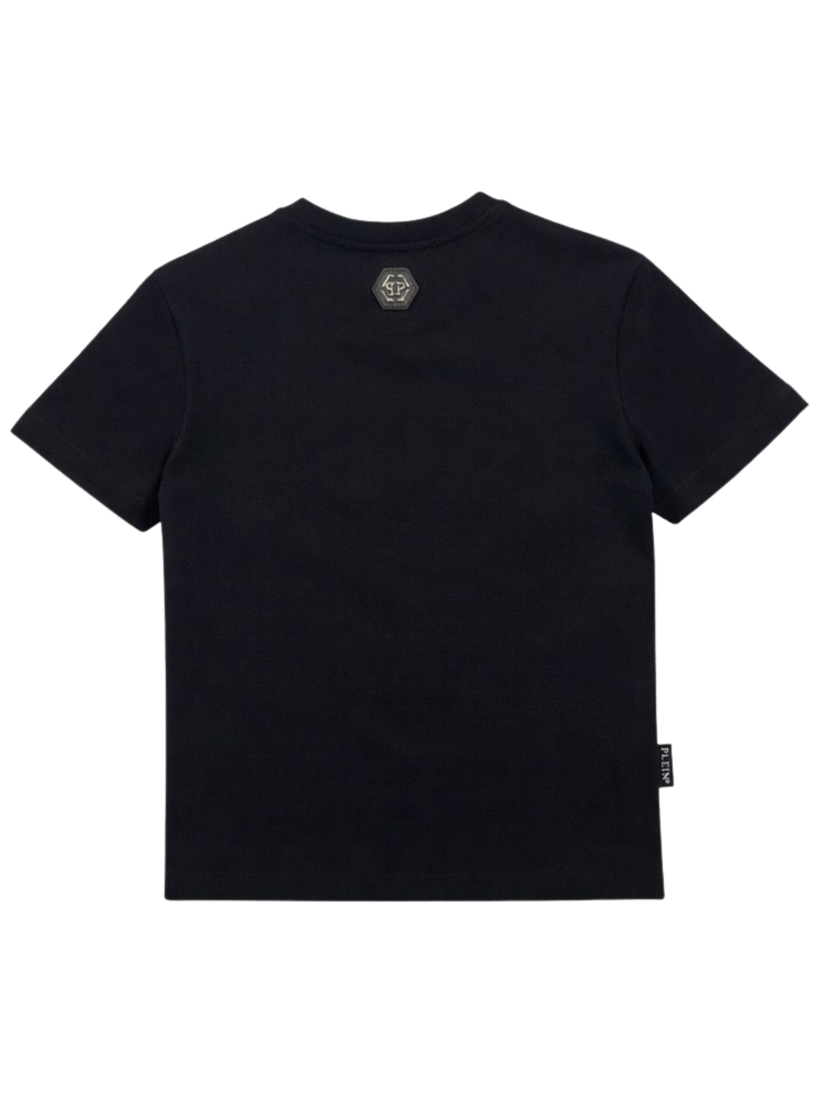 Philipp Plein Kids t-shirt di colore nero, stampa a contrasto multicolor sul fronte con logo, modello girocollo, mezza manica, orlo dritto, vestibilità regolare. Composizione: 100% cotone. Made in Italy