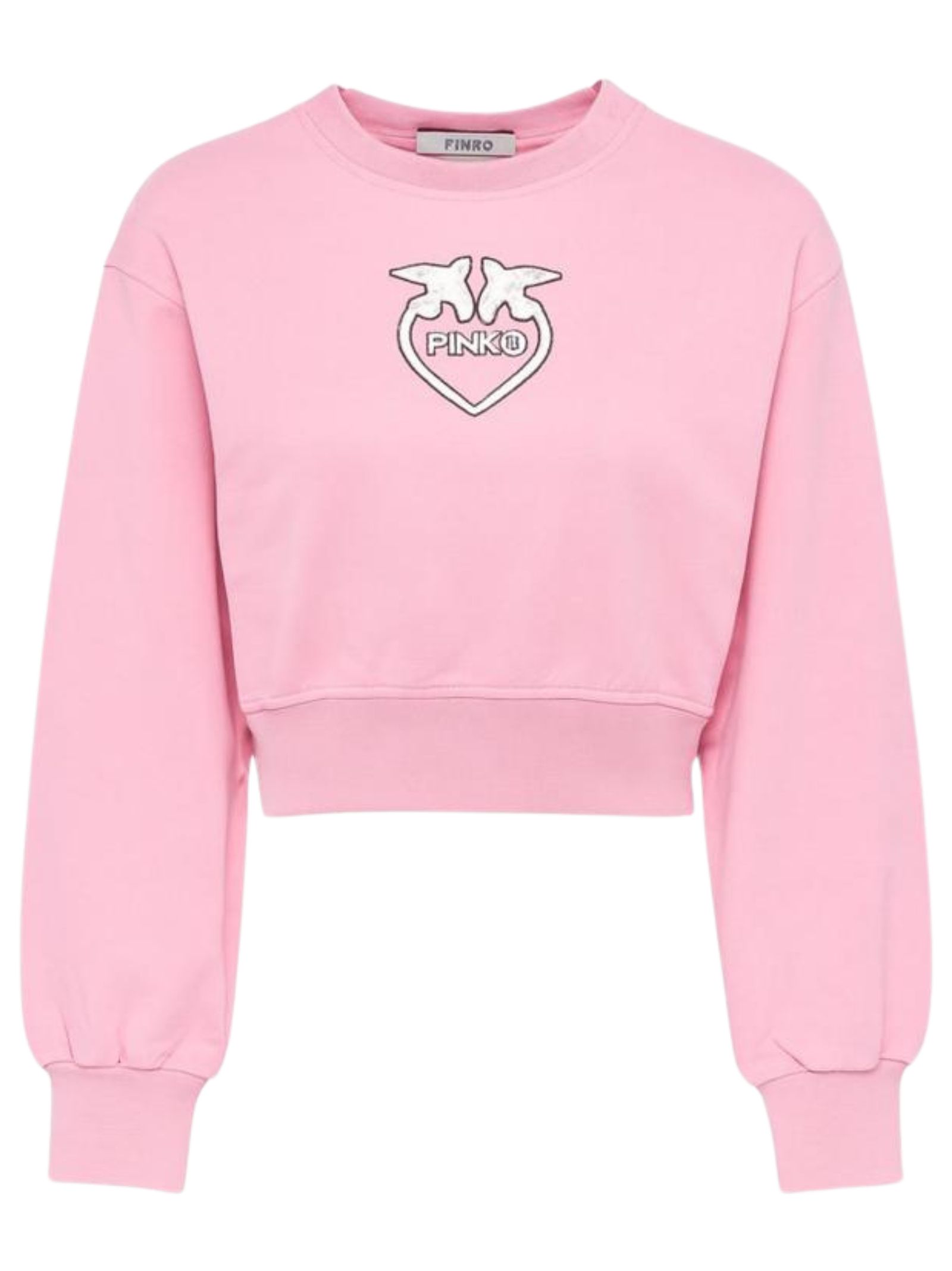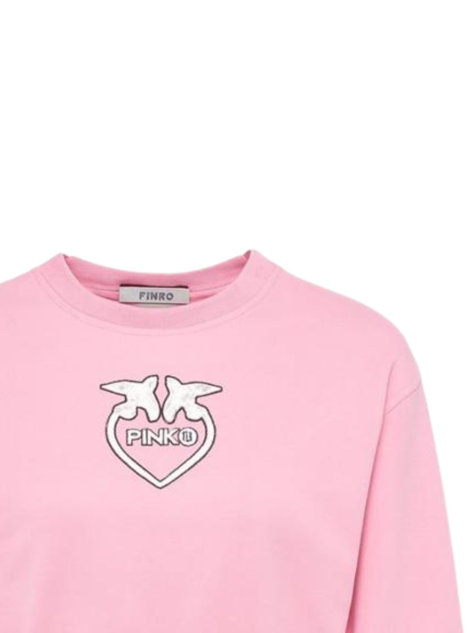 Pinko Kids felpa di colore rosa, ricamo logo centrale a contrasto bianco, modello girocollo, maniche lunghe, orli a costine, vestibilità regolare. Composizione: 95% cotone 5% elastan. Made in Italy