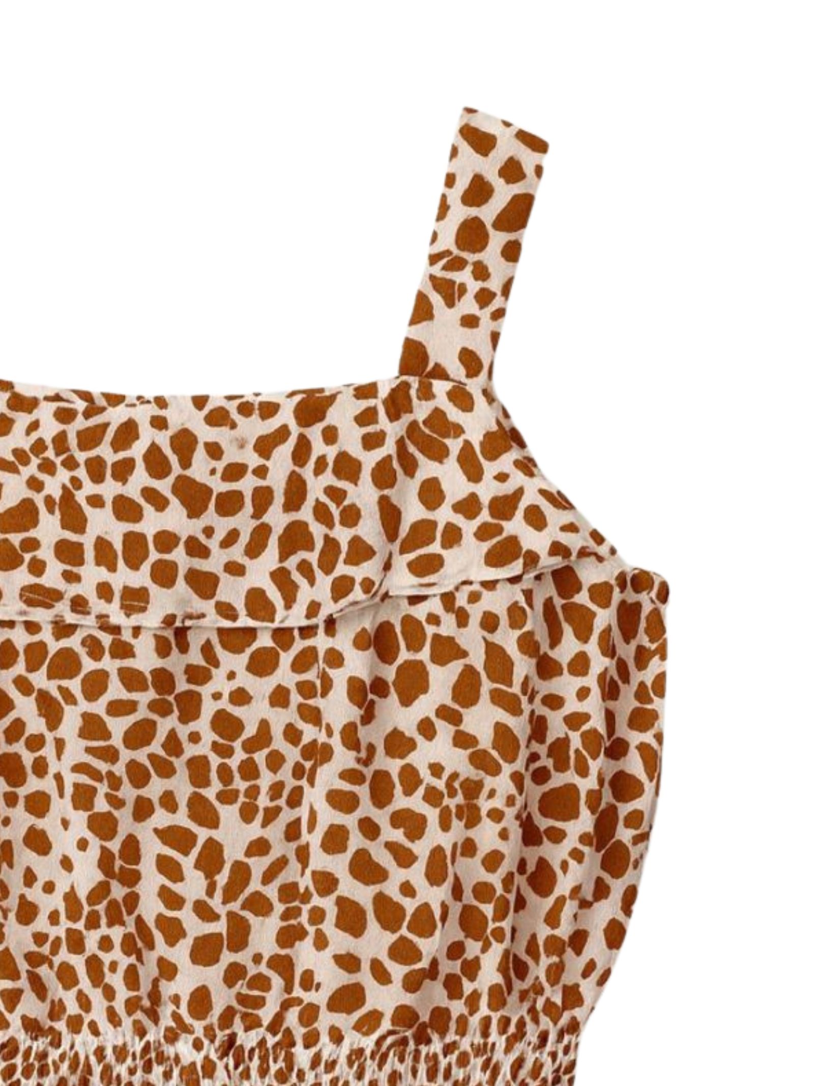 Please Kids canotta di colore bianco/beige, modello girocollo, bretelle, elastico in vita, orlo con volant. Composizione: 100% cotone. Made in Italy