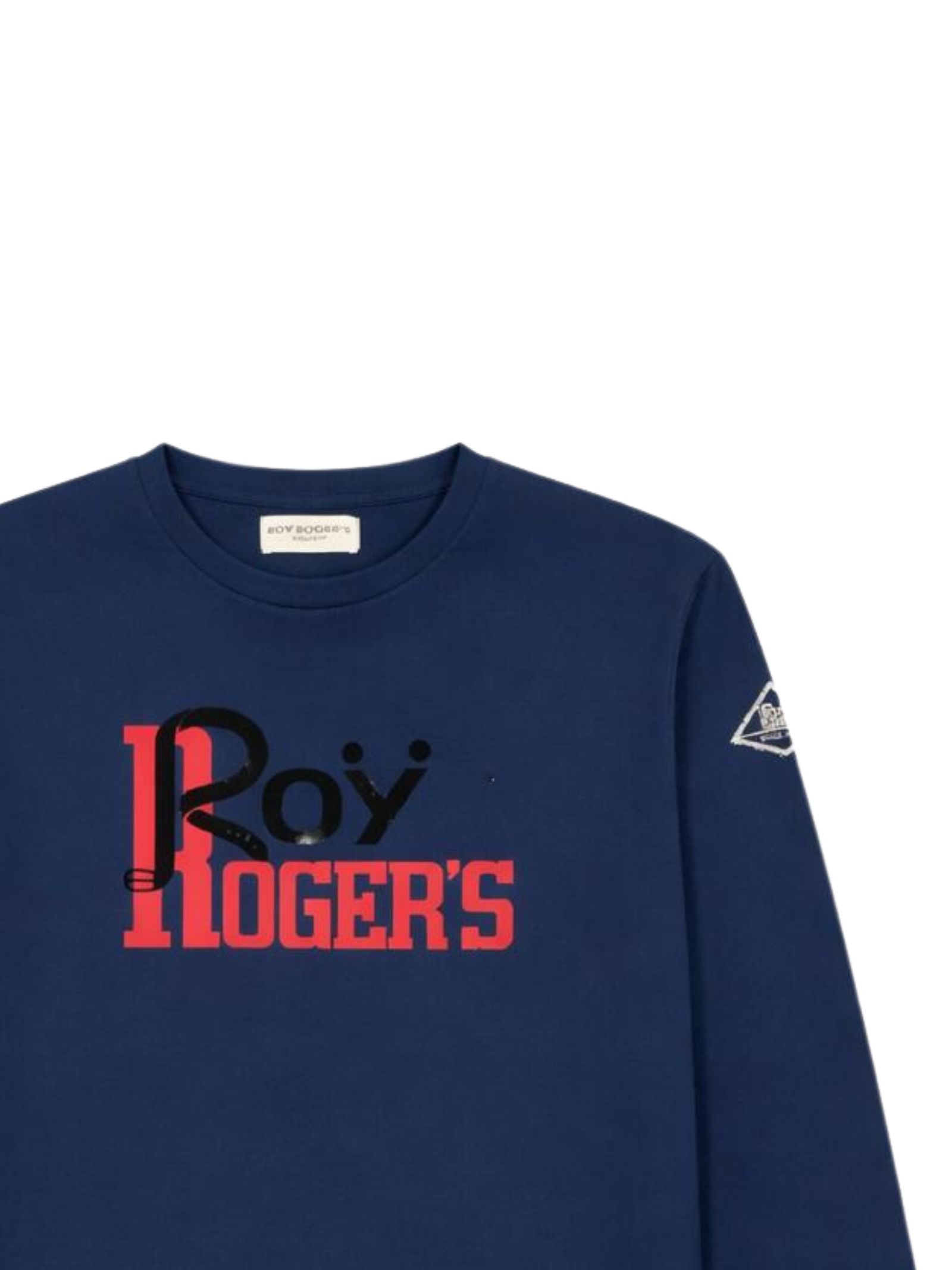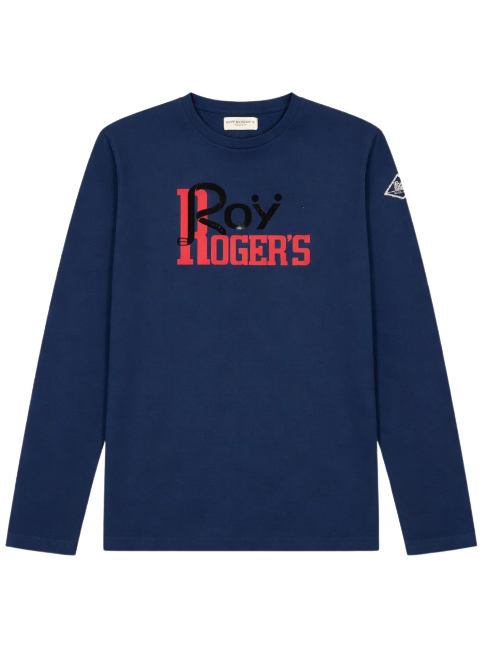 Roy Roger's Kids t-shirt di colore blu, modello girocollo, manica lunga, stampa logo centrale a contrasto, vestibilità regolare, orlo dritto. Composizione: 100% cotone
