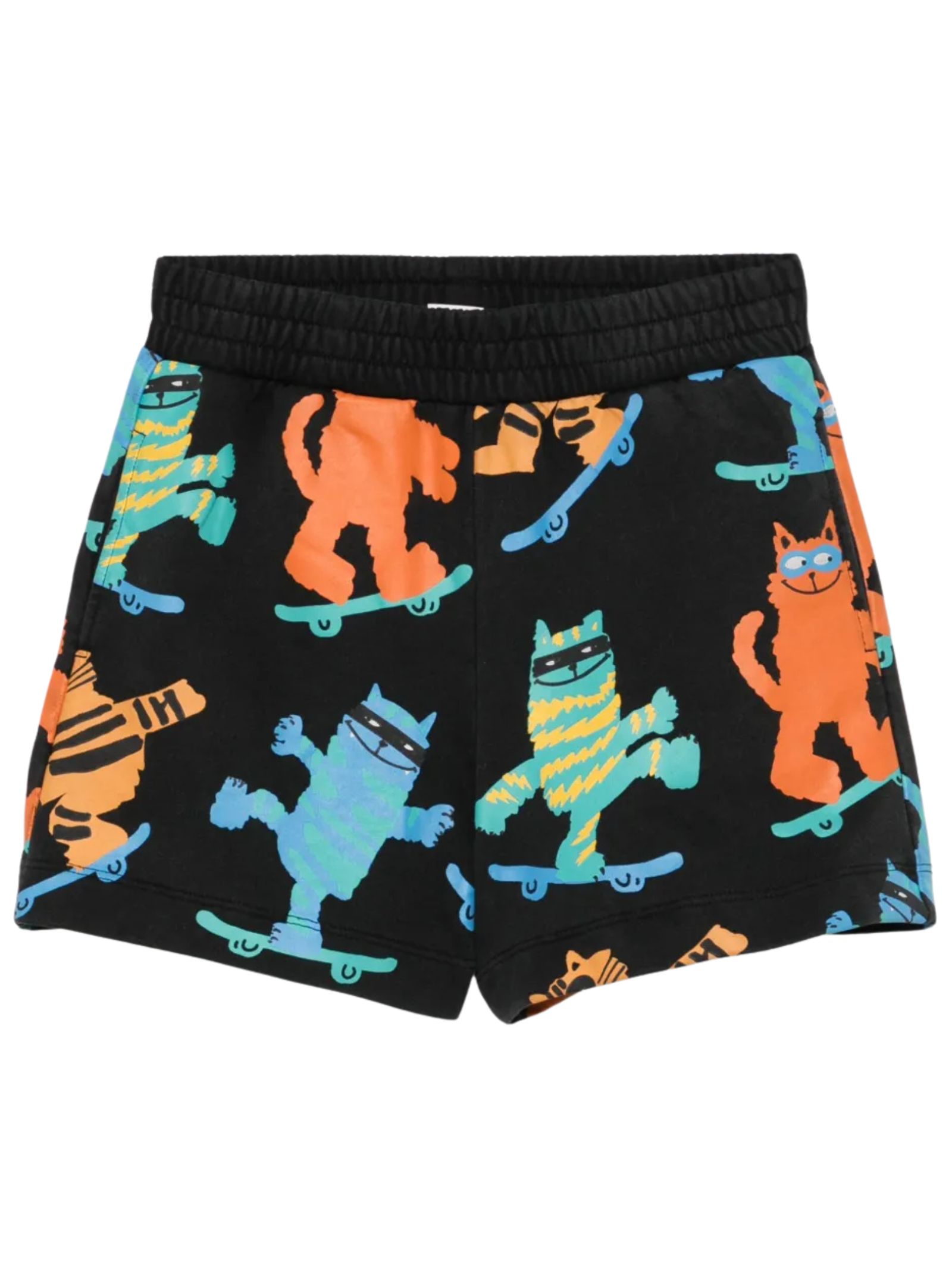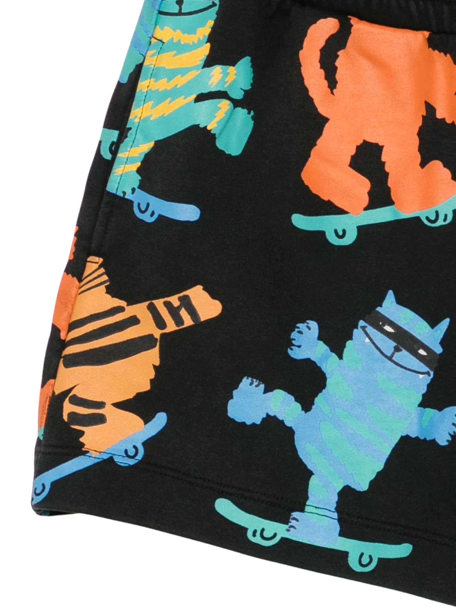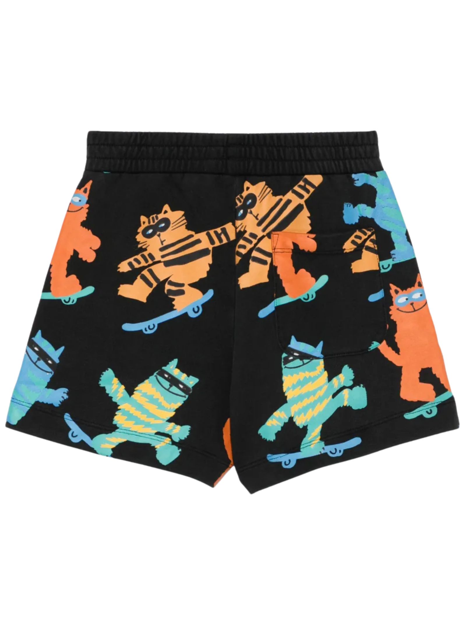 Stella McCartney Kids bermuda di colore nero, stampa all-over a contrasto multicolor, modello con vita elasticizzata, due tasche laterali, una tasca a toppa sul retro, vestibilità regolare. Composizione: 80% cotone 20% poliestere