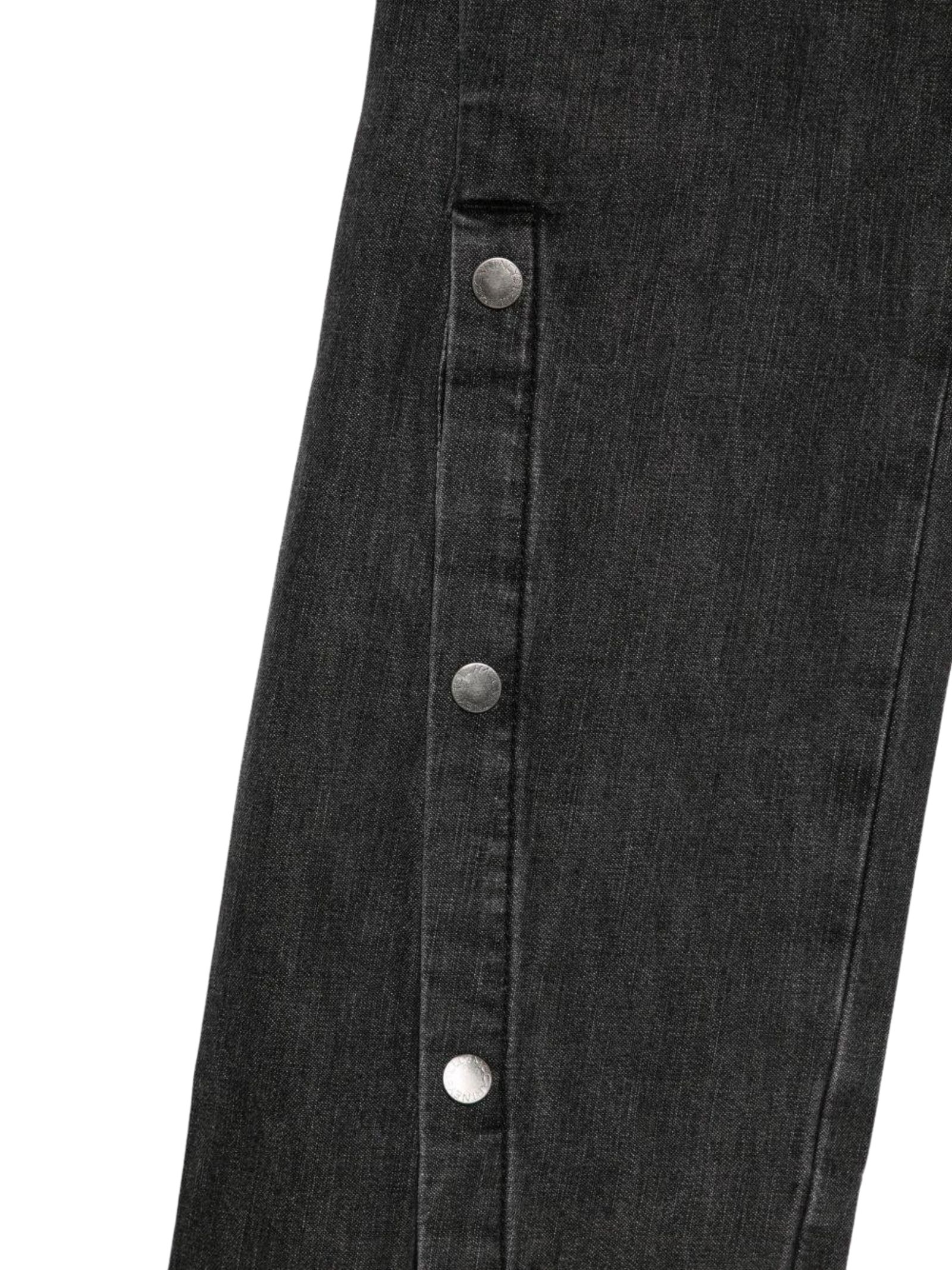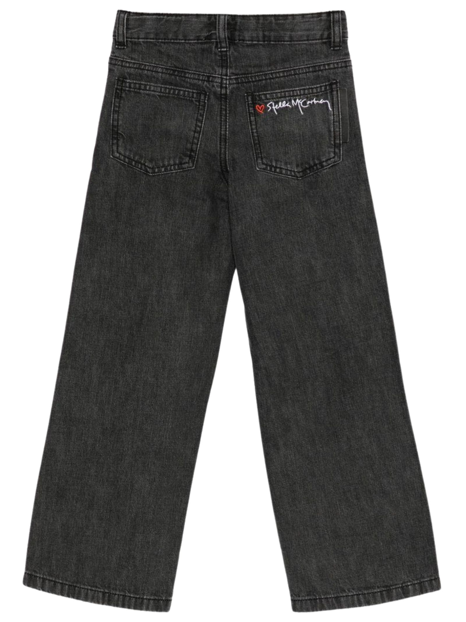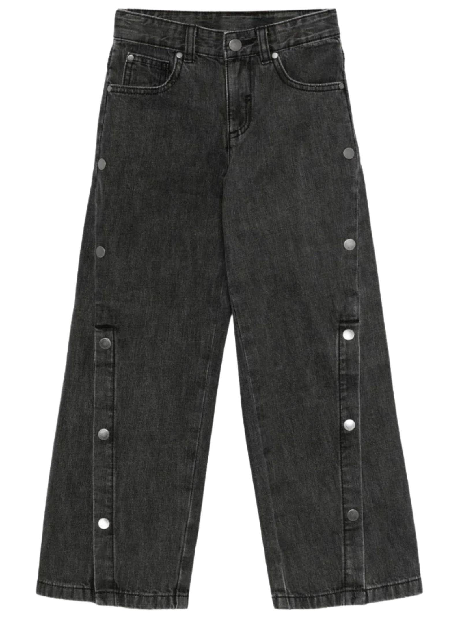 Stella McCartney Kids jeans dal lavaggio grigio, modello cinque tasche, bottoni sulla gamba, vita regolare, patch con logo sul retro, vestibilità gamba ampia. Composizione: 100% Cotone