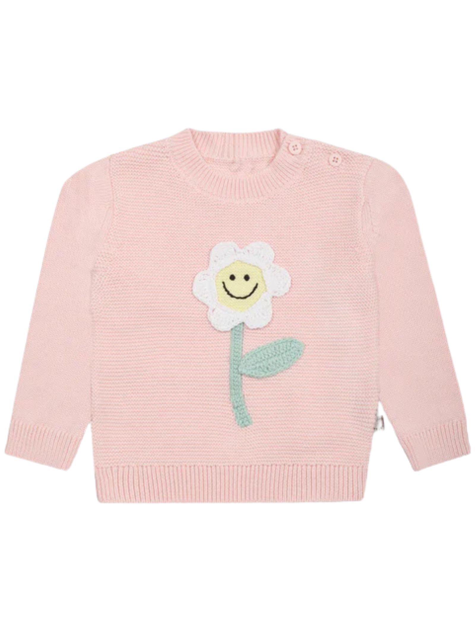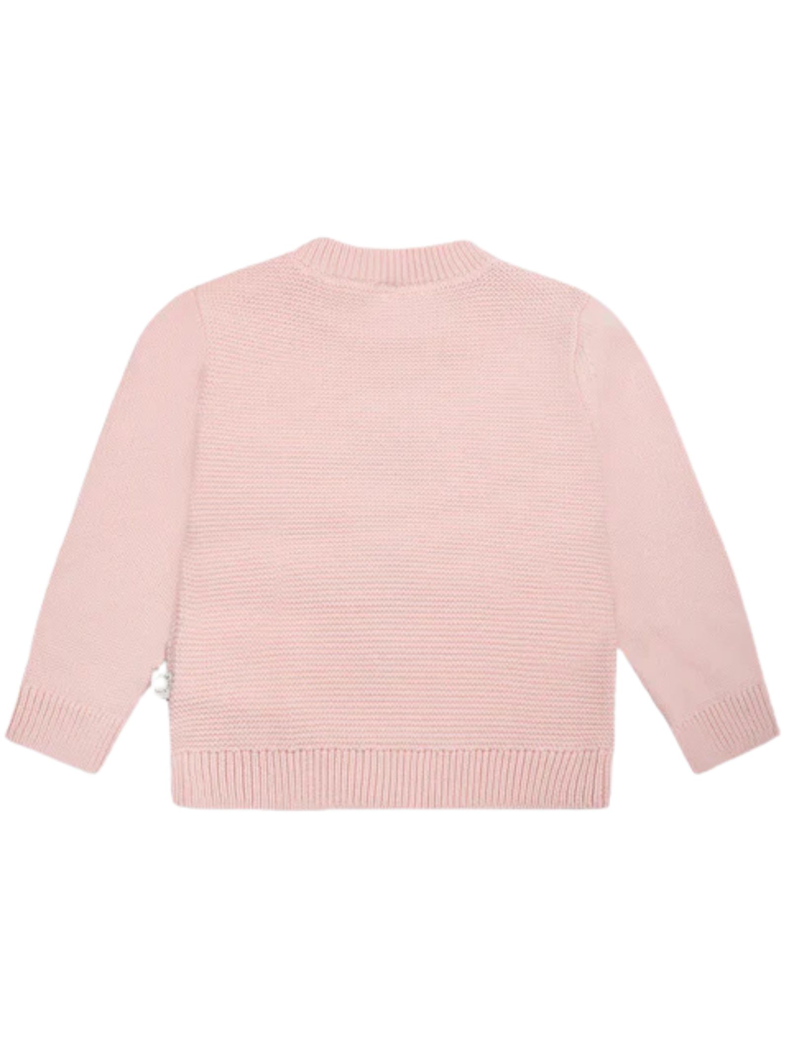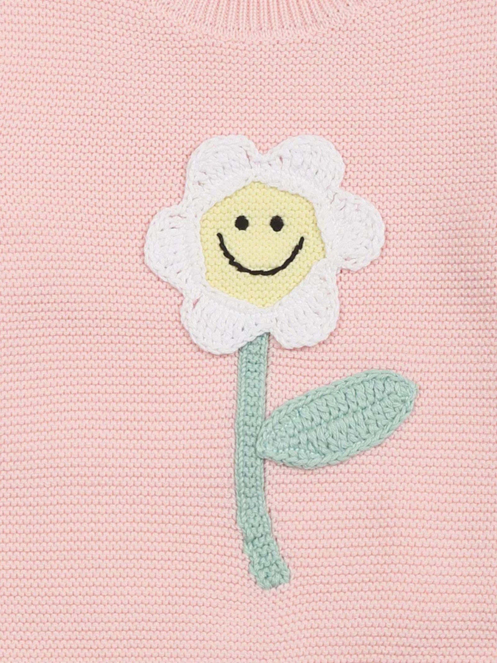 Stella McCartney Kids maglione di colore rosa, maniche lunghe, girocollo, polsini e orlo a coste e chiusura con bottoni sulla spalla, decorato con fiore ricamato sul davanti. Composizione: 100% cotone biologico