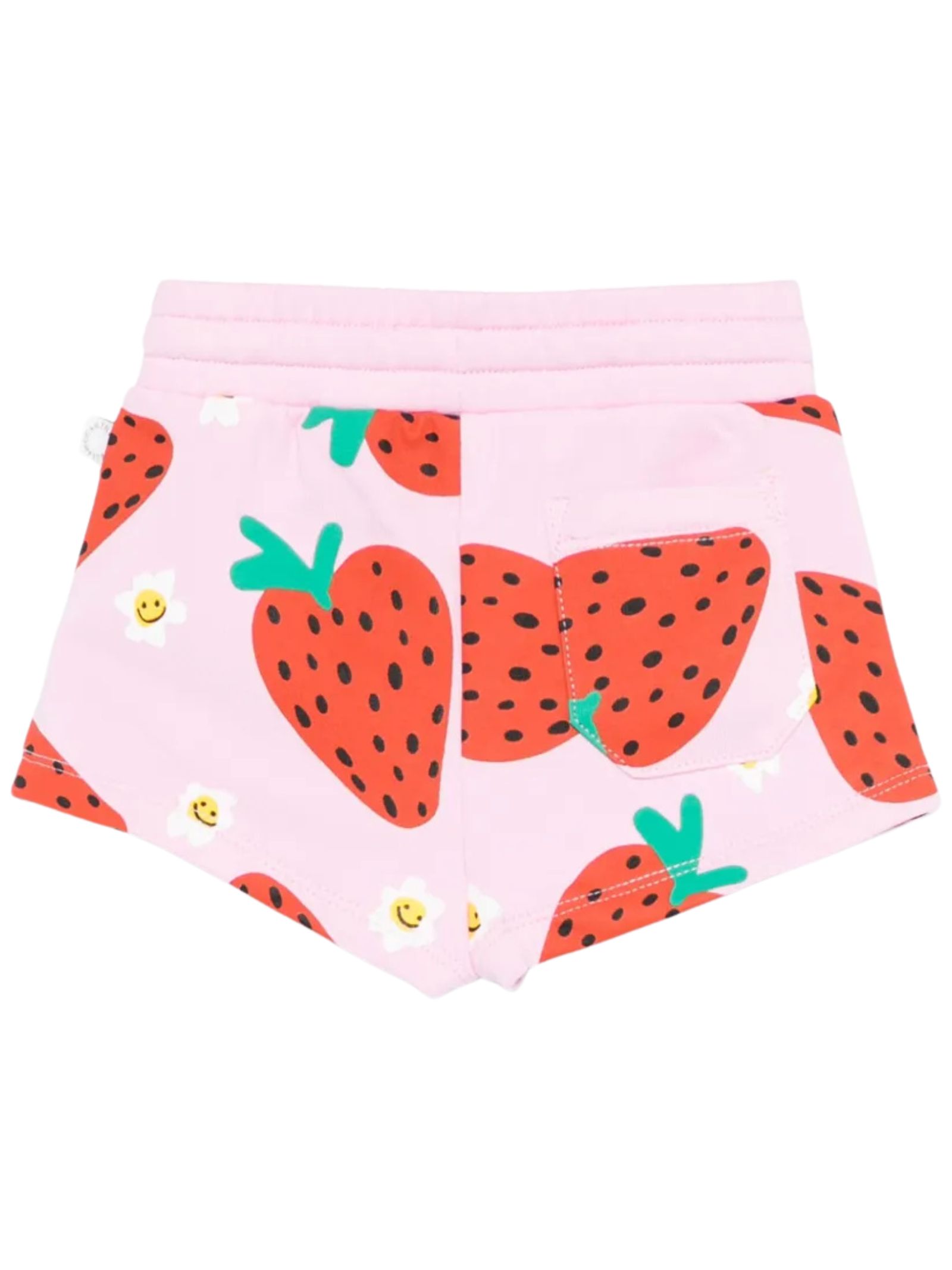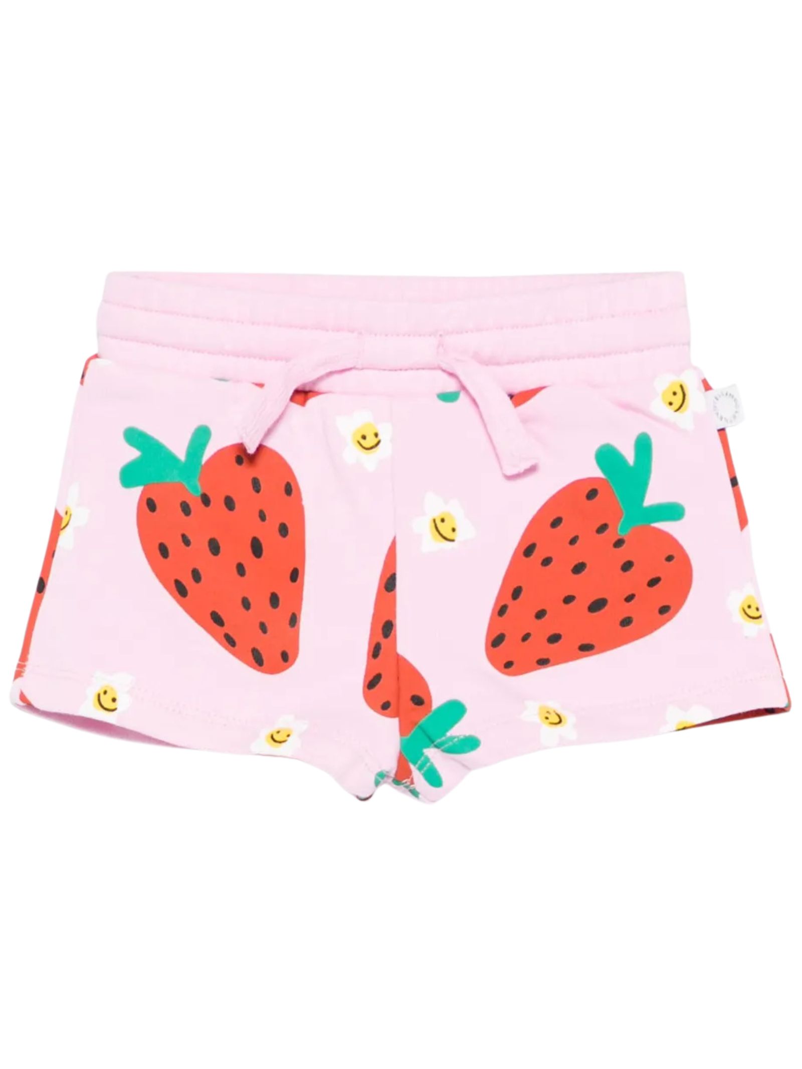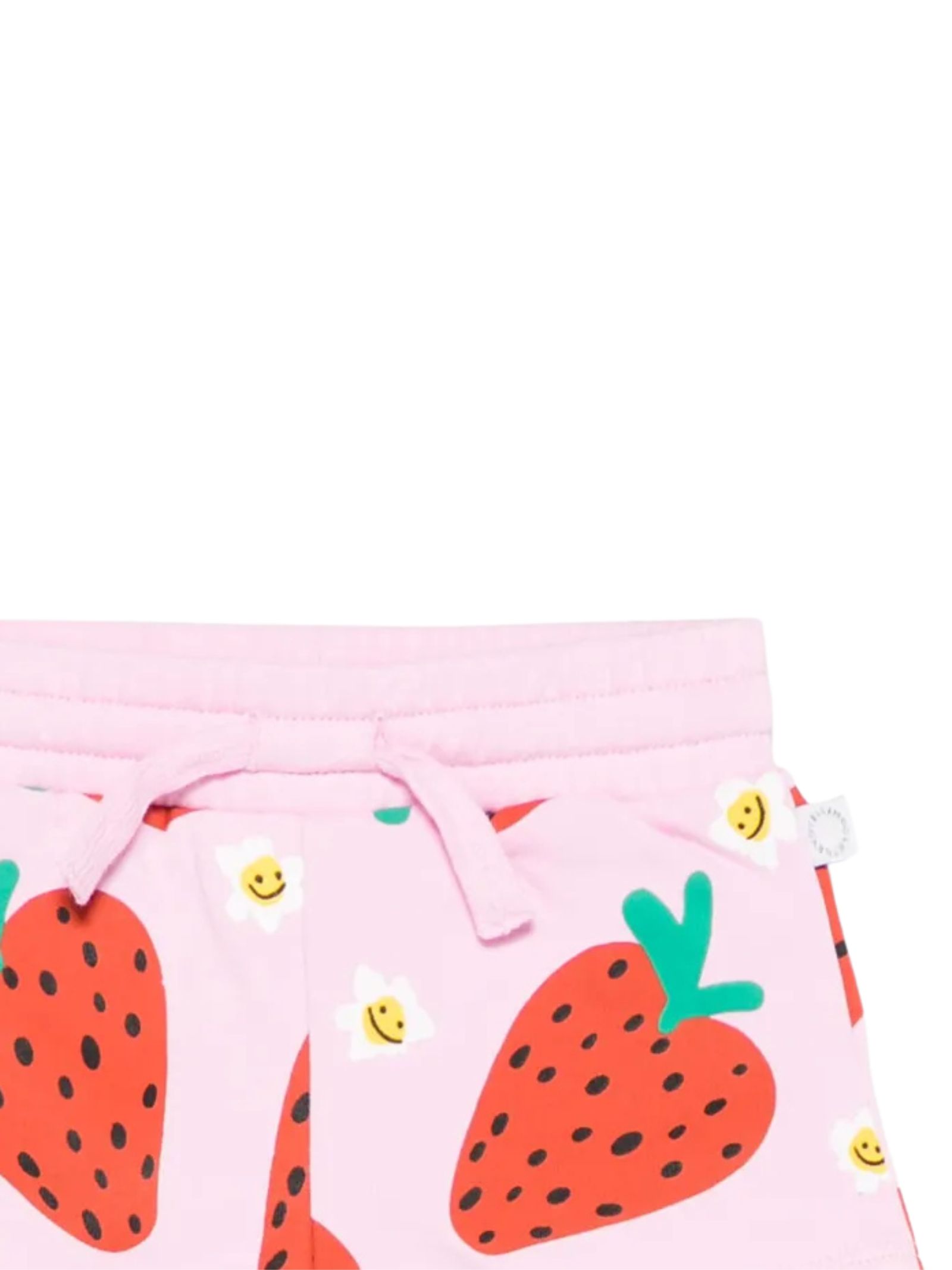 Stella McCartney Kids shorts di colore rosa, stampa all-over a contrasto, modello con vita elasticizzata e coulisse, una tasca a toppa sul retro, vestibilità regolare. Composizione: 100% cotone