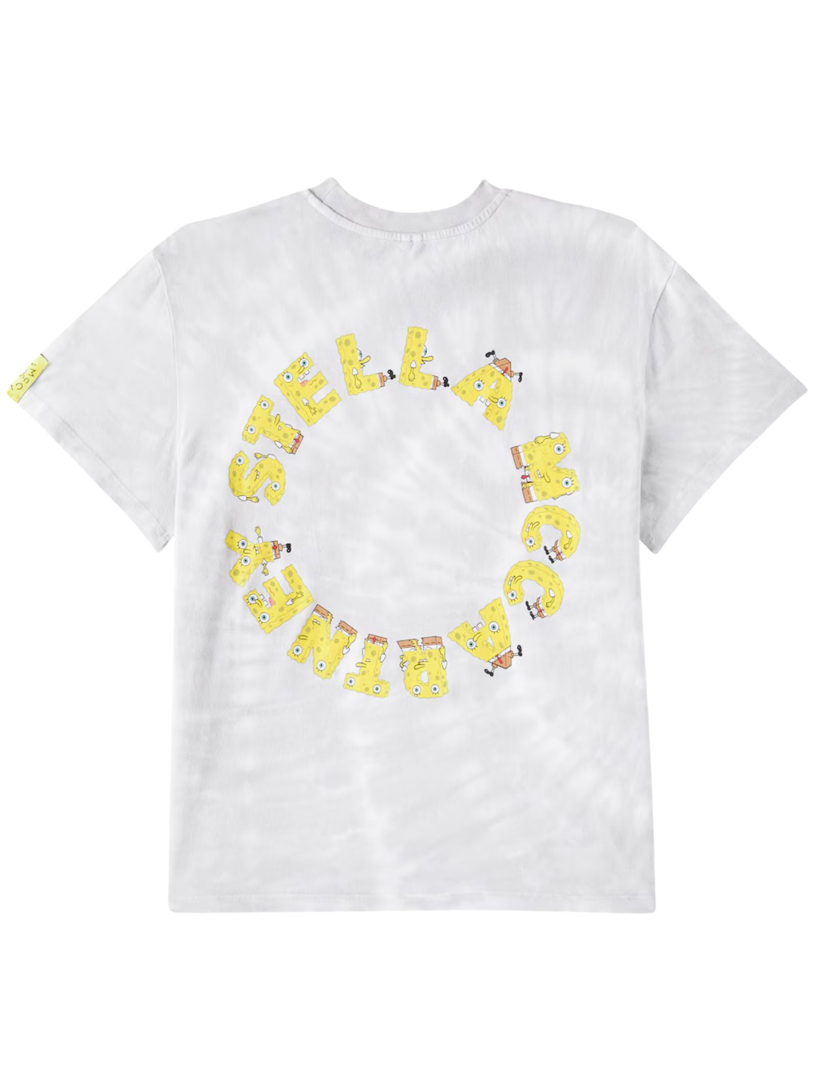 Stella McCartney Kids t-shirt di colore grigio, fantasia sfumata, stampa Spongebob a contrasto su entrambi i lati, modello girocollo, mezza manica, vestibilità ampia. Composizione: 100% cotone