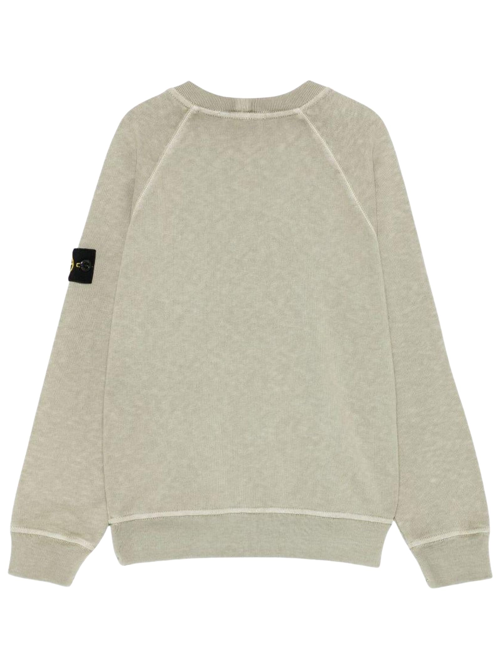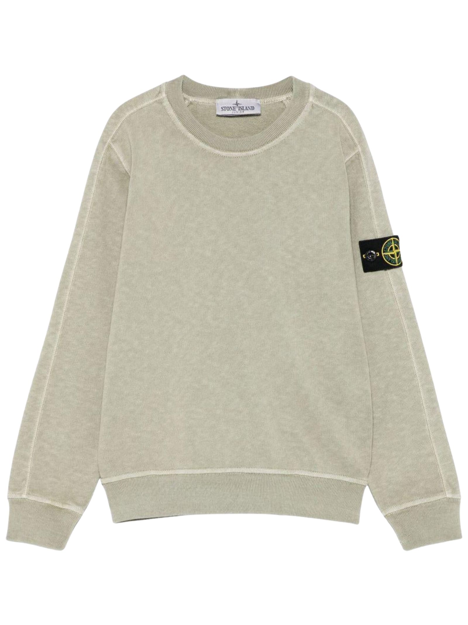 Felpa STONE ISLAND Junior di colore verde, applicazione sulla manica con logo, girocollo, maniche lunghe, orli a costine, vestibilità regolare. Composizione: Cotone 100%