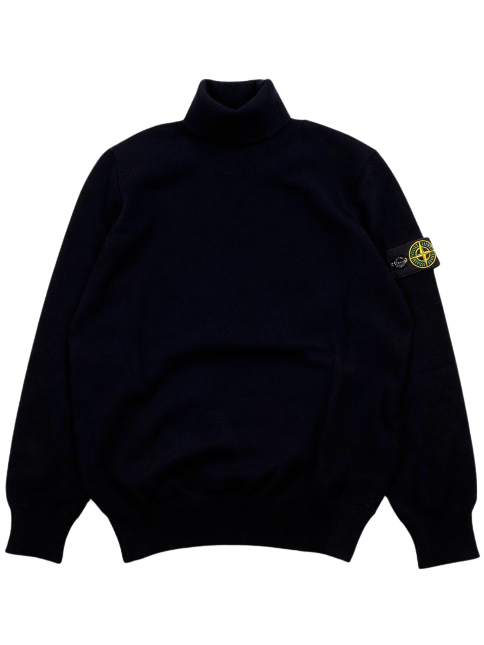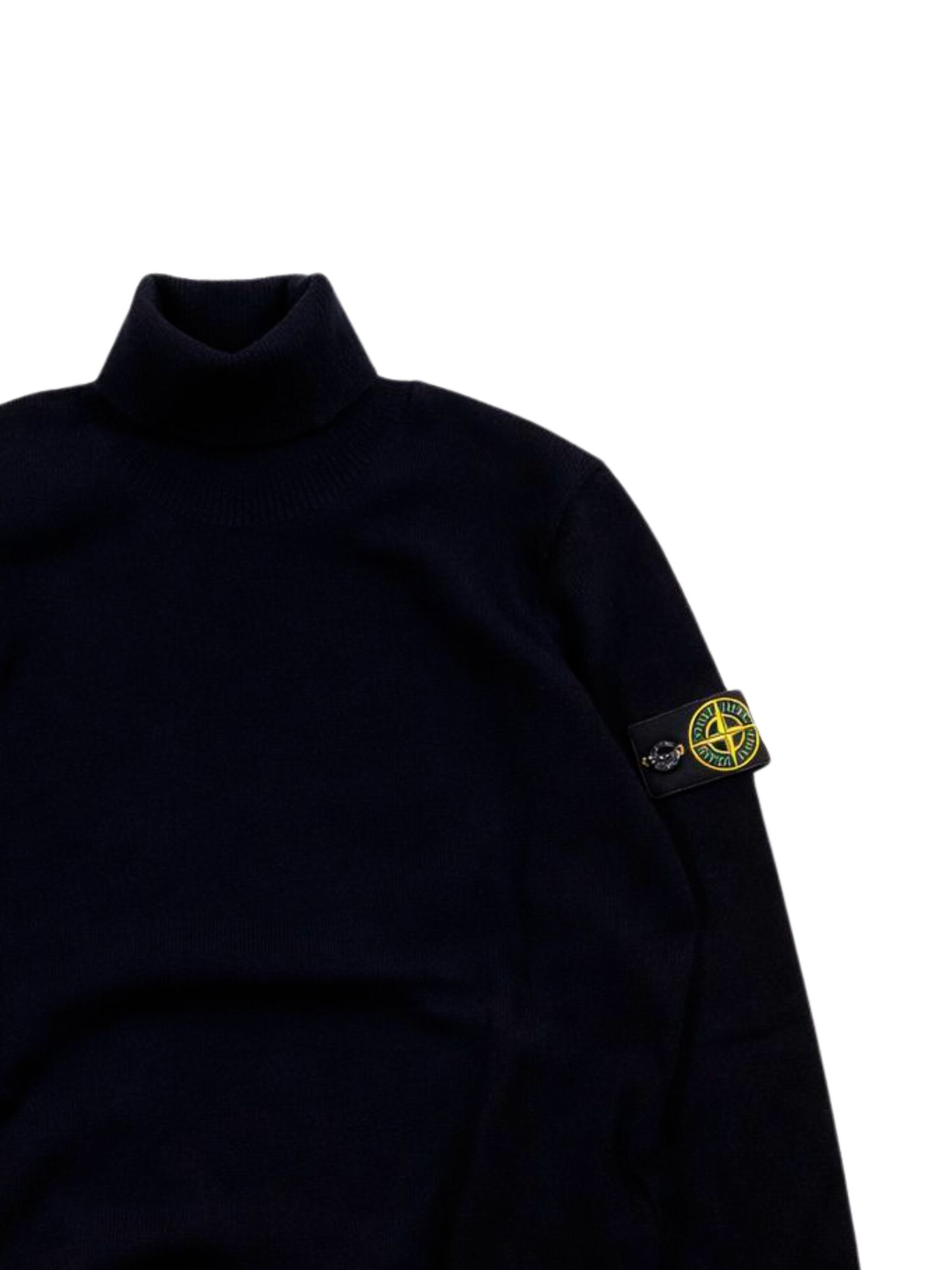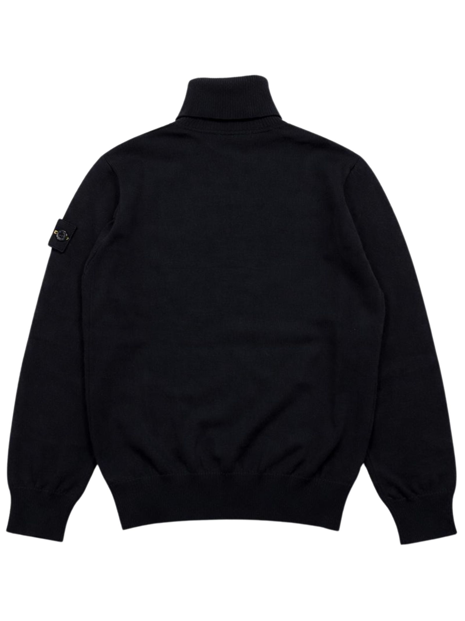 STONE ISLAND Junior maglione di colore nero, modello con collo alto, maniche lunghe, applicazione logo sul braccio, orli a coste, vestibiltà regolare. Composizione: 100% lana vergine
