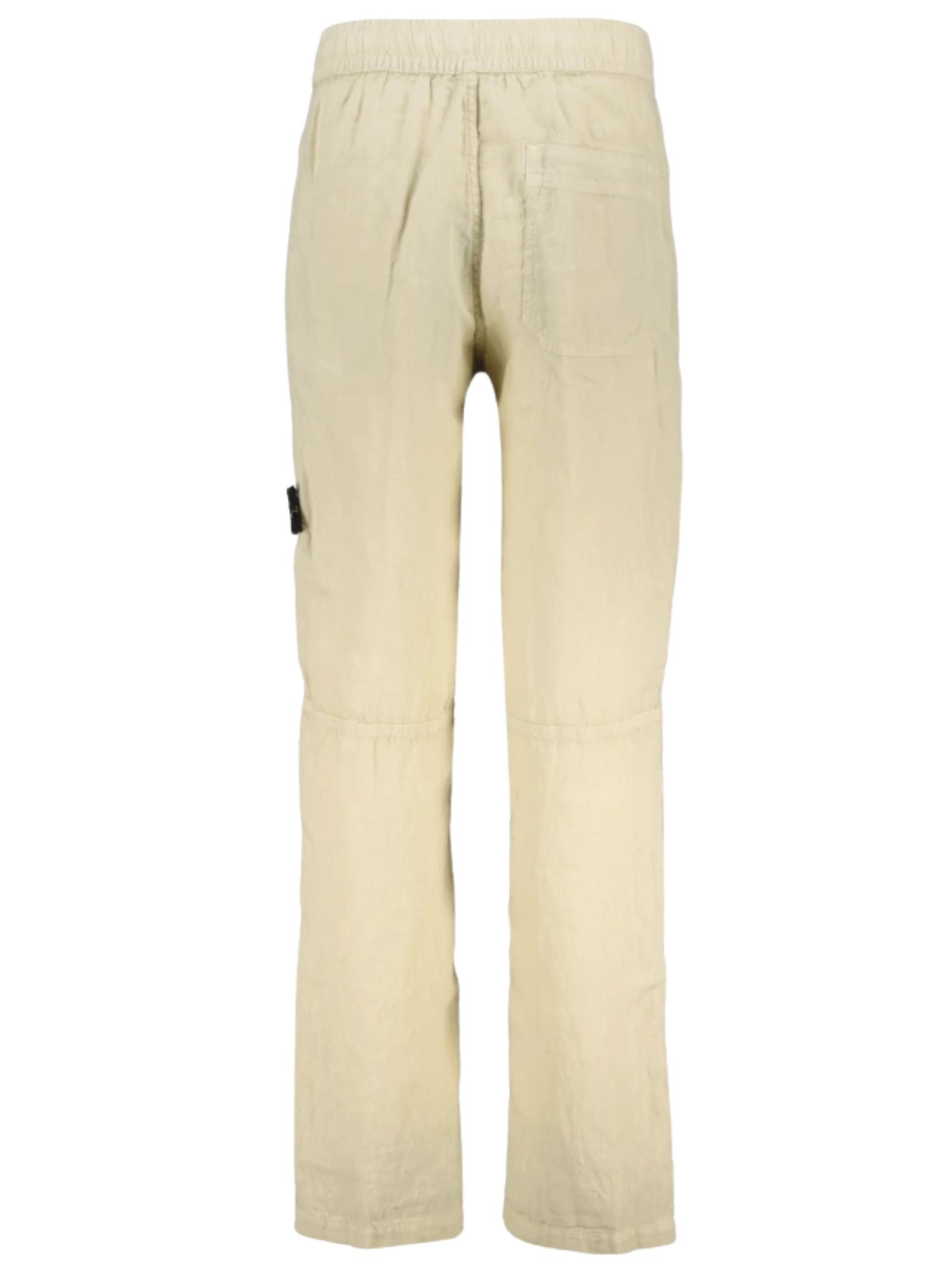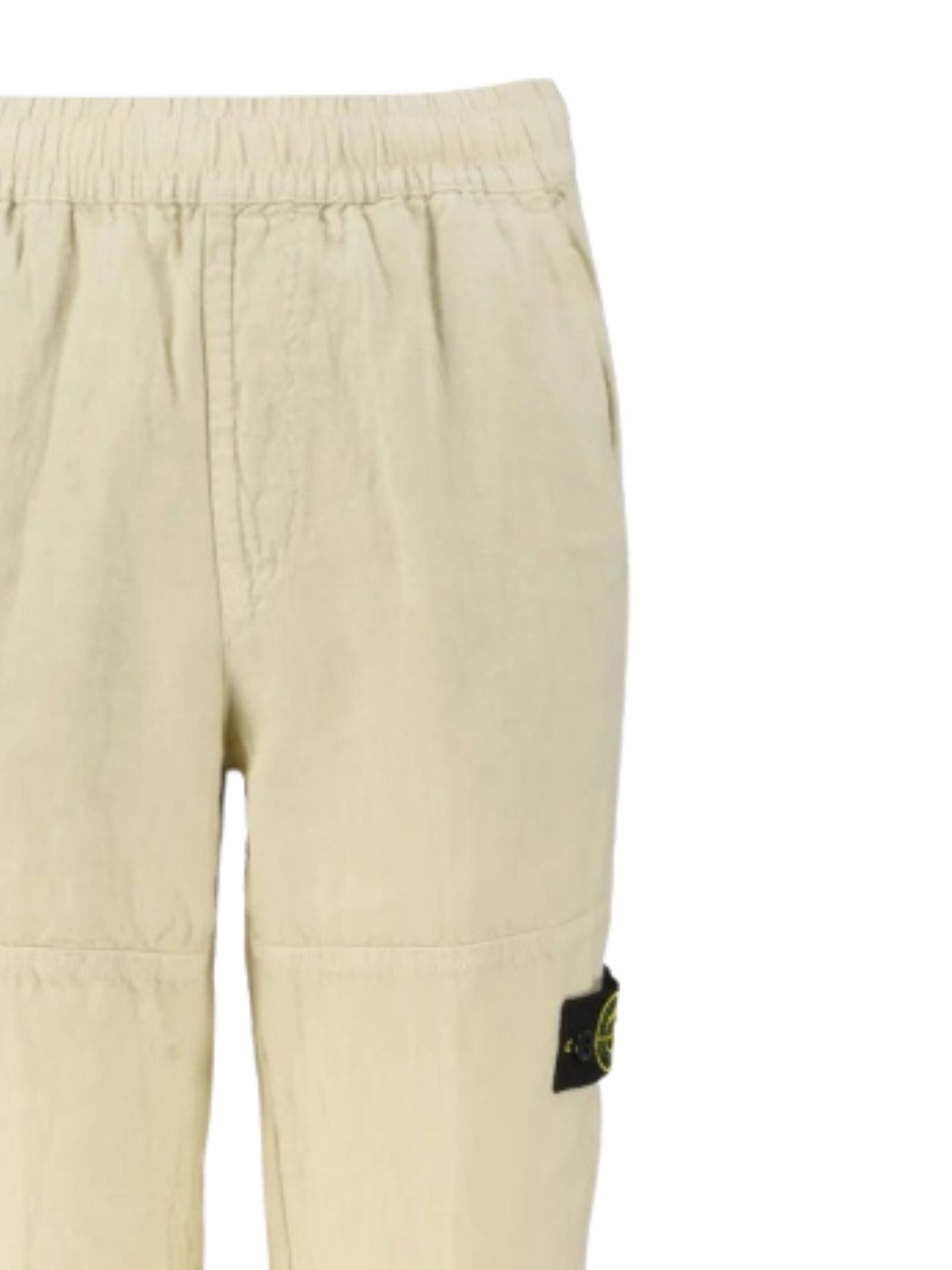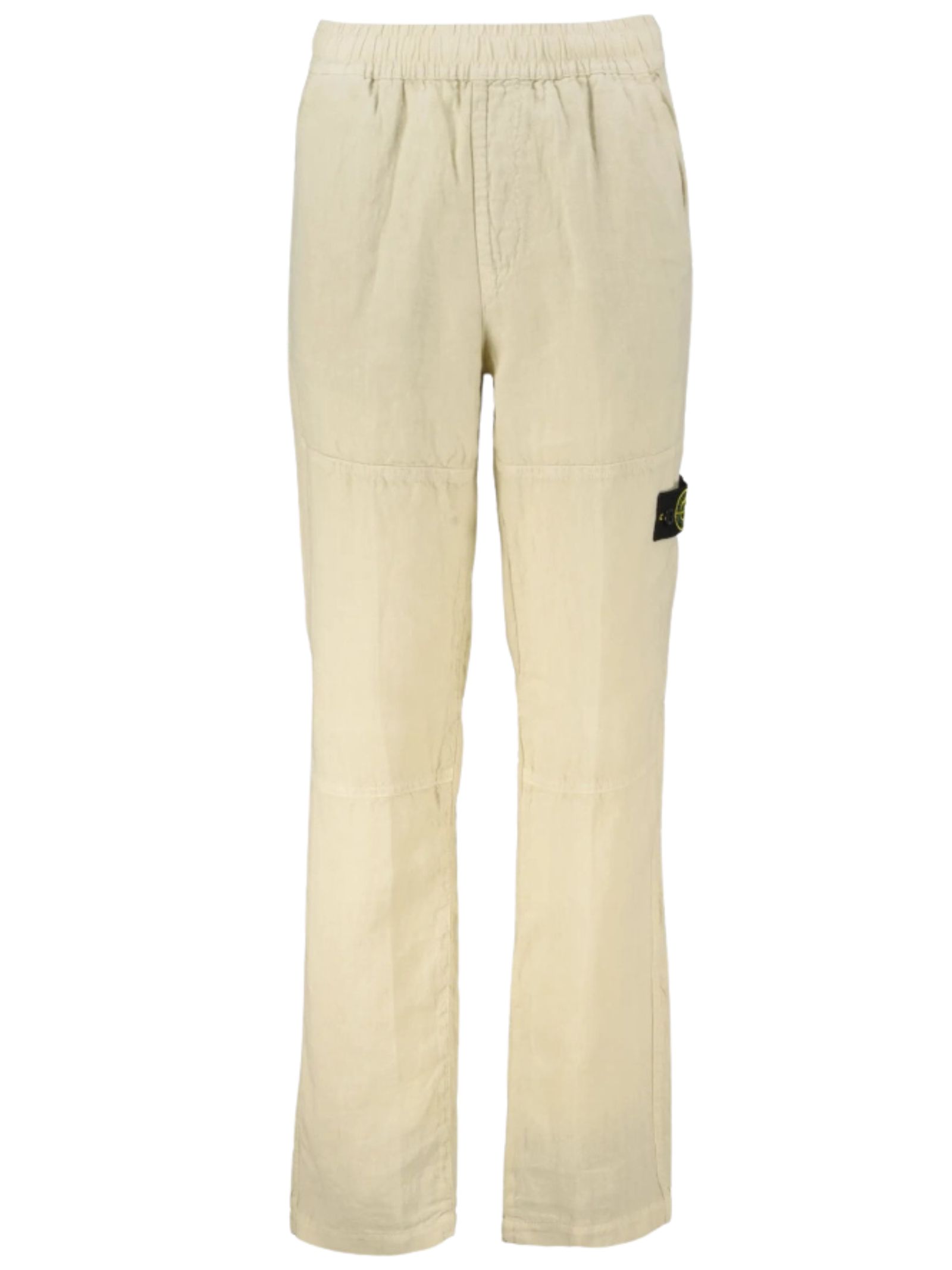 Stone Island Kids pantalone di colore sabbia, realizzata in puro lino, design con elastico in vita, due tasche laterali, una tasca sul retro, patch con logo applicato, vestibilità regolare. Composizione: 100% lino. Made in Italy
