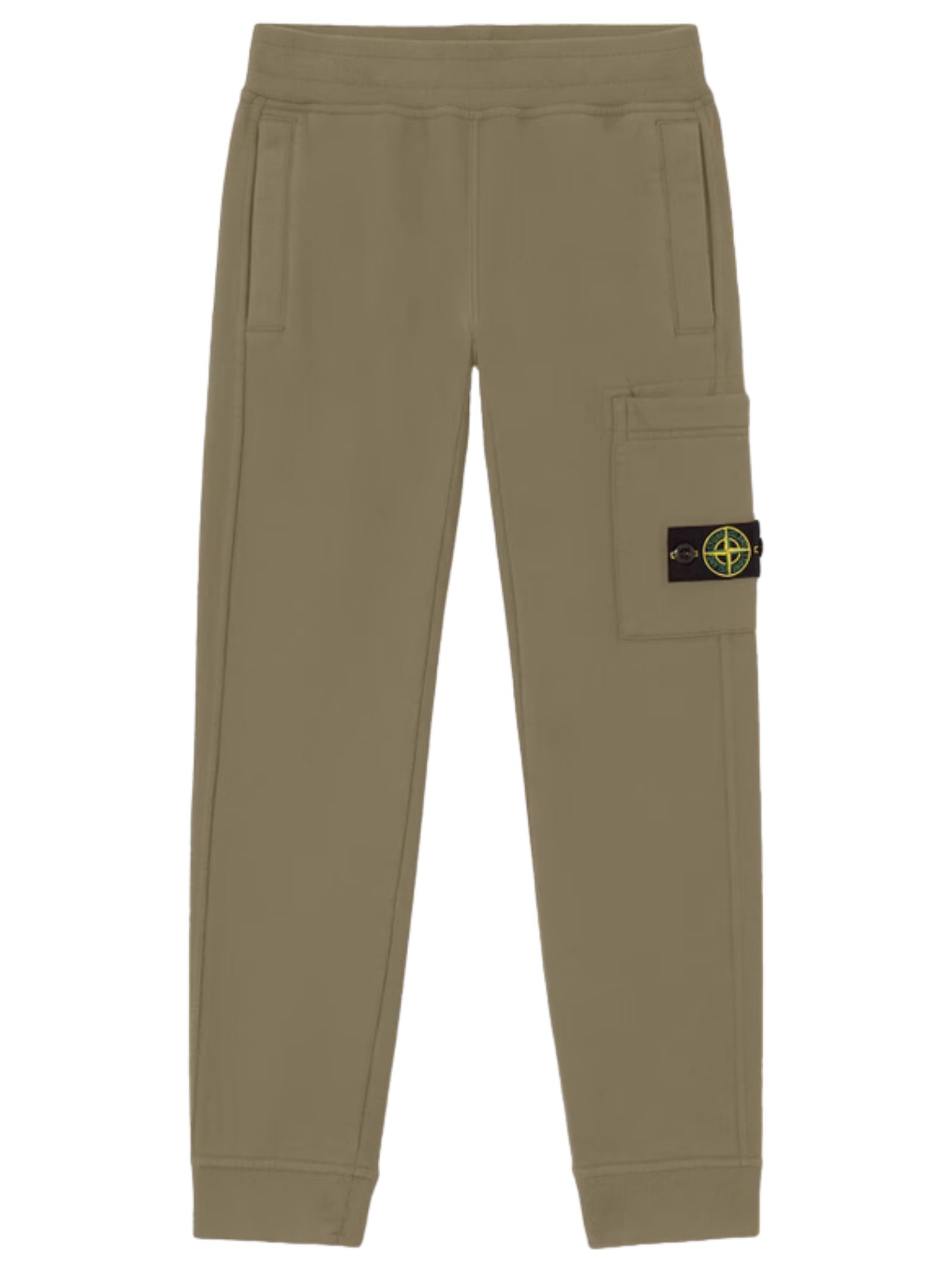 STONE ISLAND Junior pantalone di colore verde, modello con due tasche laterali, una tasca cargo applicata, patch logo applicato, vita elastica con coulisse interna, vestibilità regolare. Composizione: cotone 100%