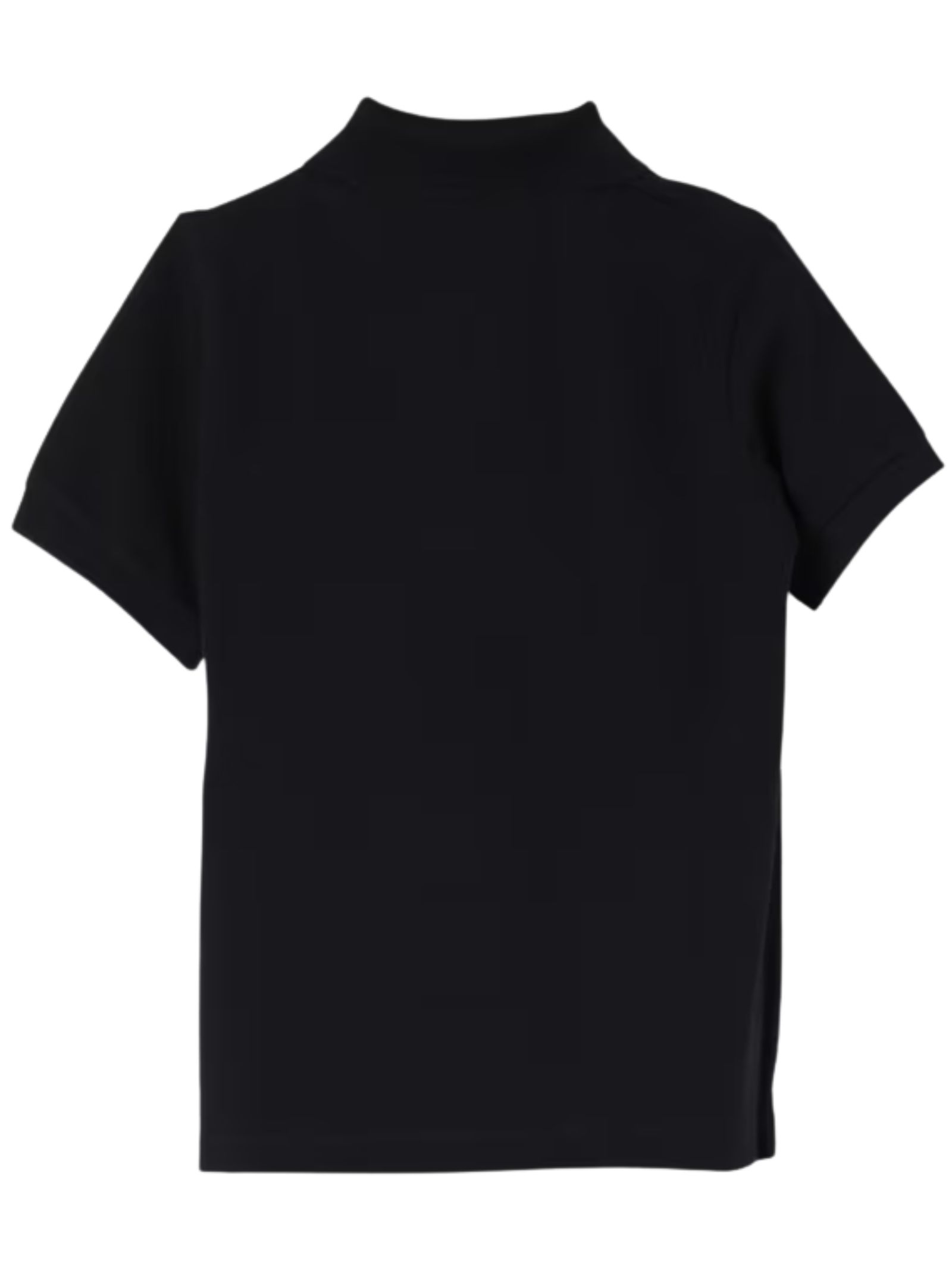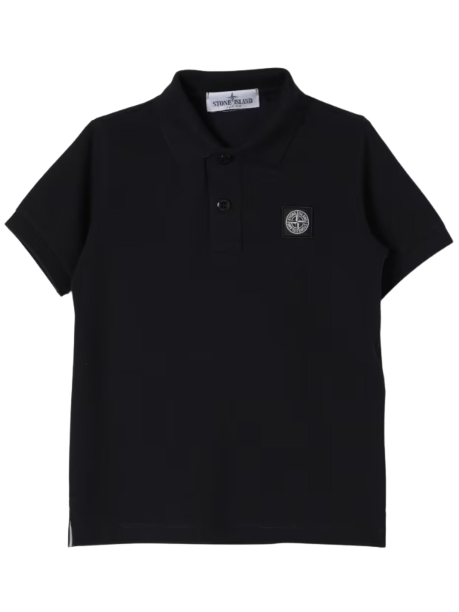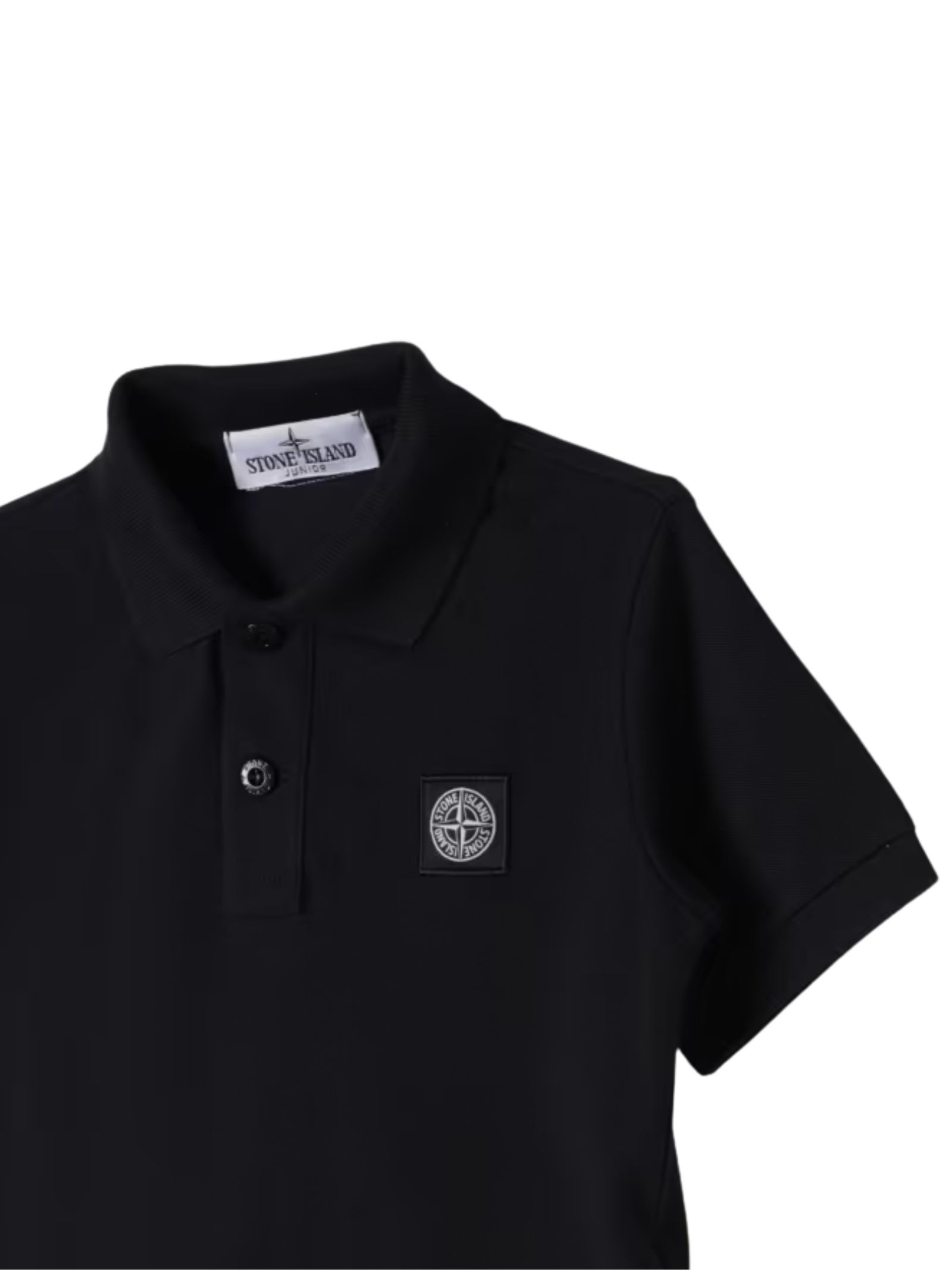 Stone Island Kids polo di colore nero, applicazione logo bussola sul petto, modello mezza manica, spacchetti laterali, vestibilità regolare. Composizione: 95% cotone 5% elastan