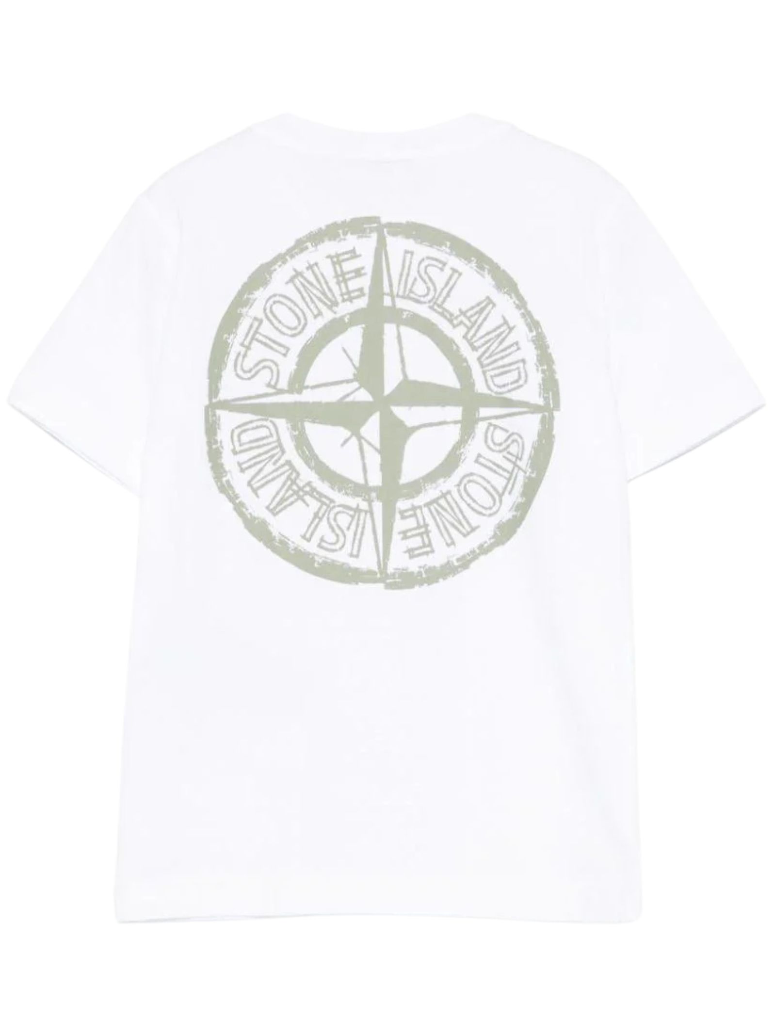 STONE ISLAND Junior t-shirt di colore bianco, modello girocollo, mezza manica, stampa a contrasto su entrambi i lati, vestibilità regolare. Composizione: Cotone 100%