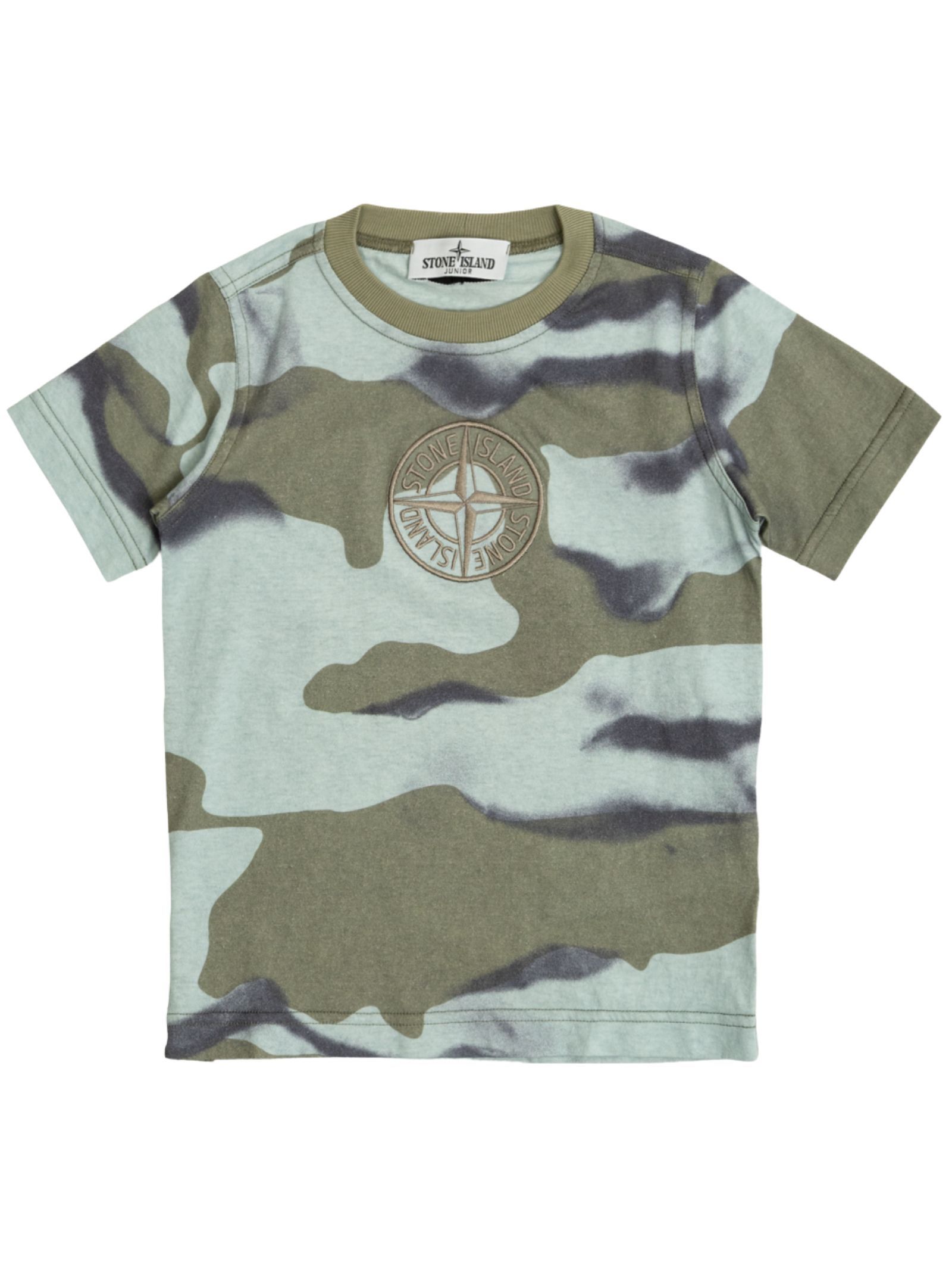 Stone Island Kids t-shirt in fantasia camouflage, modello girocollo, mezza manica, caratterizzata da ricamo logo centrale a contrasto, orlo dritto, vestibilità regolare. Composizione: 100% cotone