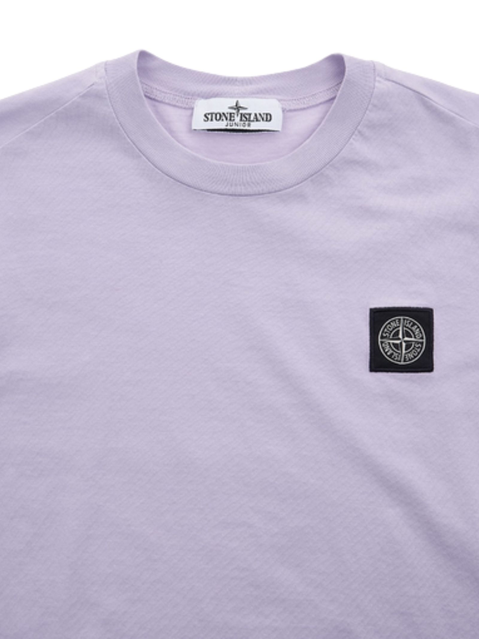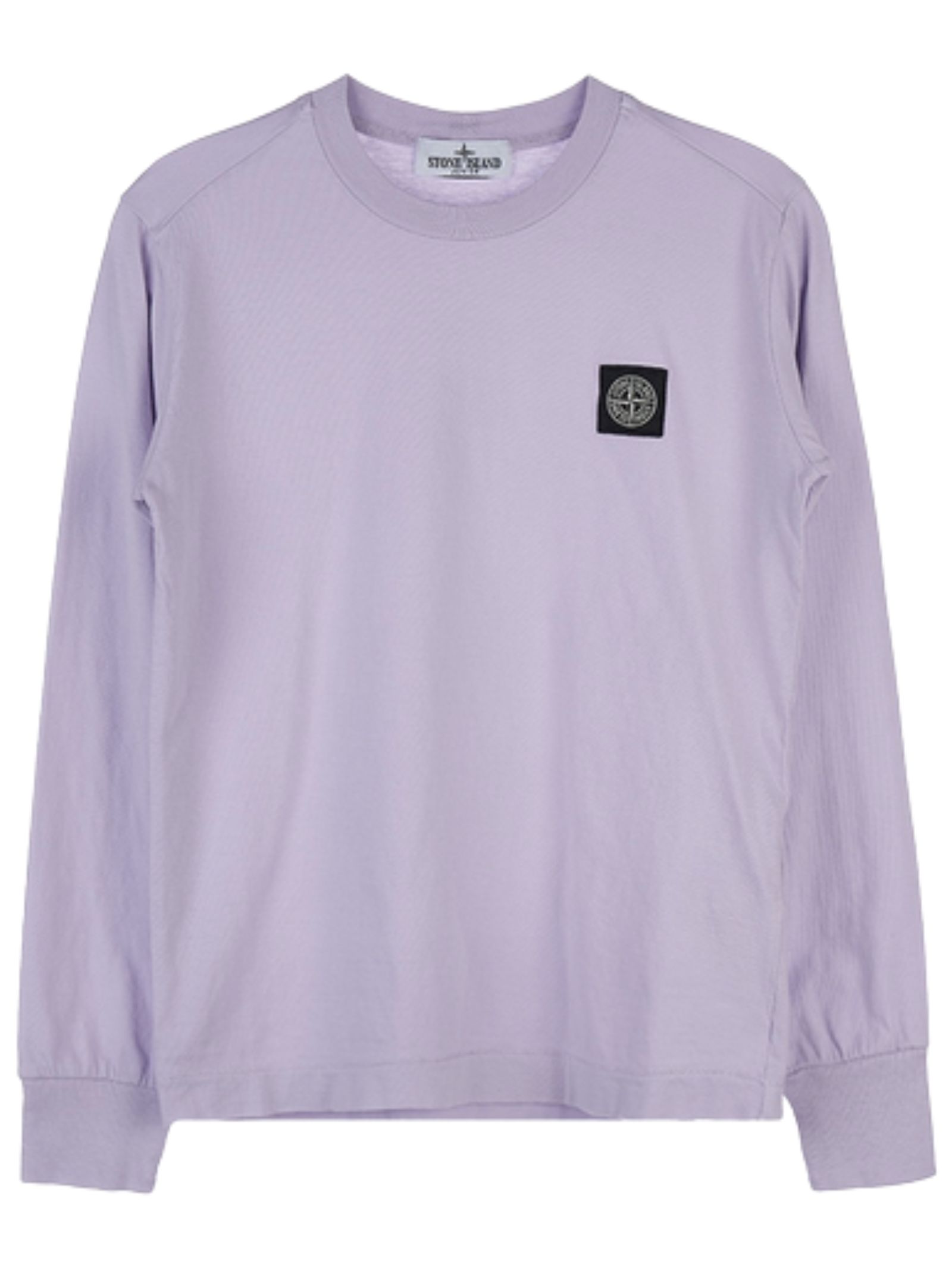 STONE ISLAND Junior t-shirt di colore lilla, modello girocollo, manica lunga, applicazione patch con logo sul petto a contrasto, vestibilità regolare. Composizione: Cotone 100%